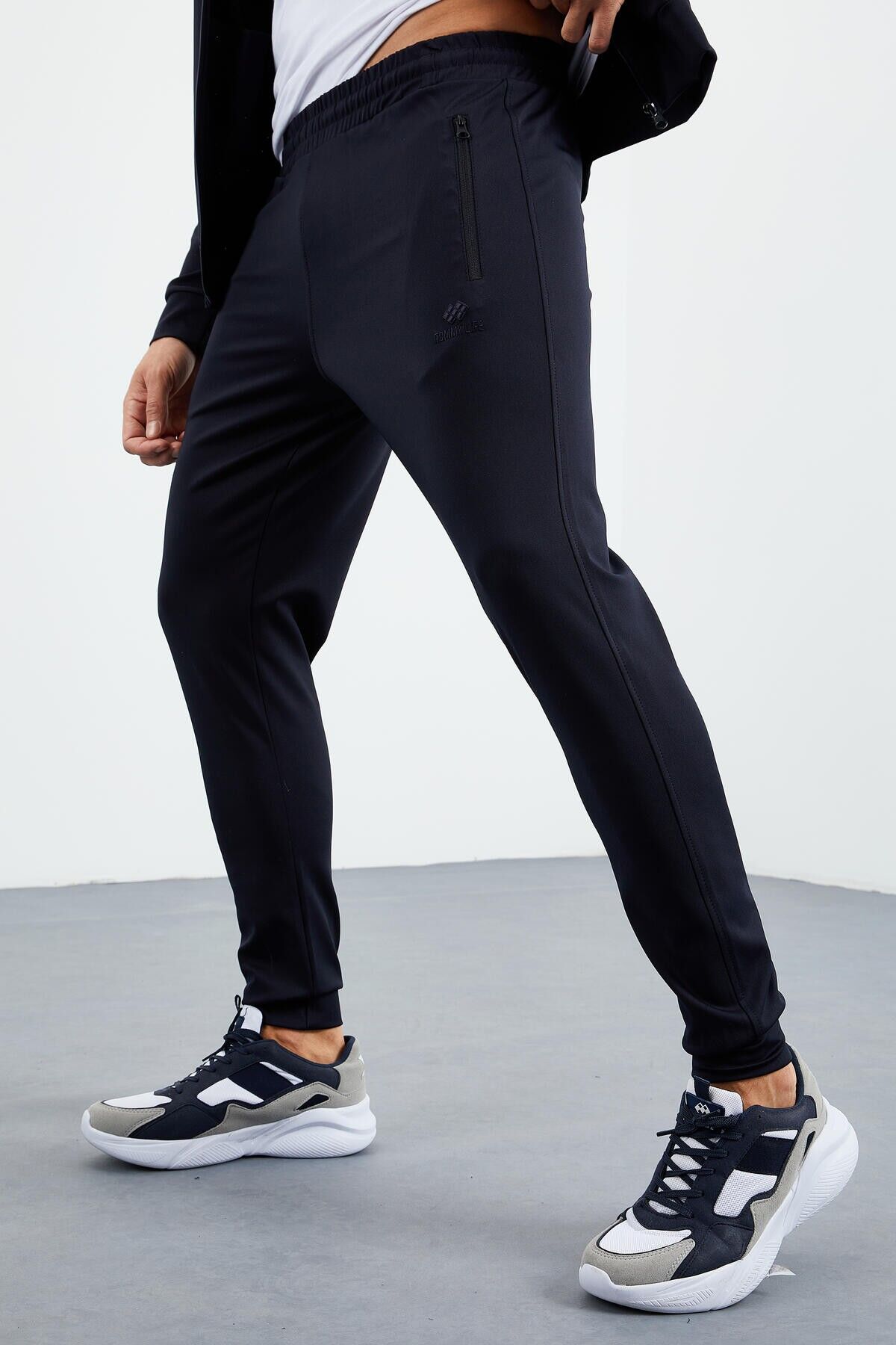TommyLife Lacivert Dik Yaka Fermuarlı Standart Kalıp Manşetli Erkek Eşofman Takım - 85160