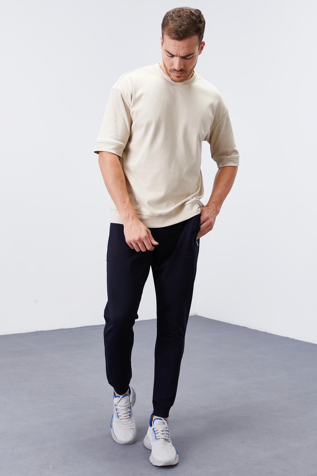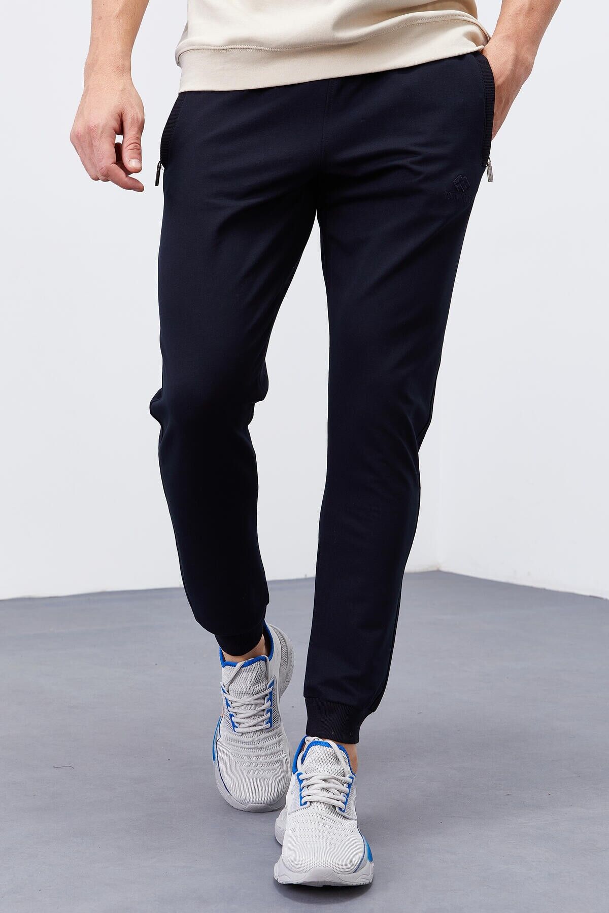 TommyLife Lacivert Fermuar Cepli Dar Kalıp Jogger Erkek Eşofman Alt - 84343