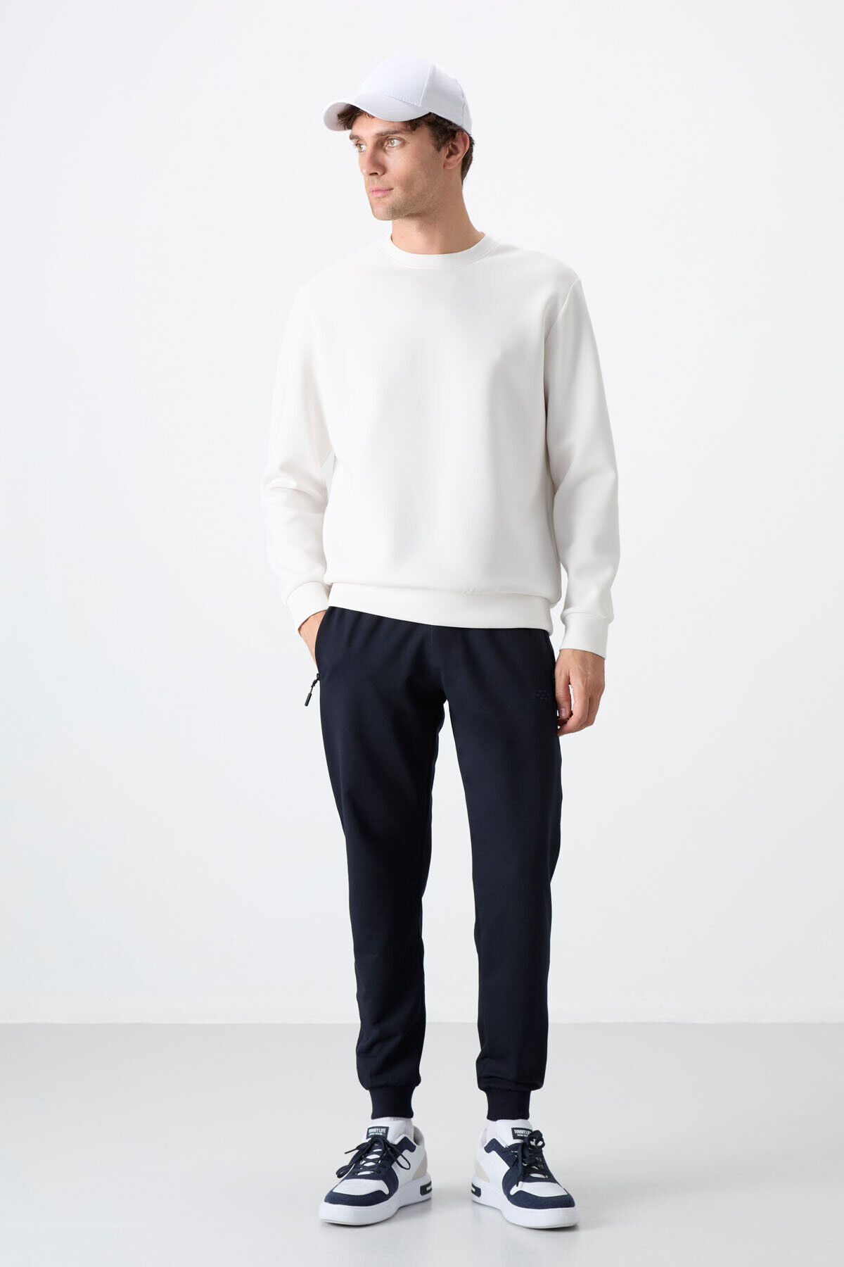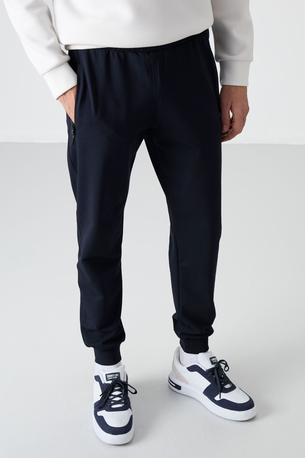 TommyLife Lacivert Fermuar Cepli Standart Kalıp Jogger Erkek Eşofman Alt - 84587
