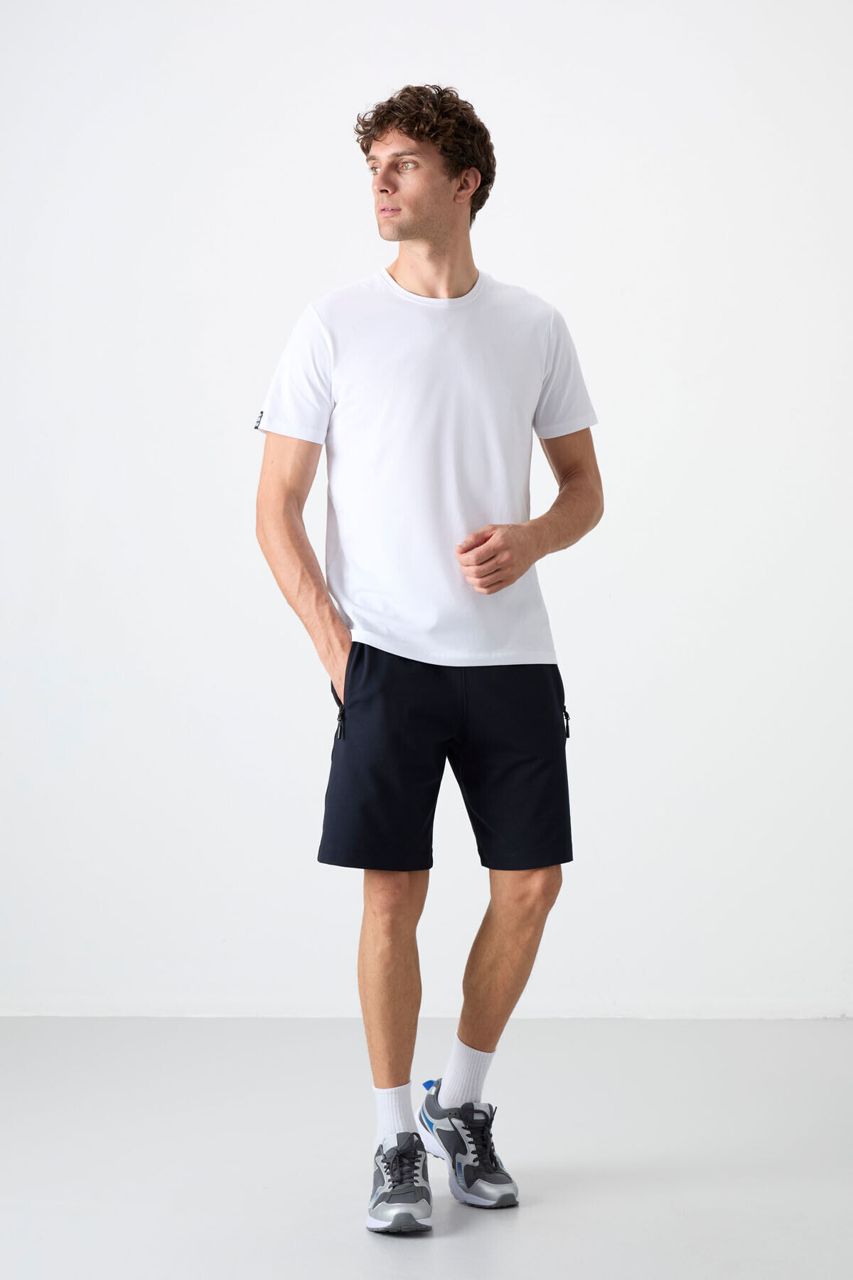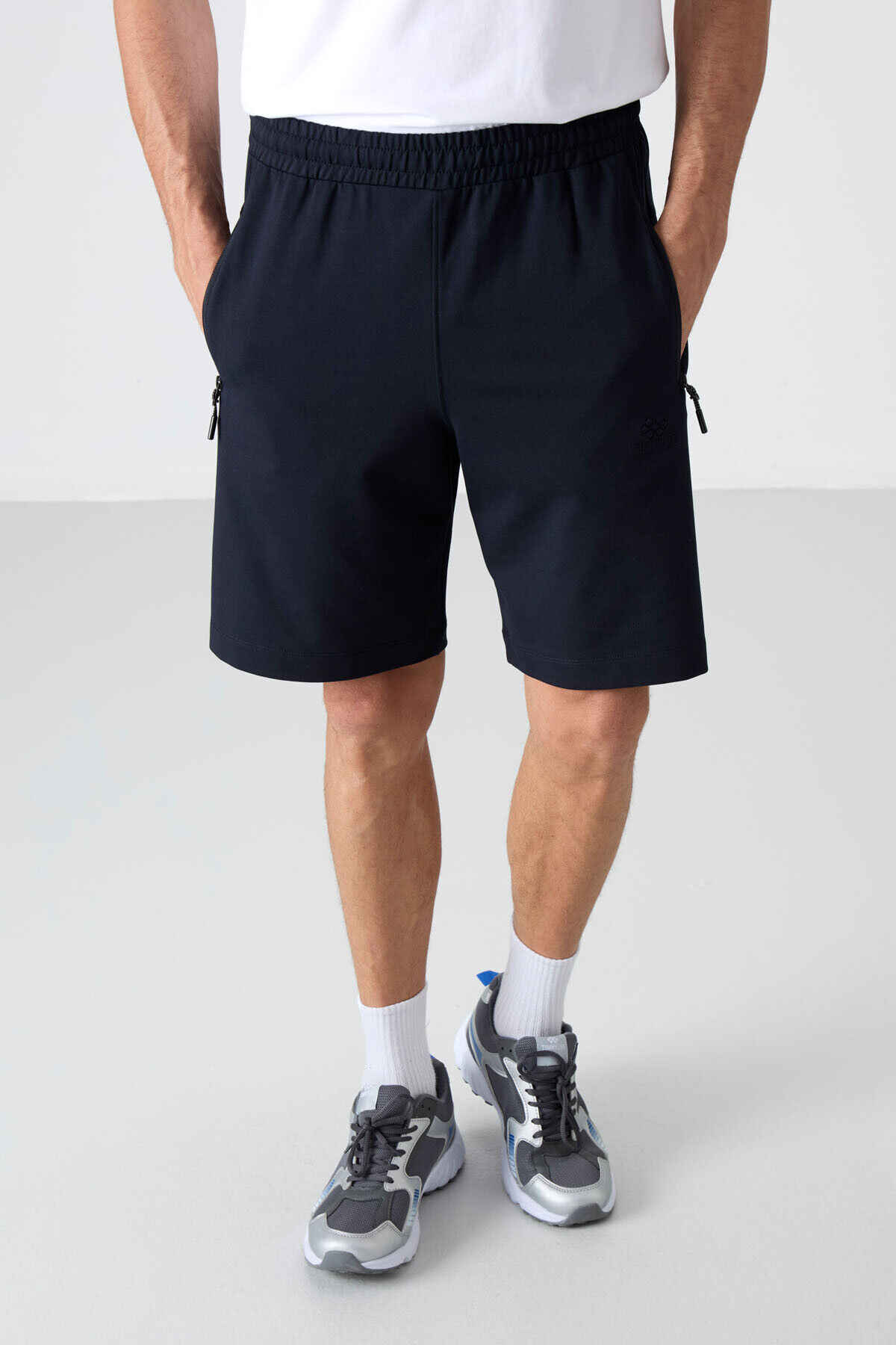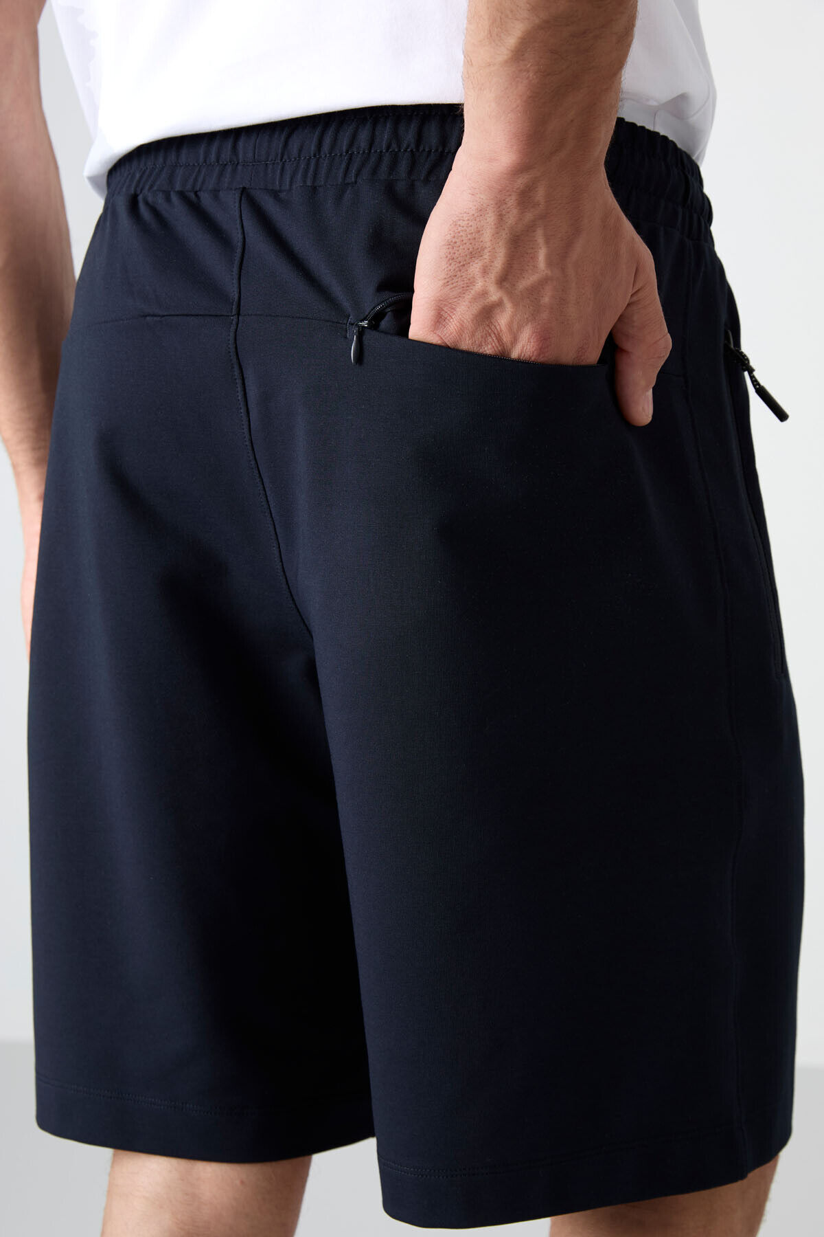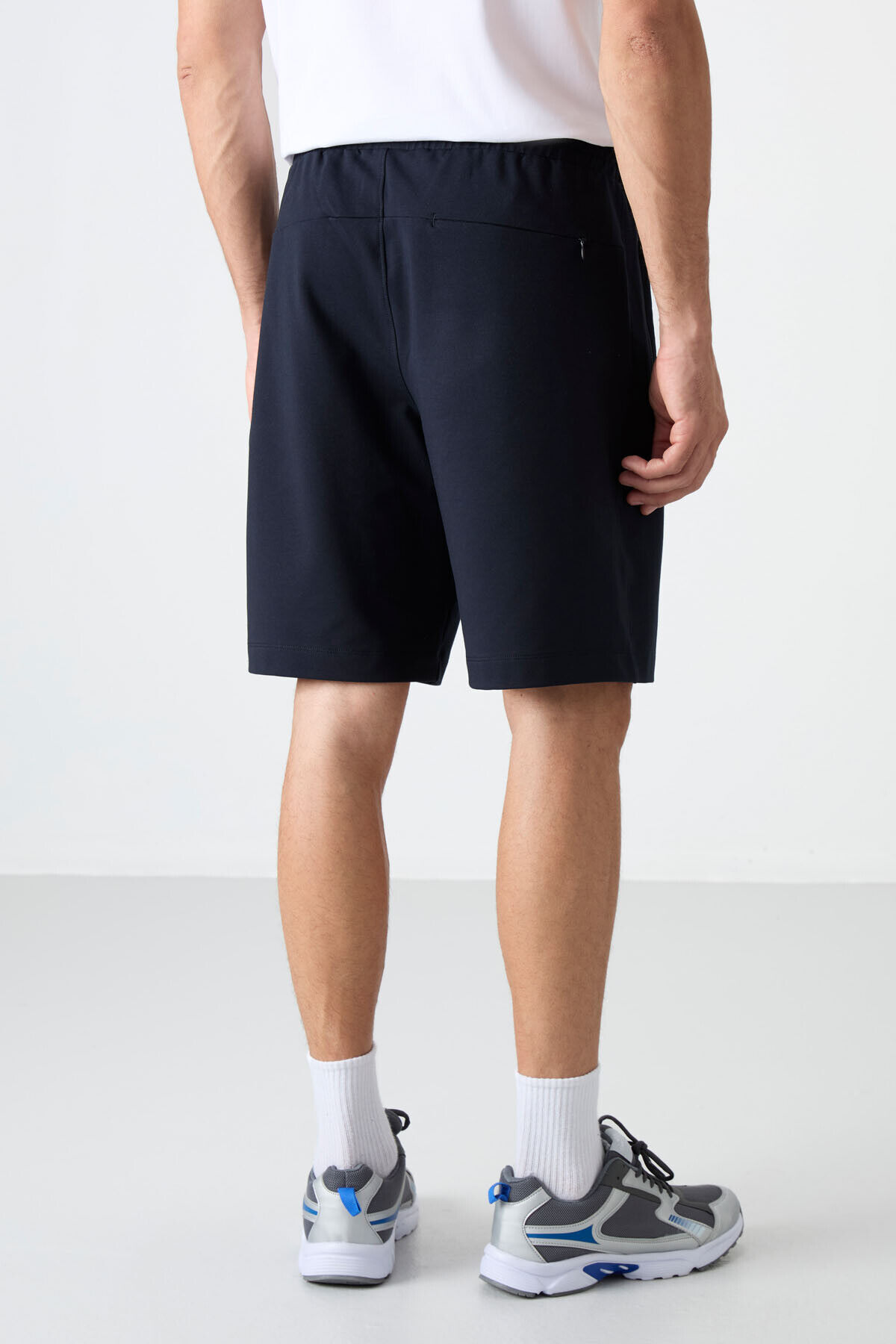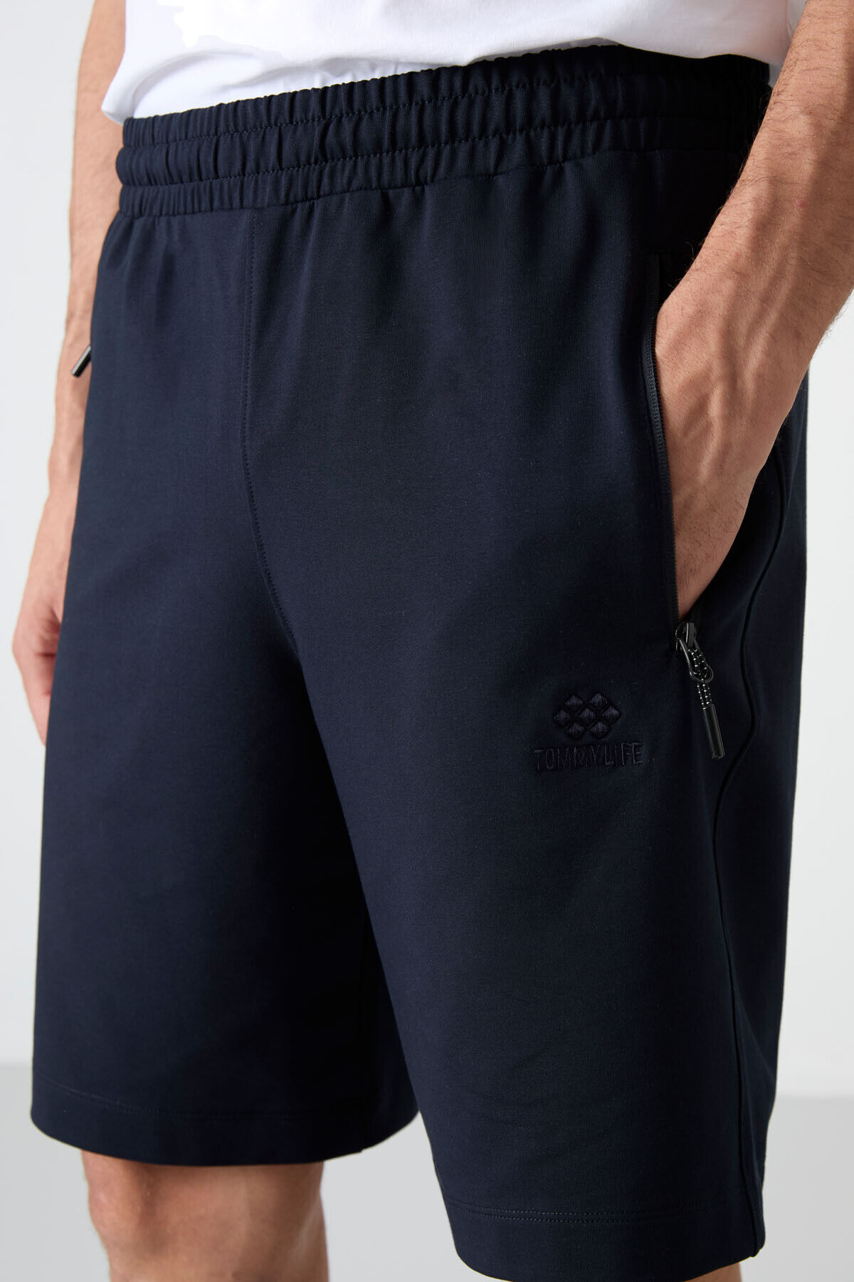 TommyLife Lacivert Gizli Fermuar Arka Cepli Bağcıklı Standart Kalıp Erkek Şort - 81136