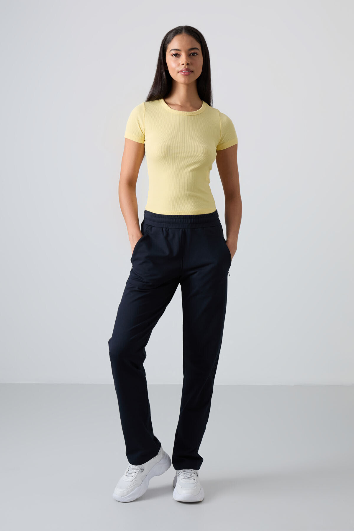 TommyLife Lacivert Gizli Fermuar Cepli Rahat Form Klasik Paça Kadın Eşofman Alt - 94148