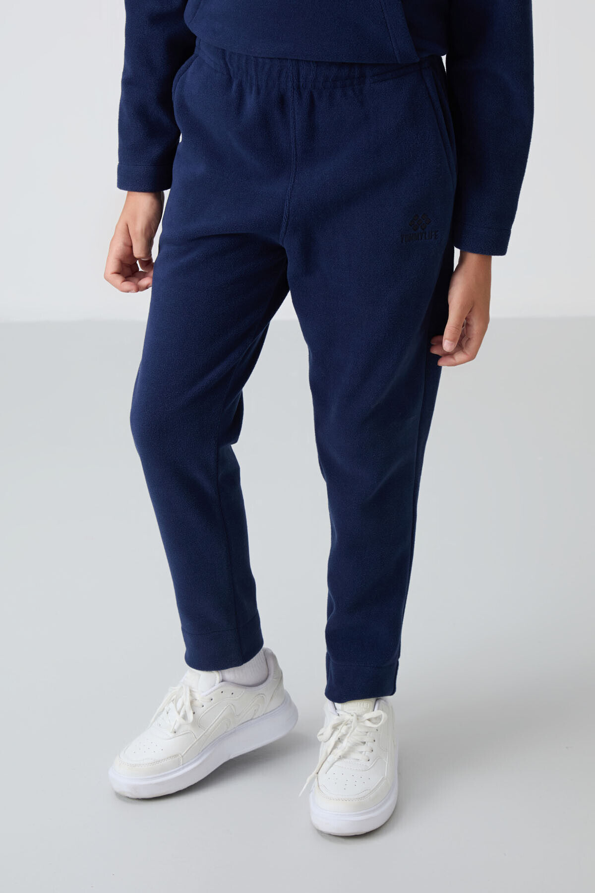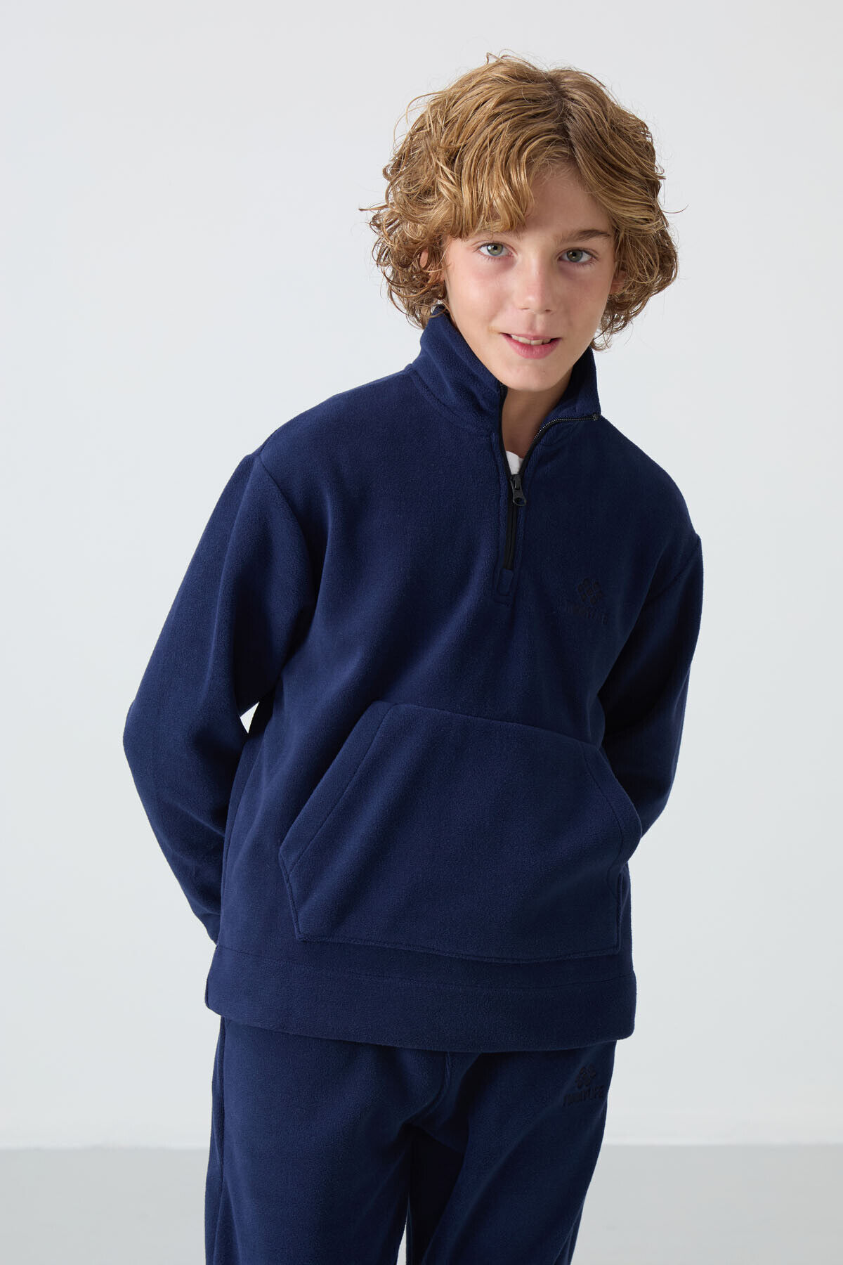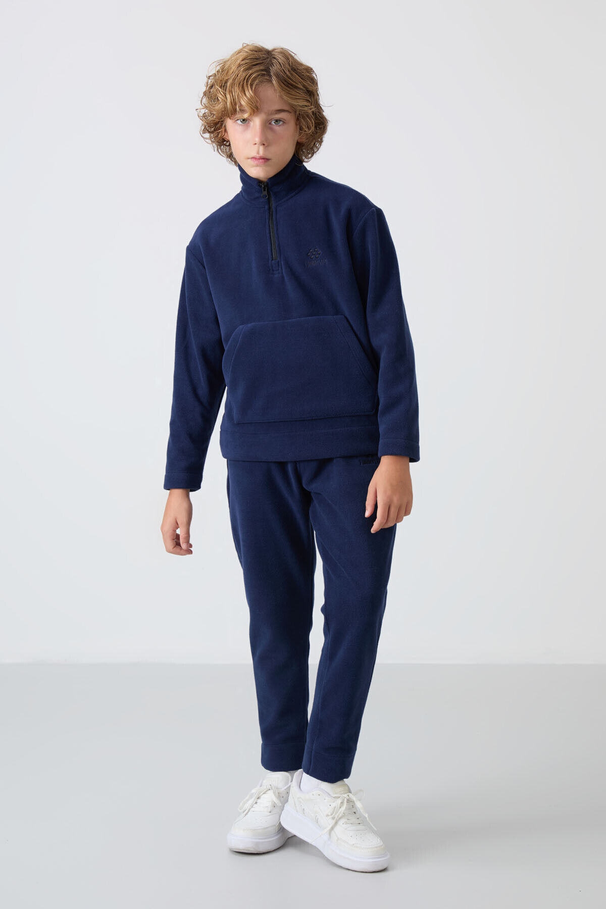 TommyLife Lacivert Kalın Yumuşak Dokulu Standart Fit Nakışlı Polar Erkek Çocuk Eşofman Takım - 11218
