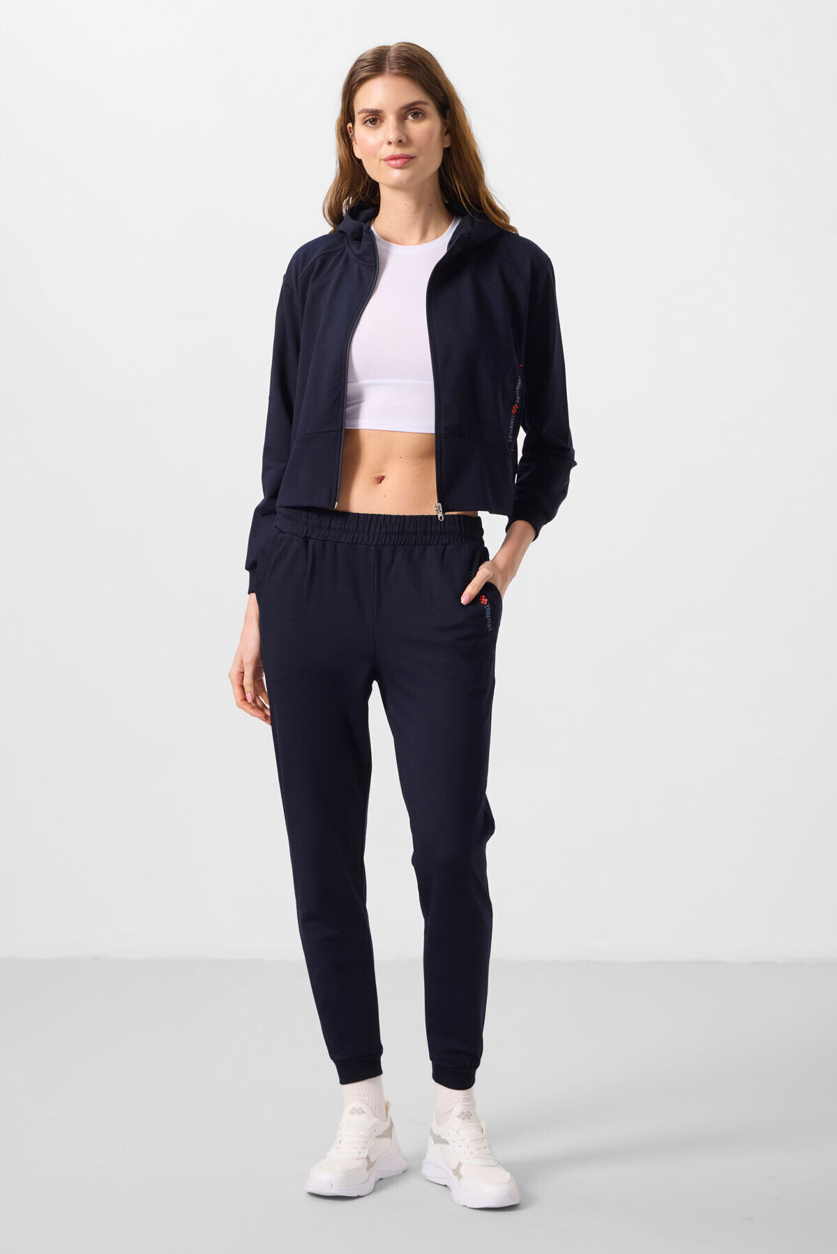 Lacivert Kapüşonlu Fermuarlı Oversize Kadın Eşofman Takım - 95328