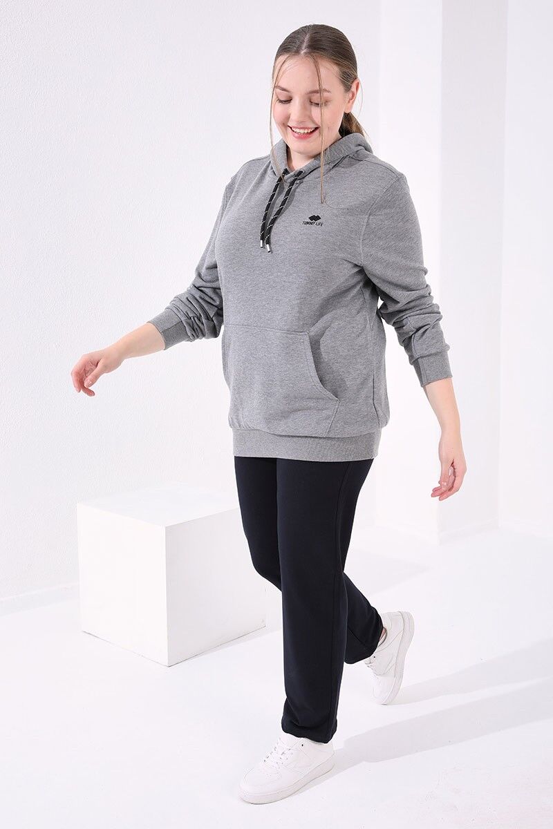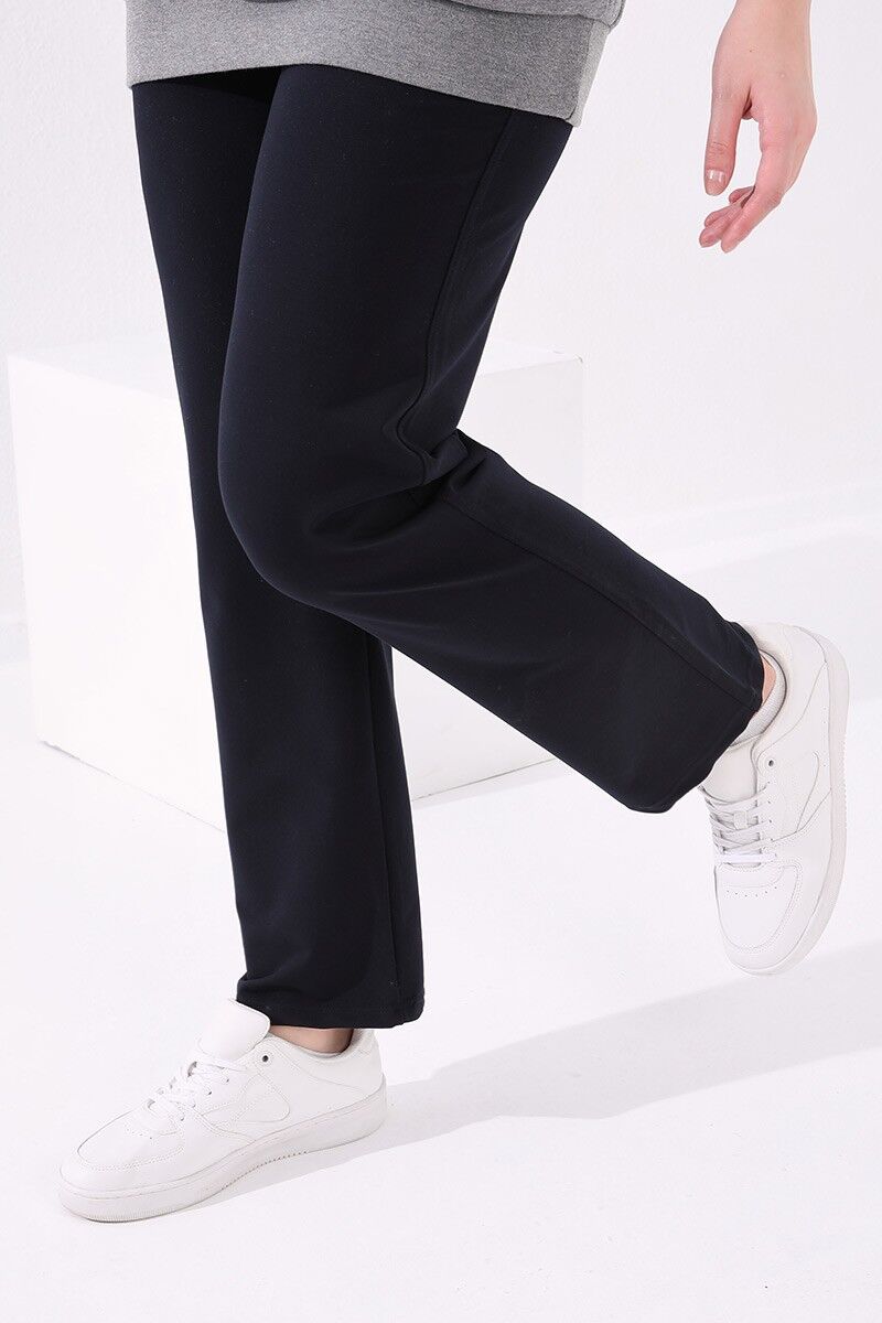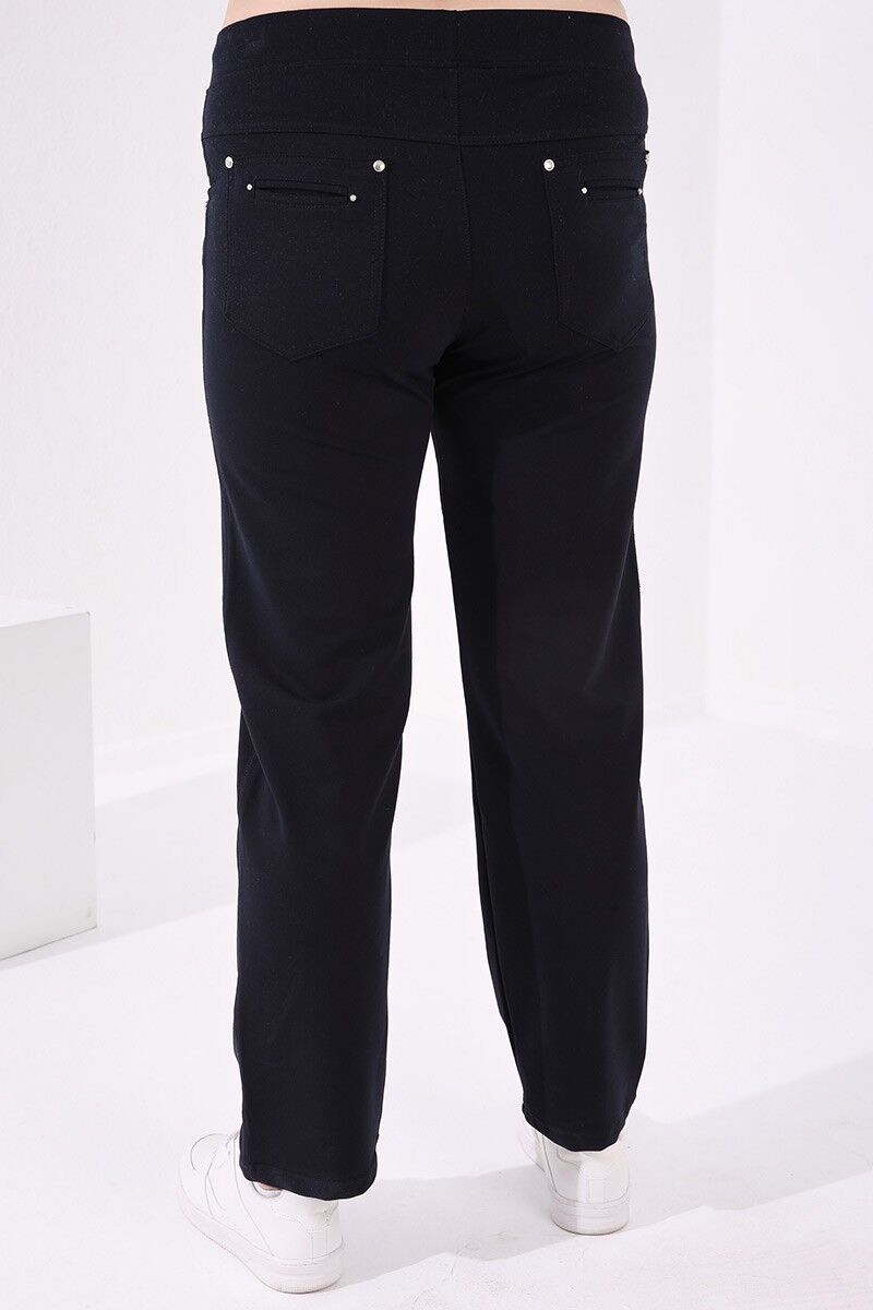 TommyLife Lacivert Klasik Paça Taş Detaylı Kadın Büyük Beden Eşofman Alt - 94040