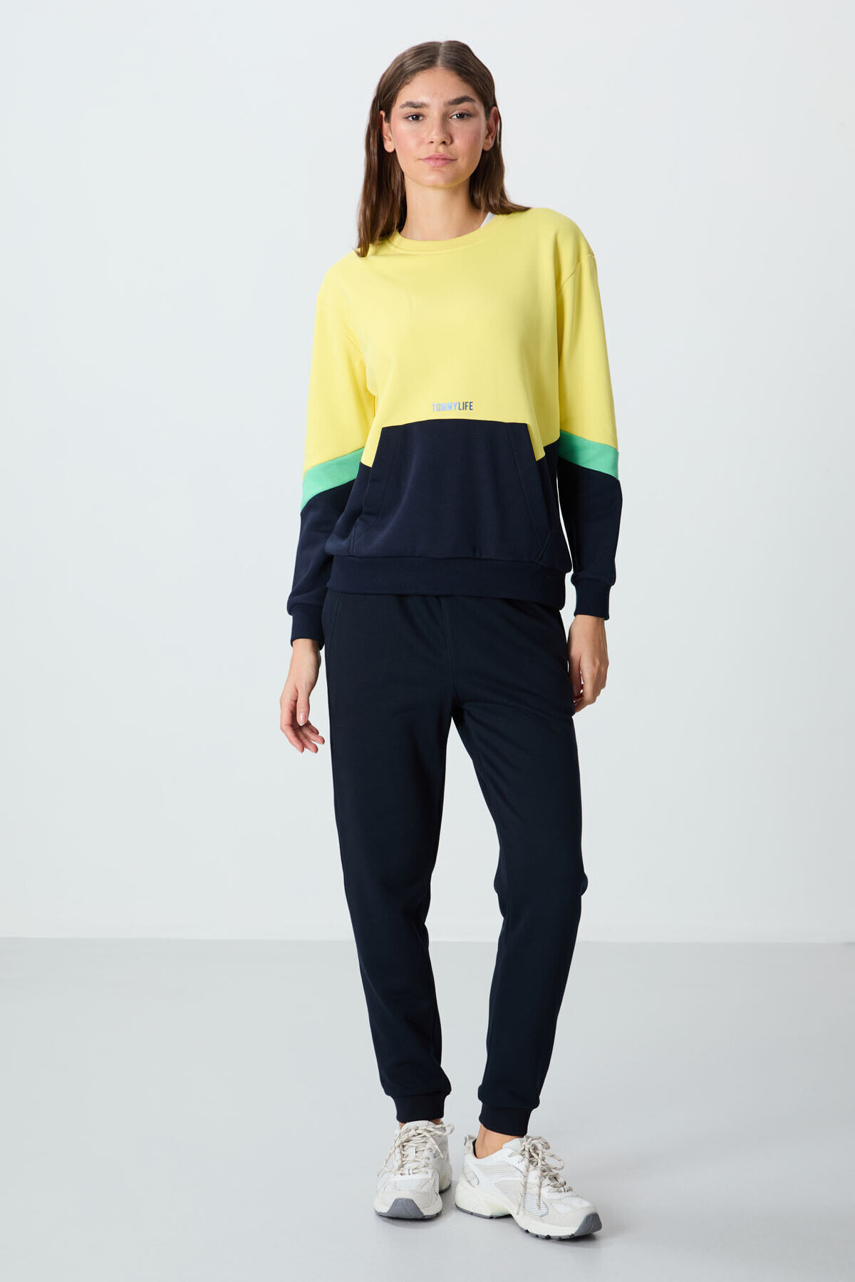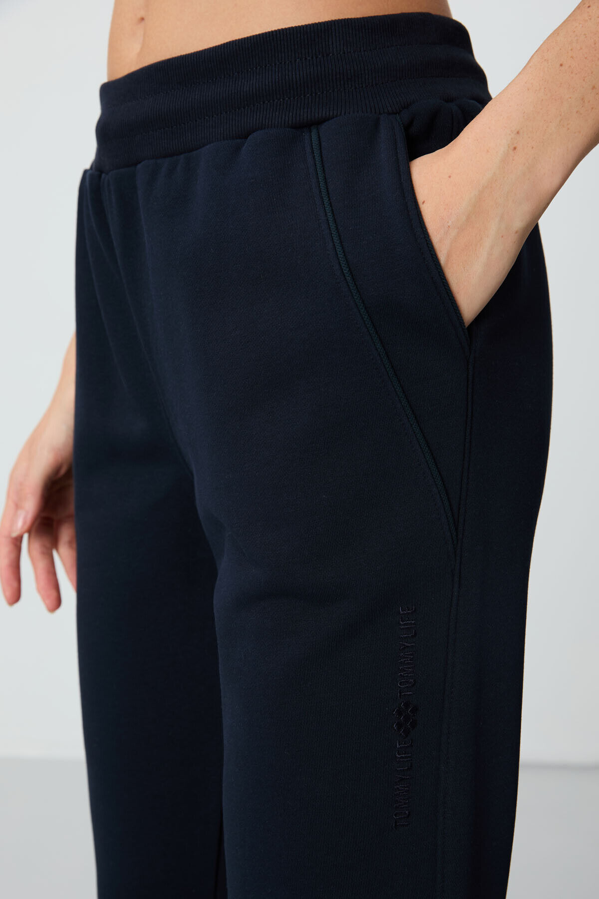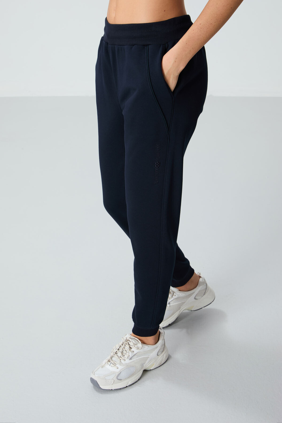TommyLife Lacivert Kompakt Pamuklu Kalın Pürüzsüz Dokulu Standart Fit Kadın Eşofman Altı - 94660