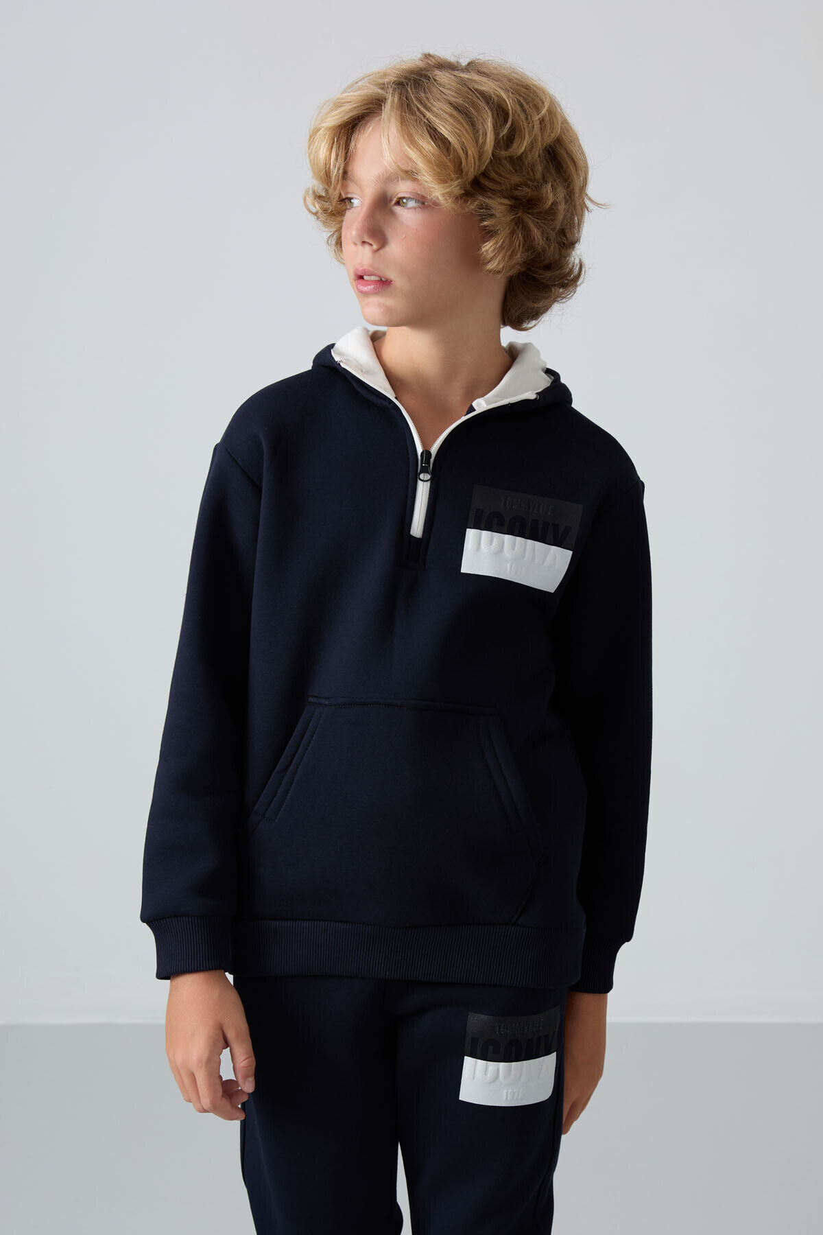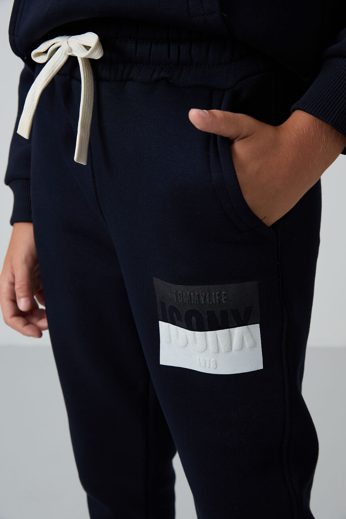 TommyLife Lacivert Pamuklu Kalın İçi Tüylü Standart Fit Baskılı Erkek Çocuk Eşofman Takım - 11246