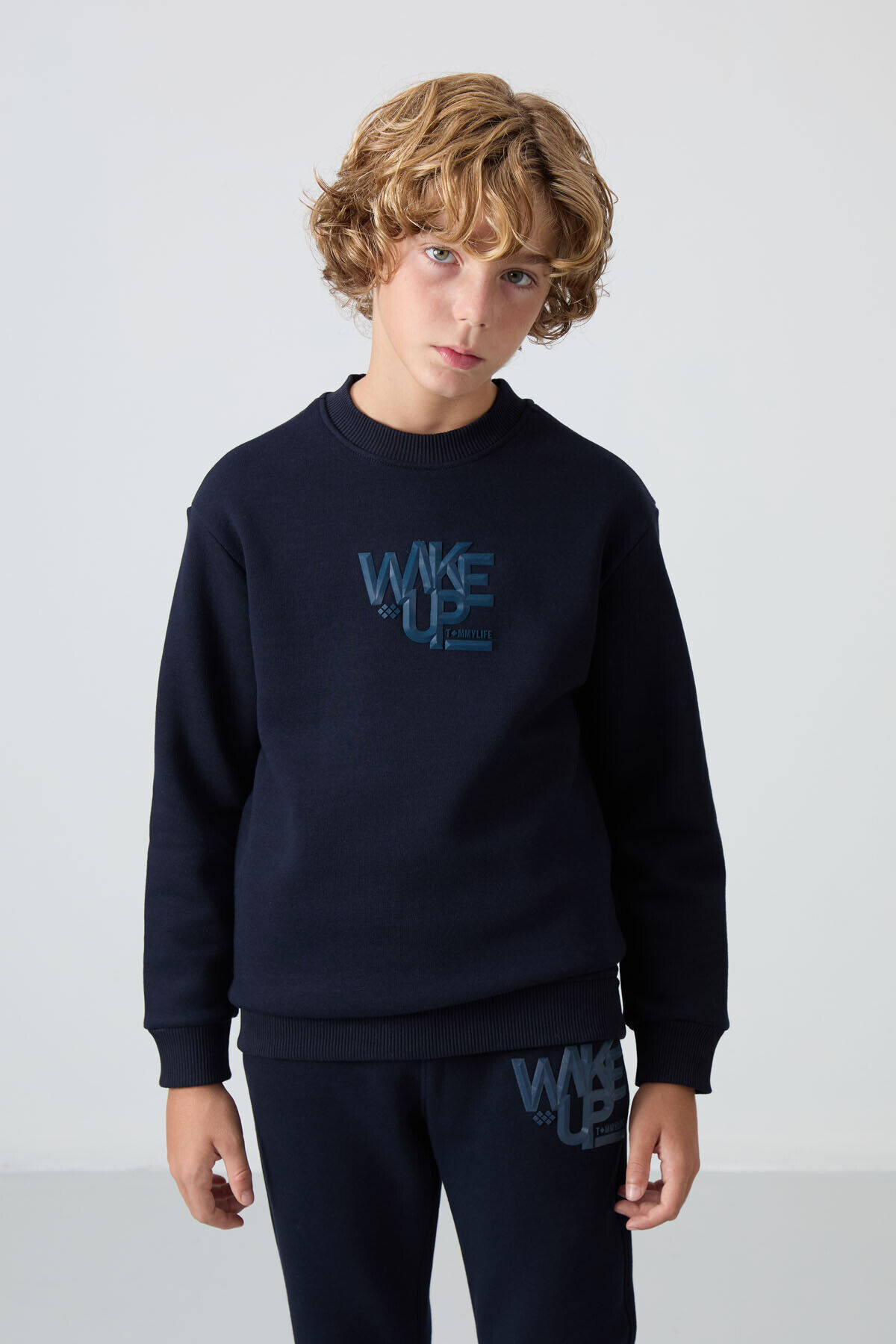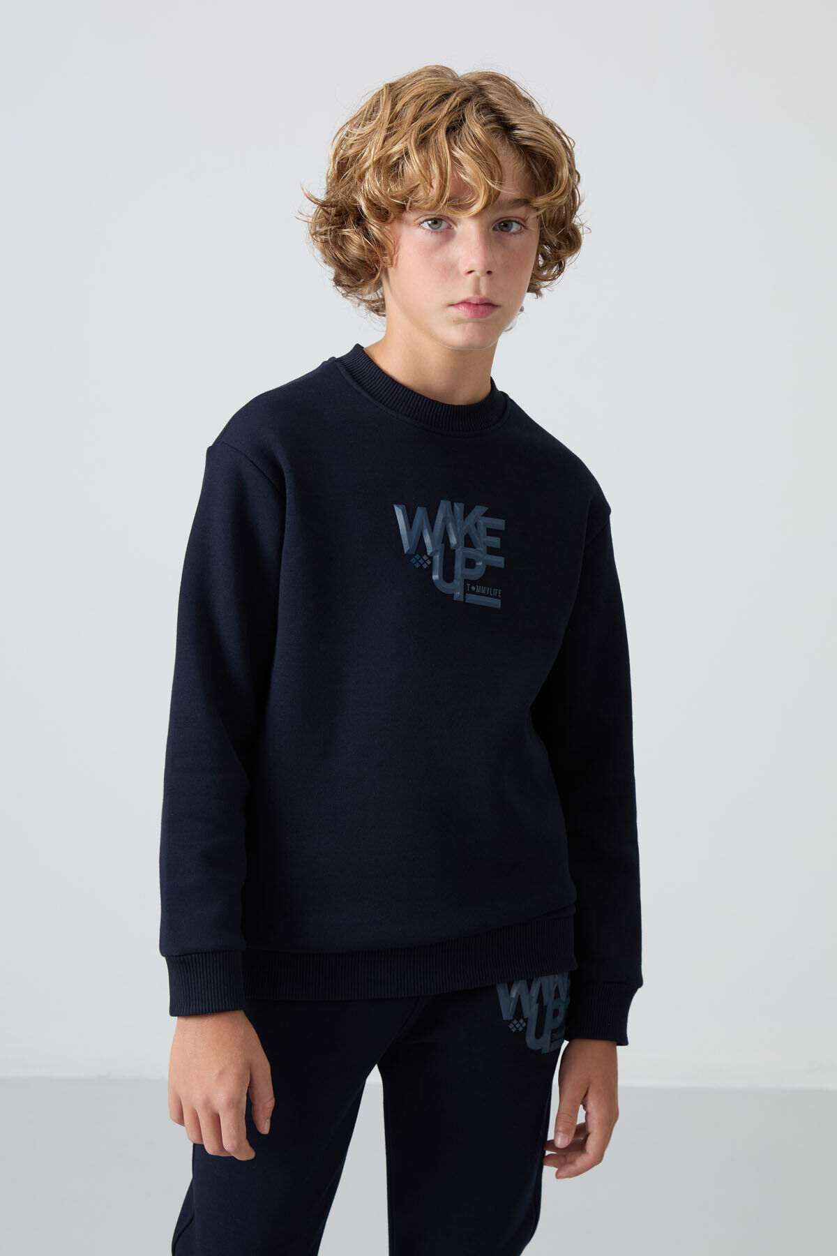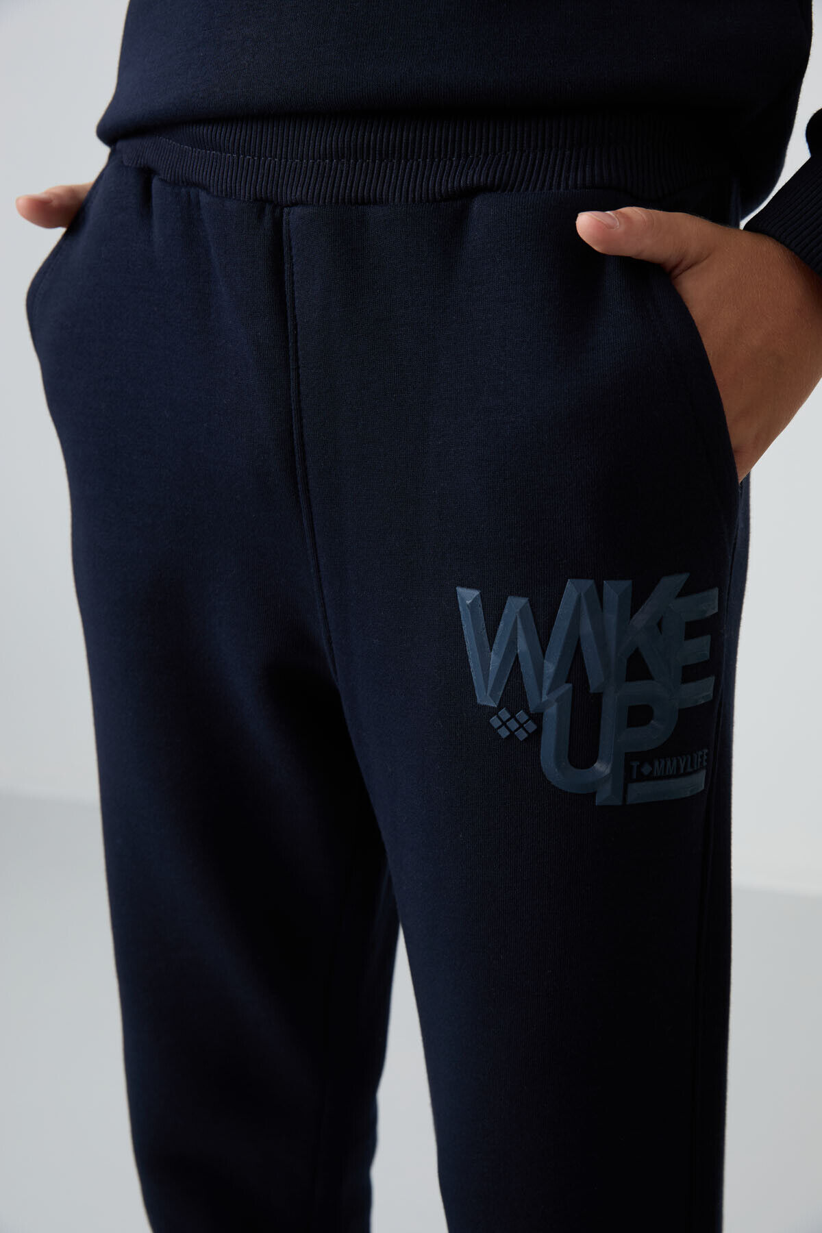 TommyLife Lacivert Pamuklu Kalın İçi Tüylü Standart Fit Baskılı Erkek Çocuk Eşofman Takım - 11253