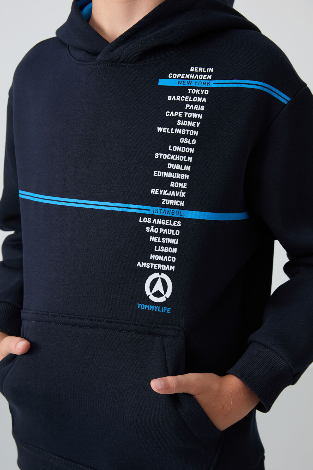 TommyLife Lacivert Pamuklu Kalın İçi Tüylü Yumuşak Dokulu Standart Fit Baskılı Erkek Çocuk Sweatshirt - 11239