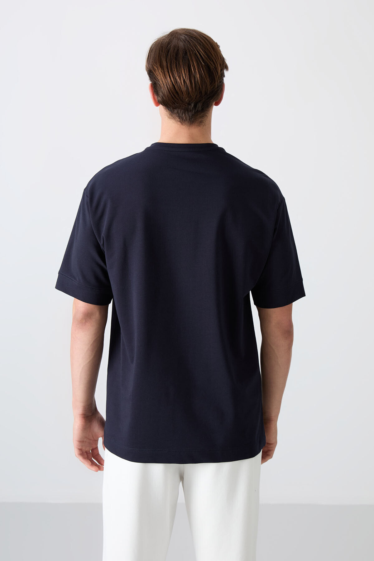 TommyLife Lacivert Pamuklu Kalın Yumuşak Dokulu Oversize Fit Basic Erkek T-Shirt - 88349