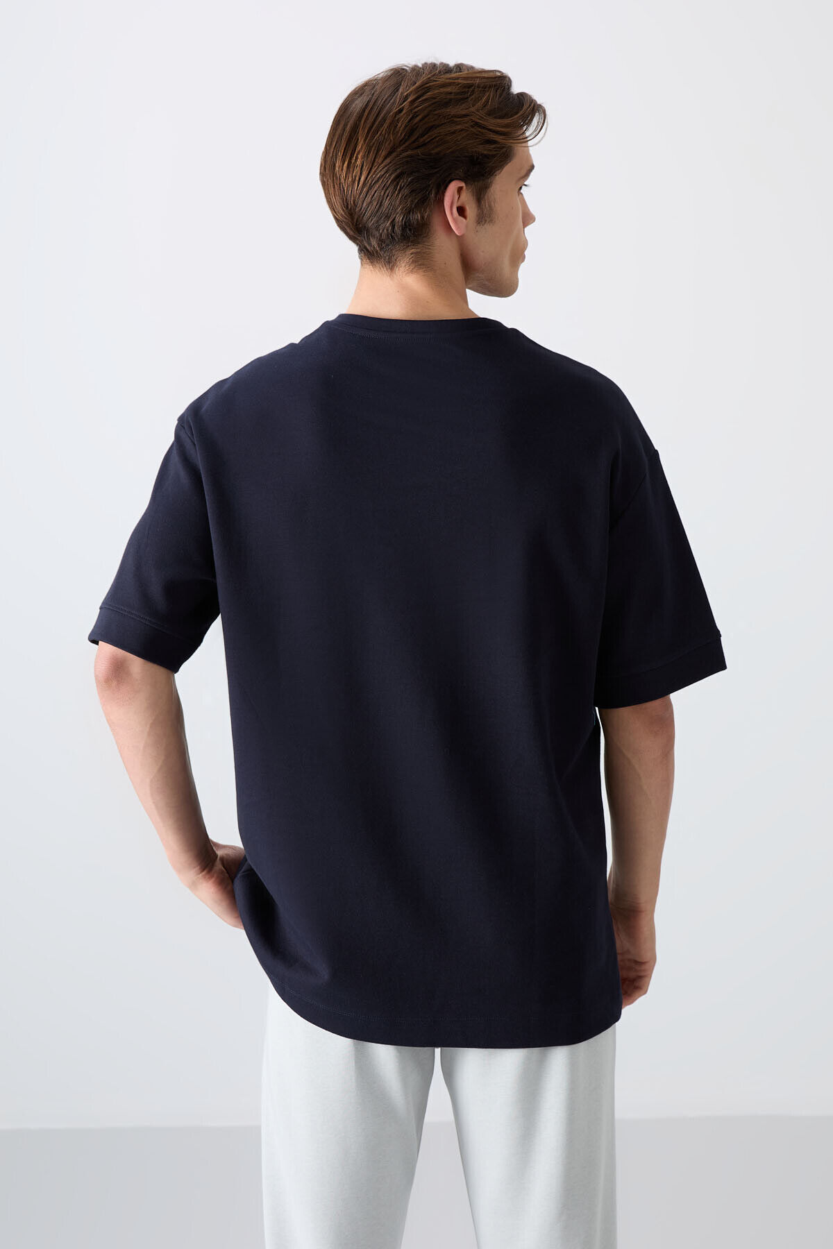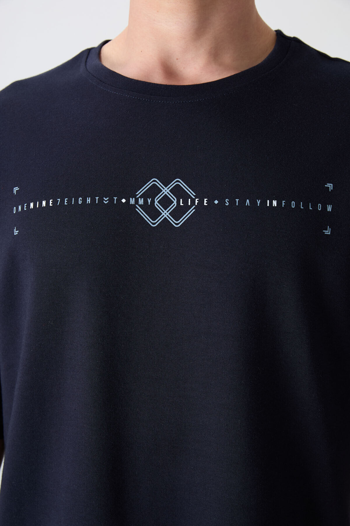 TommyLife Lacivert Pamuklu Kalın Yumuşak Dokulu Oversize Fit Baskılı Erkek T-Shirt - 88323