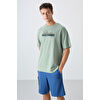 TommyLife Lacivert Pamuklu Kalın Yumuşak Dokulu Oversize Fit Baskılı Erkek T-Shirt - 88334