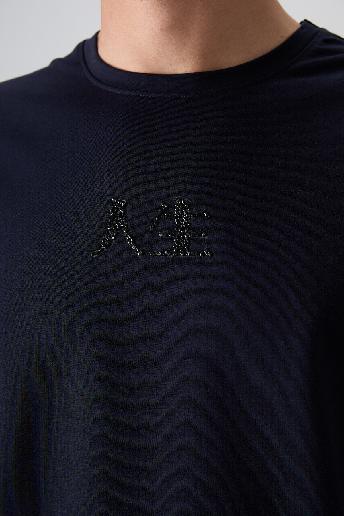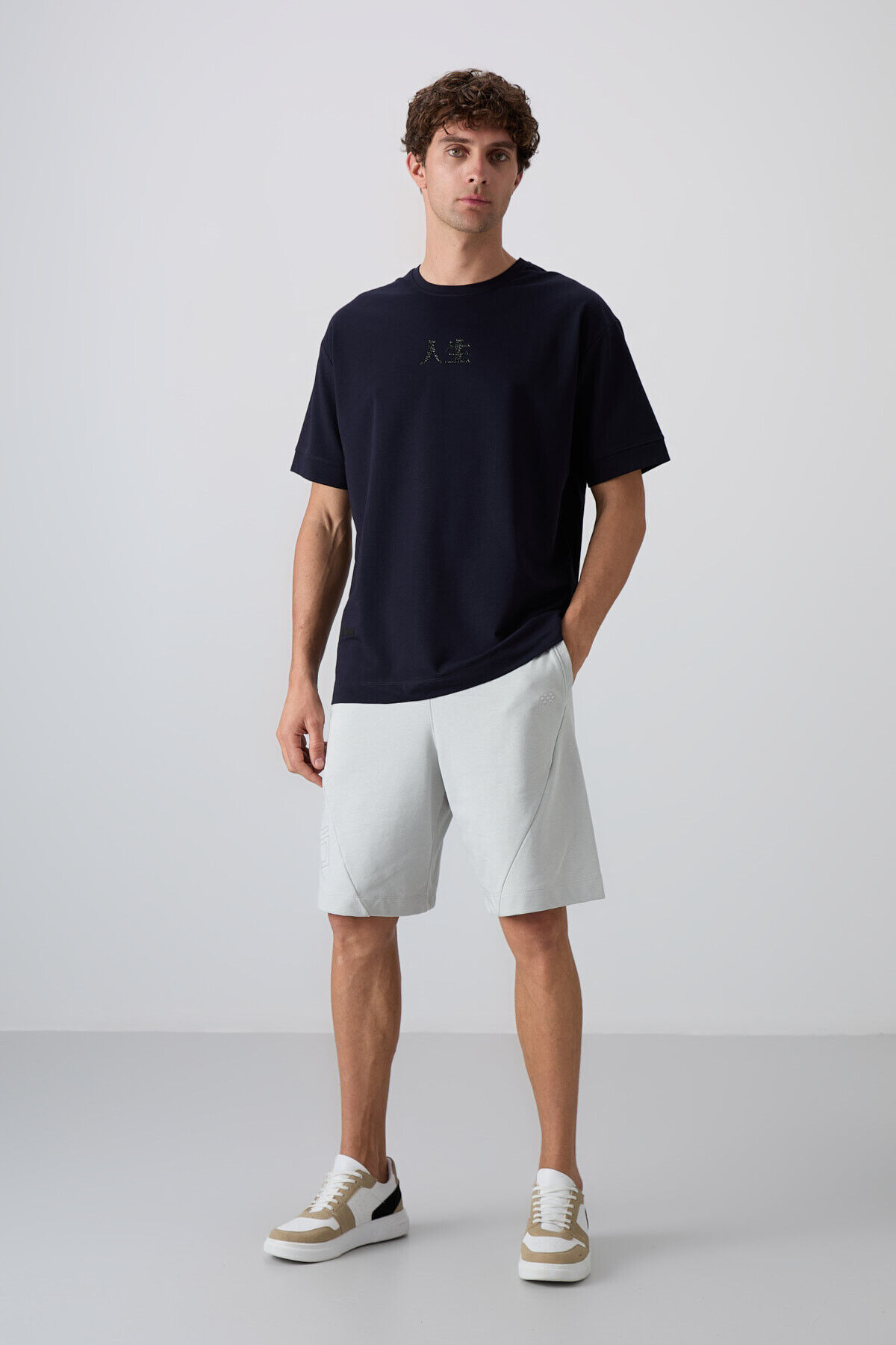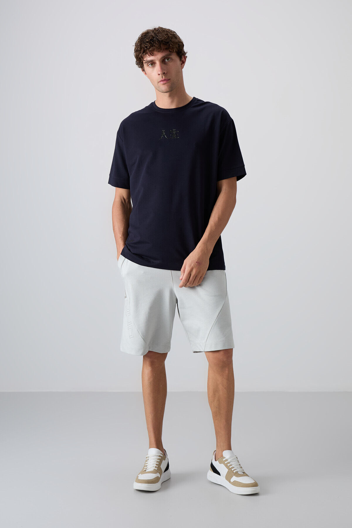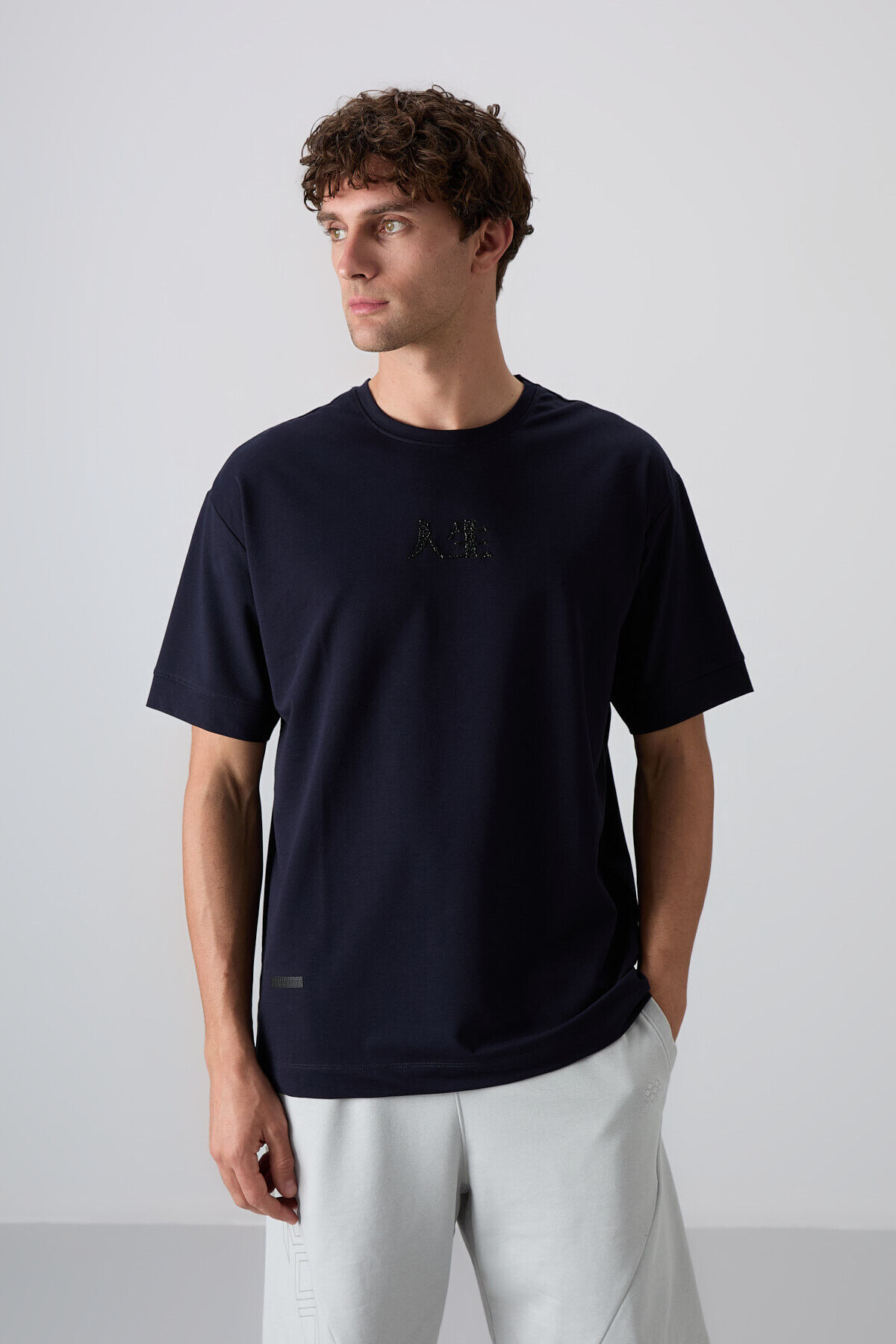 TommyLife Lacivert Pamuklu Kalın Yumuşak Dokulu Oversize Fit Baskılı Erkek T-Shirt - 88342