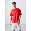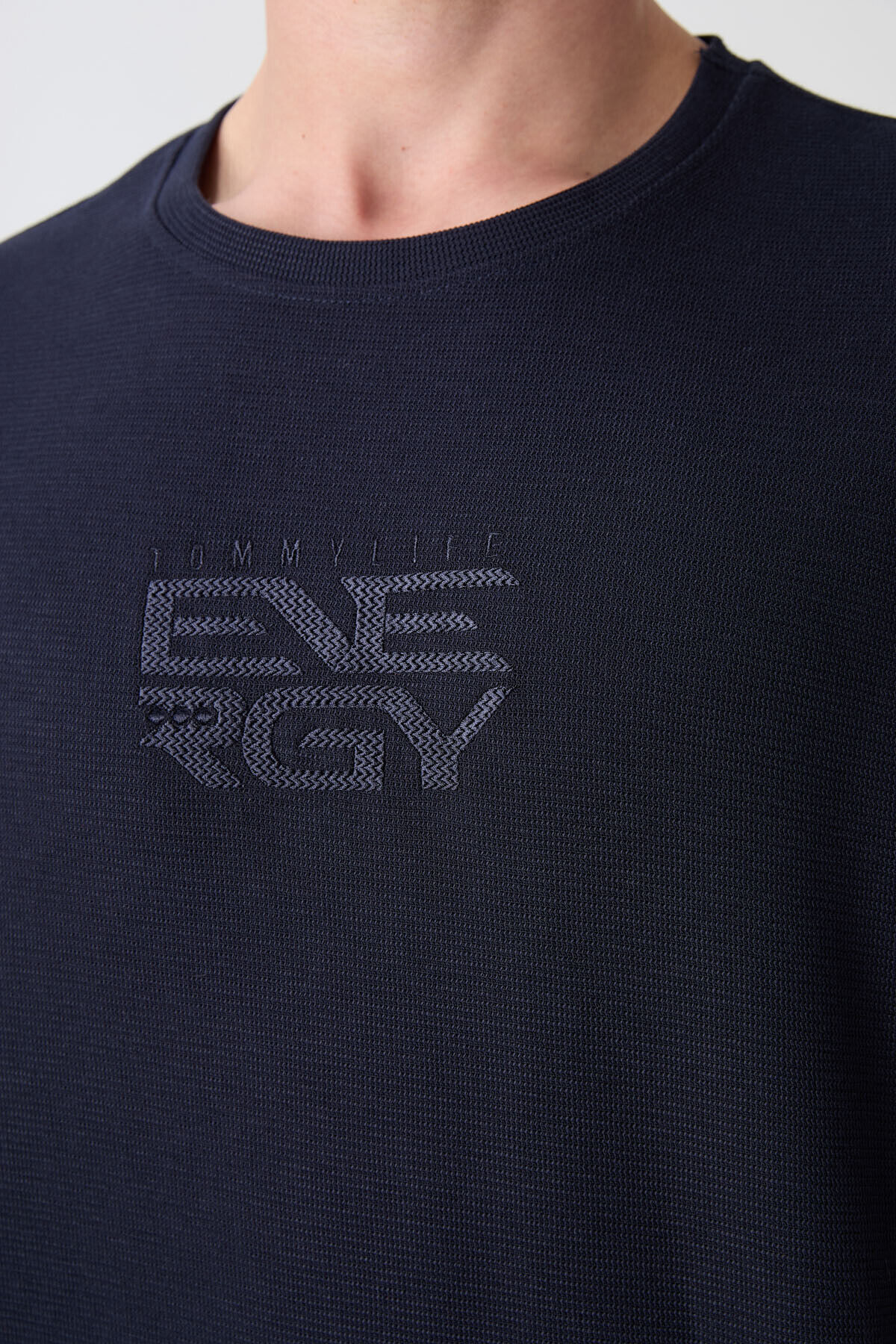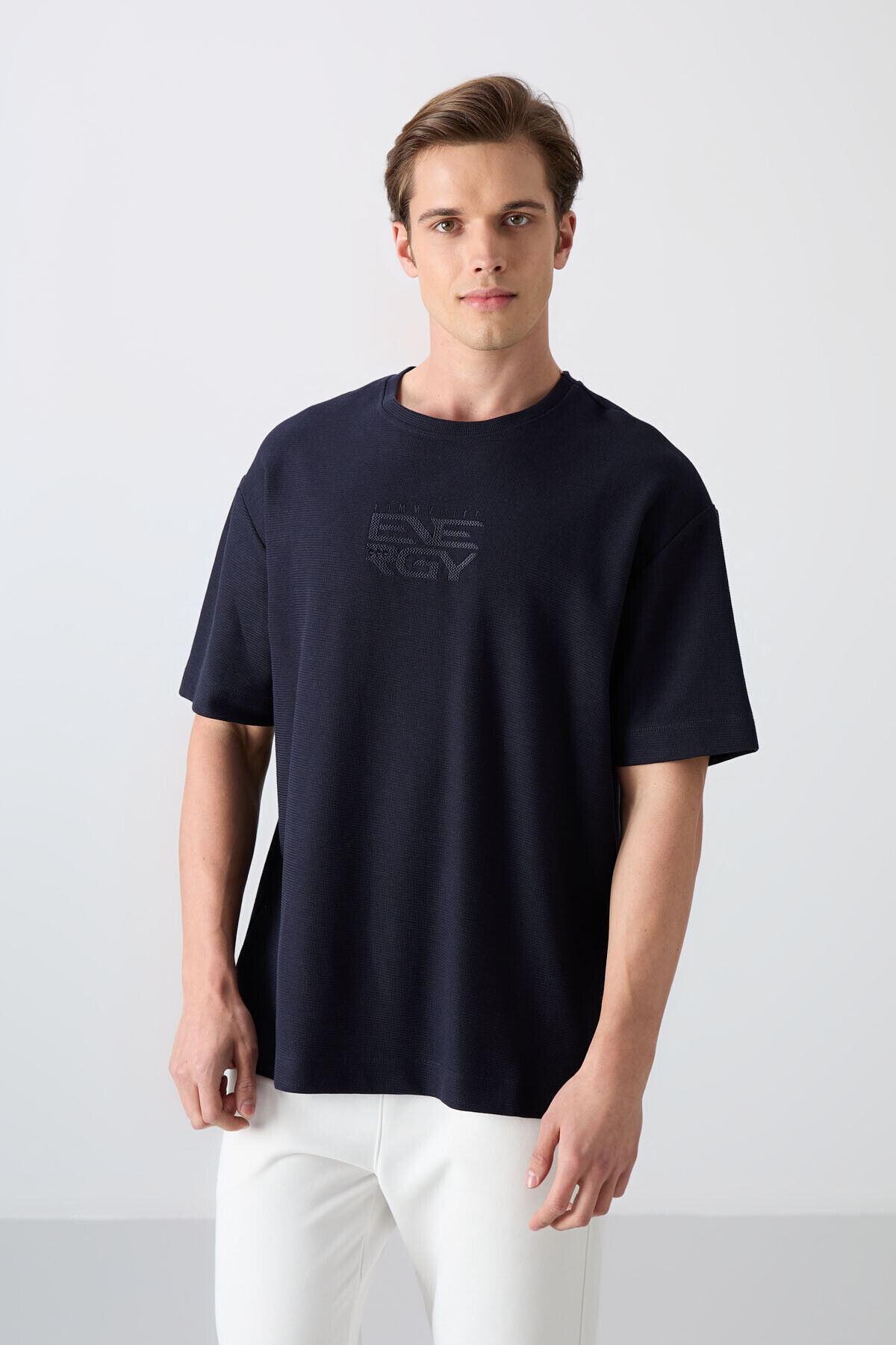 TommyLife Lacivert Pamuklu Kalın Yüzeyi Dokulu Oversize Fit Baskılı Erkek T-Shirt - 88336