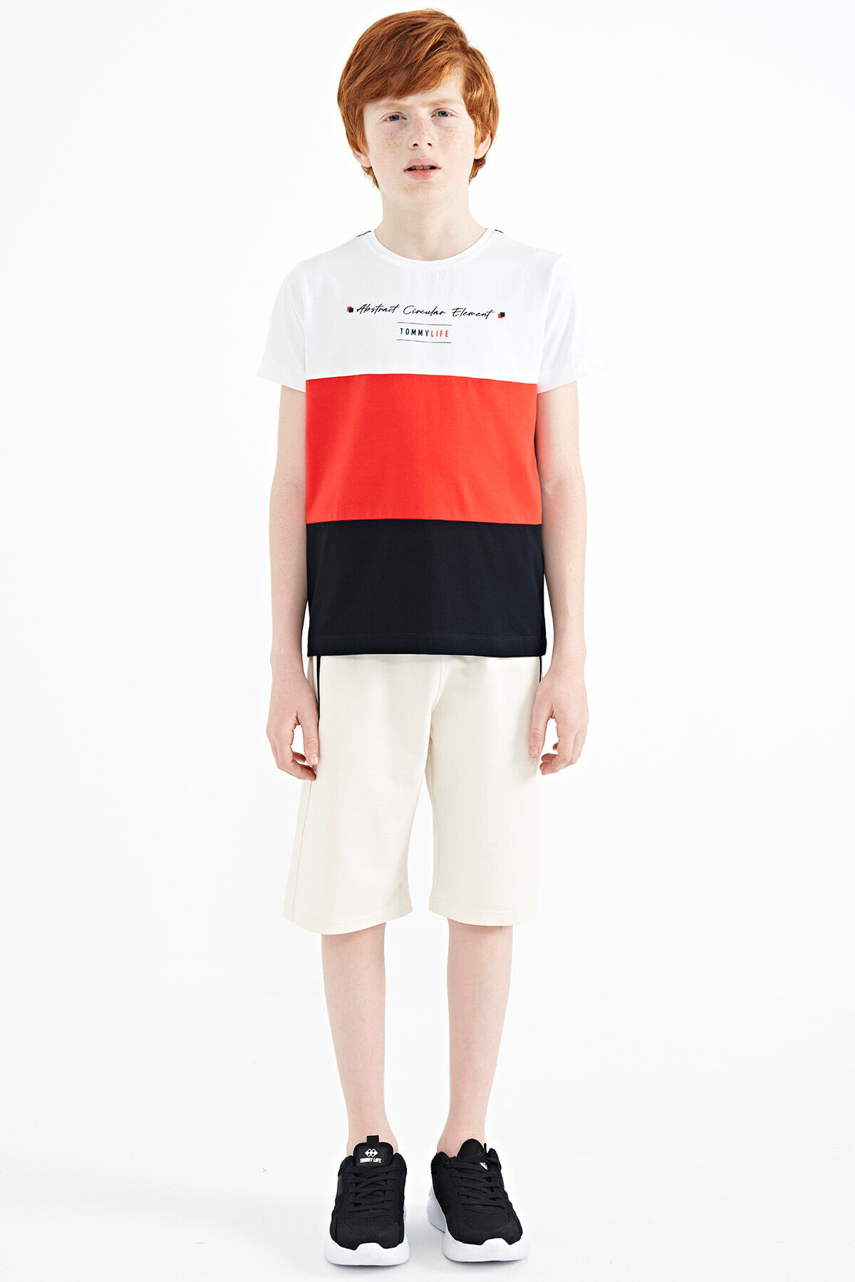 TommyLife Lacivert Renk Bloklu O Yaka Baskı Detaylı Standart Kalıp Erkek Çocuk T-Shirt - 11135