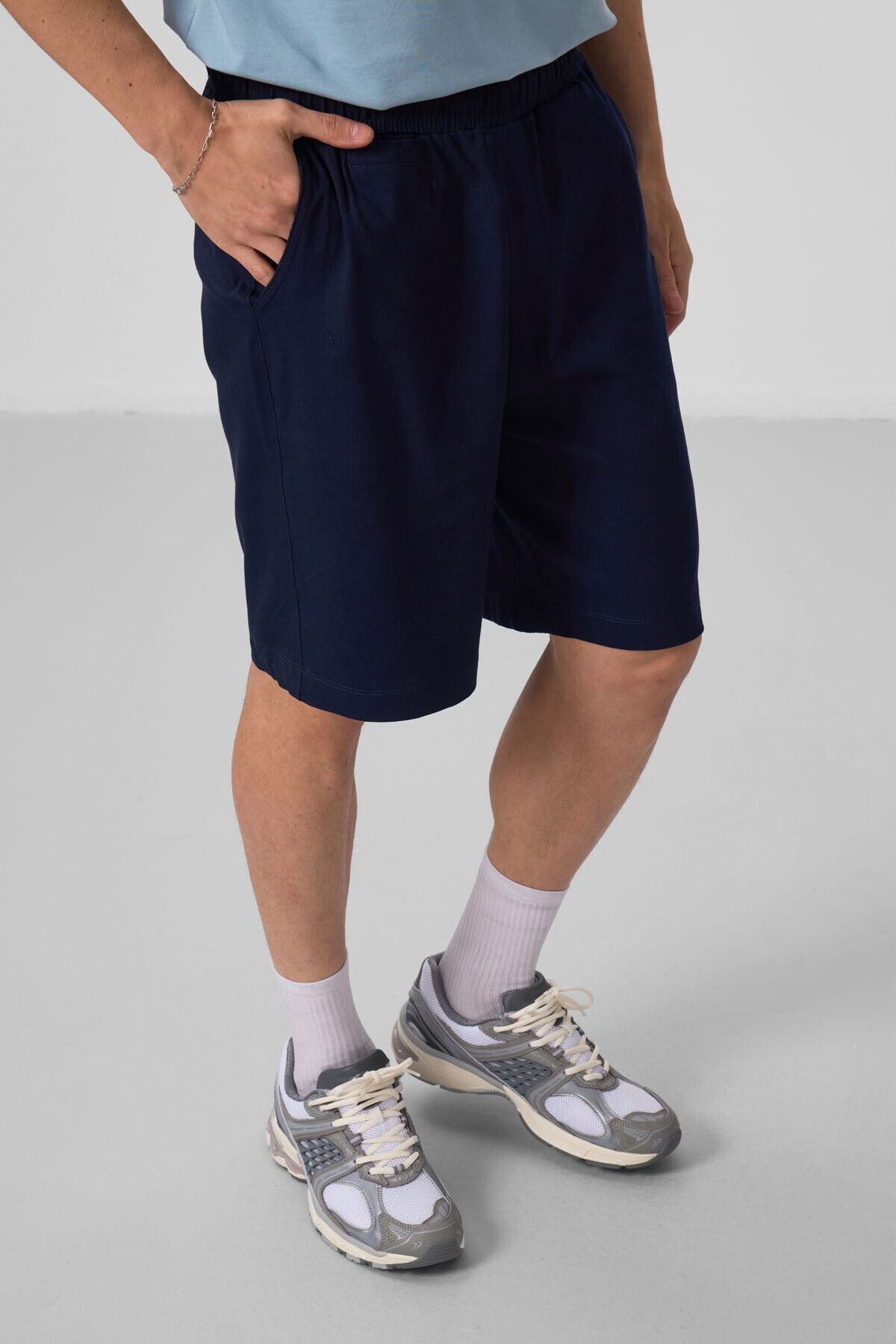TommyLife Lacivert Standart Fit Dokuma Hafif Esnek Chino Erkek Şort - 81290