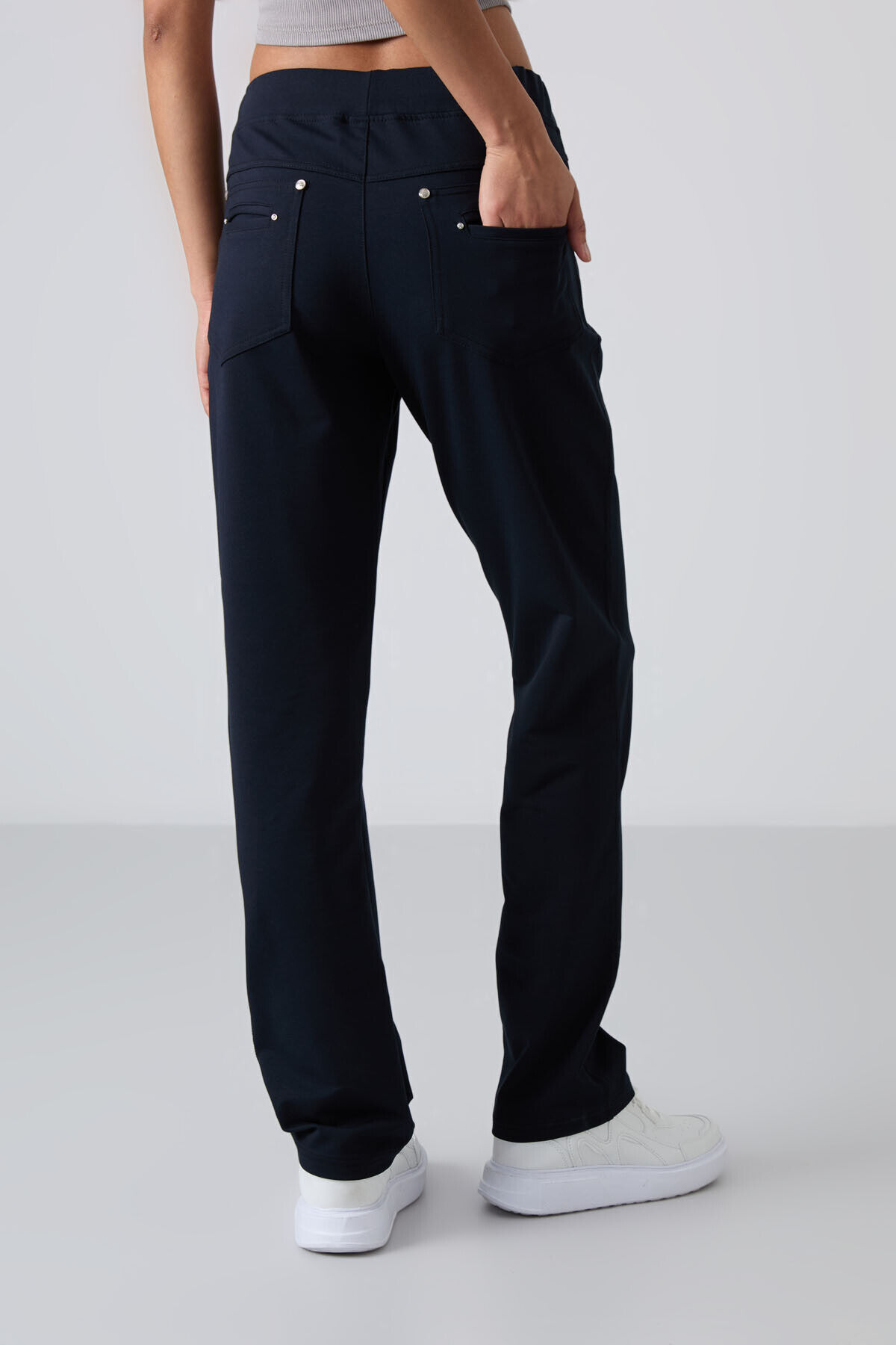 TommyLife Lacivert Taş Detaylı Cepli Rahat Form Klasik Paça Kadın Eşofman Altı - 94007