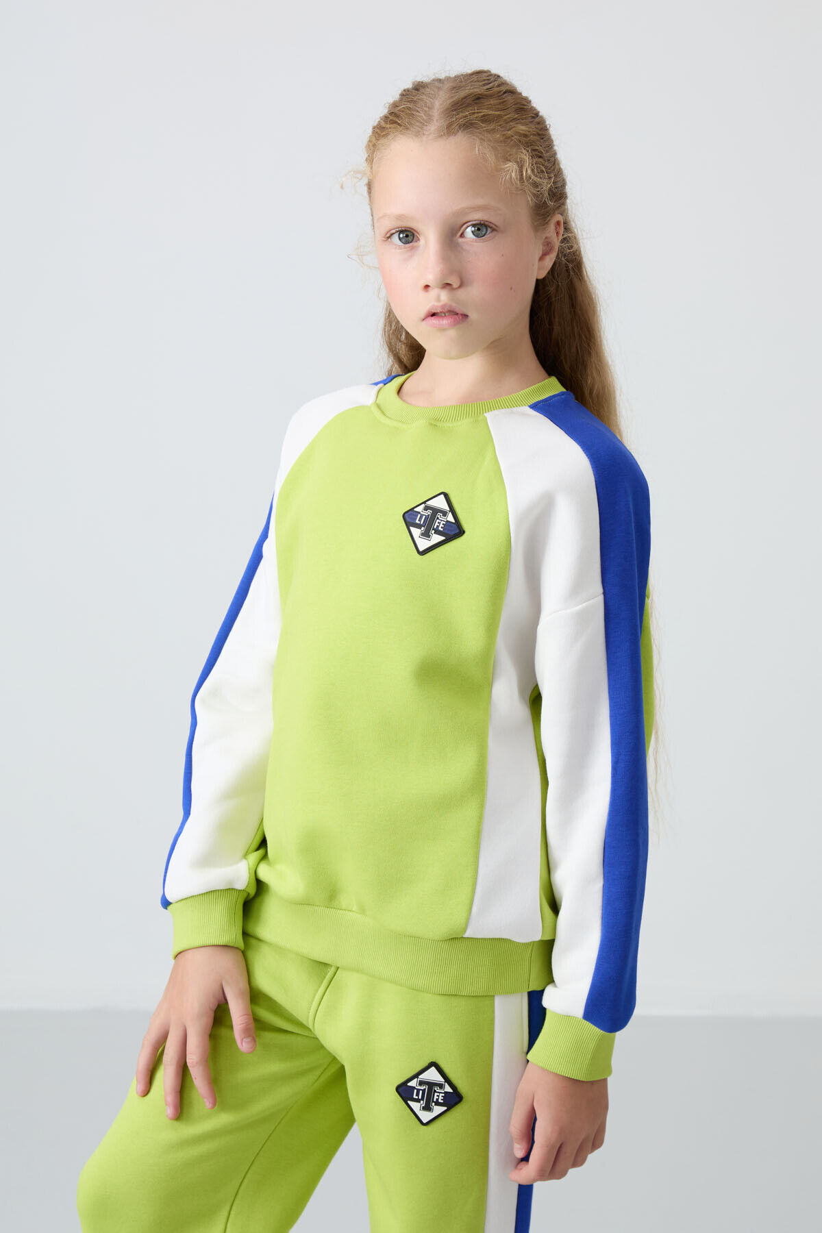 TommyLife Lime Yeşil O Yaka Geniş Paça Standart Fit Baskılı Kız Çocuk Eşofman Takım - 75165