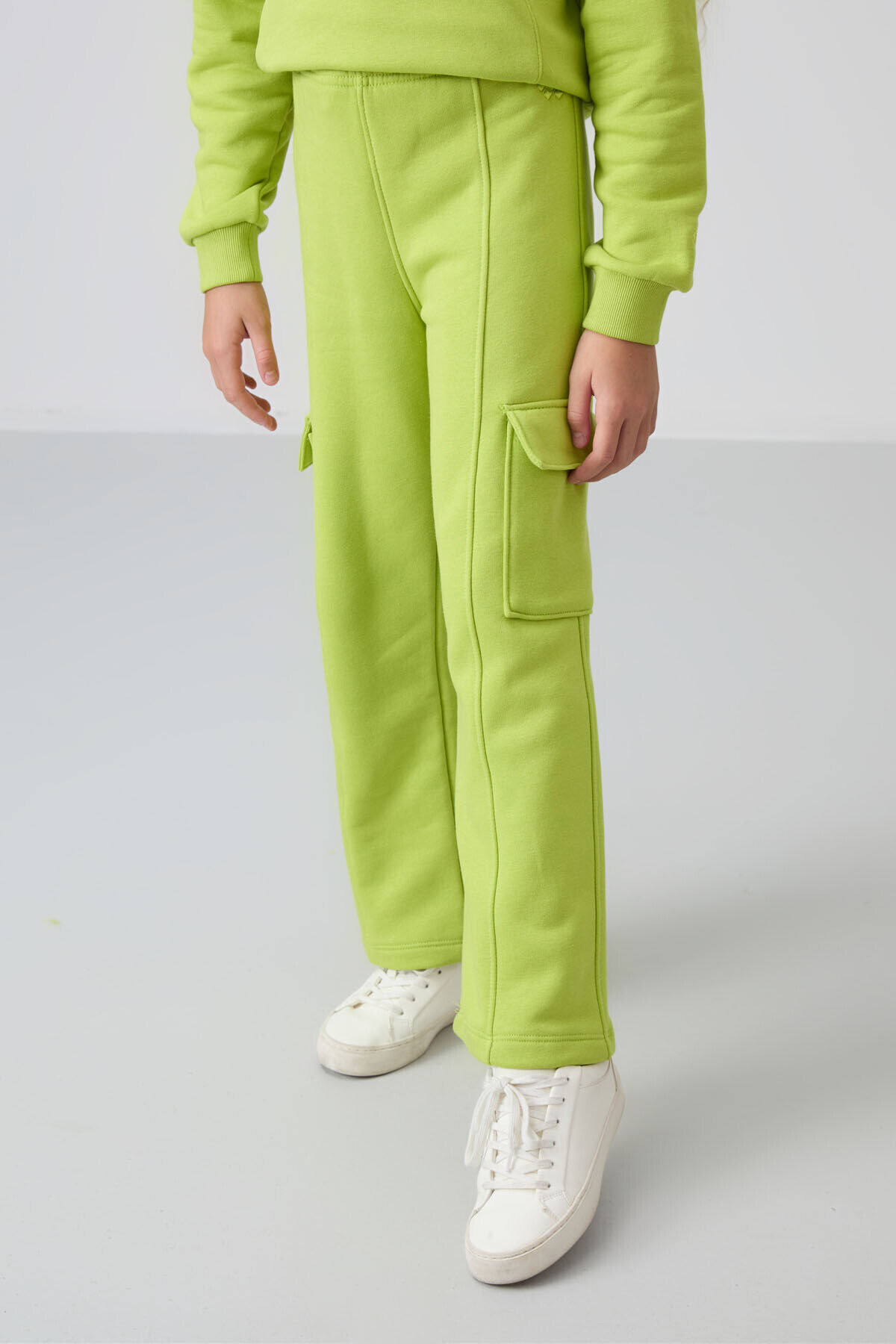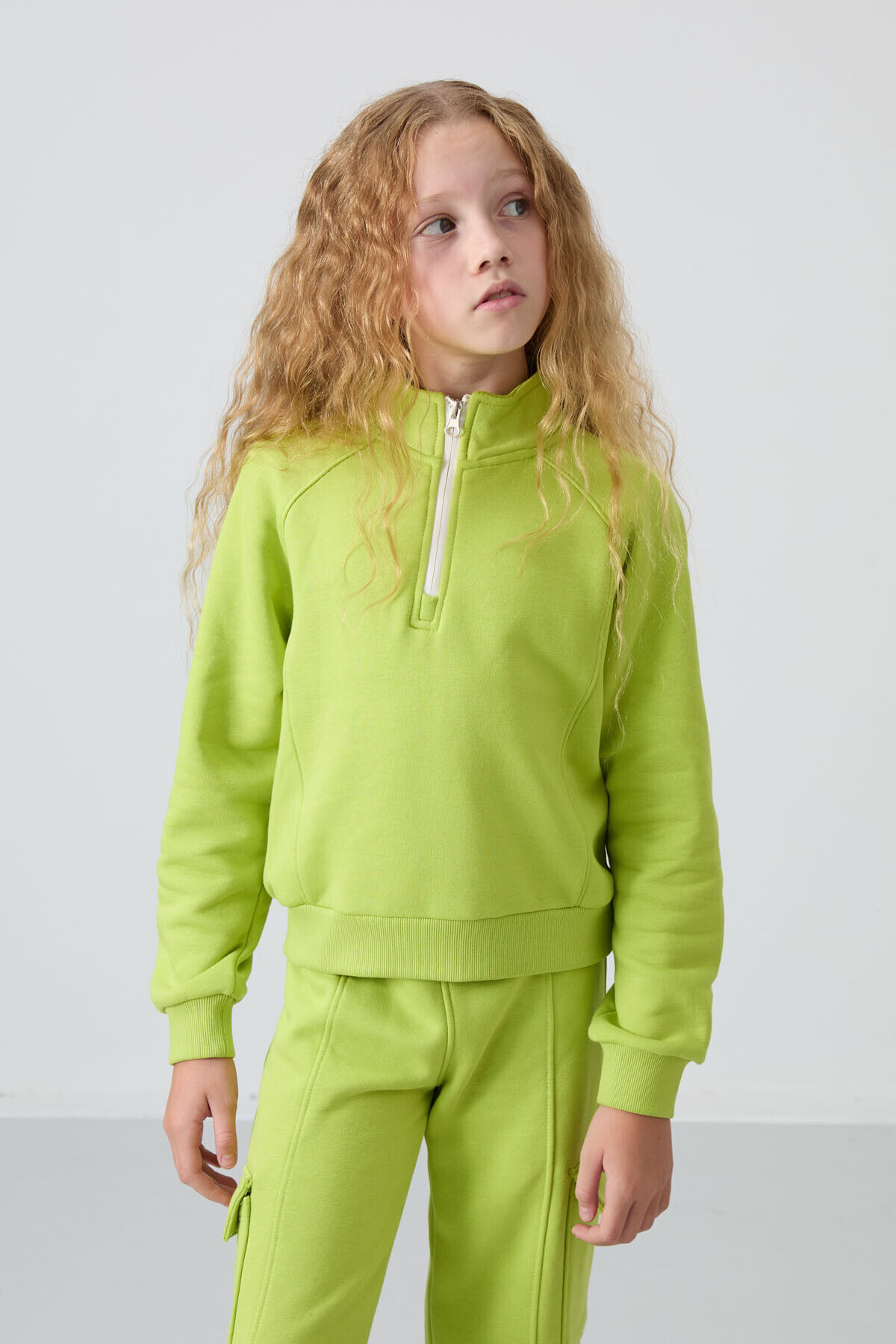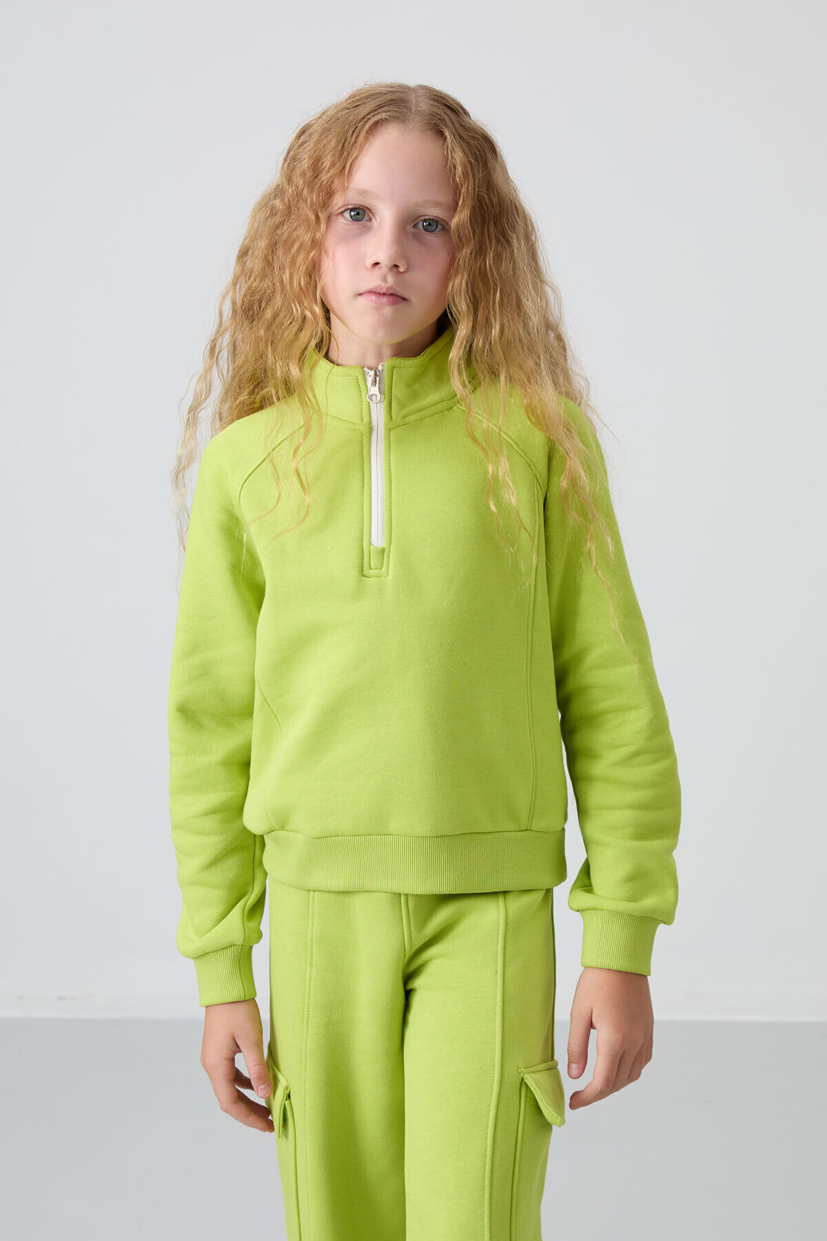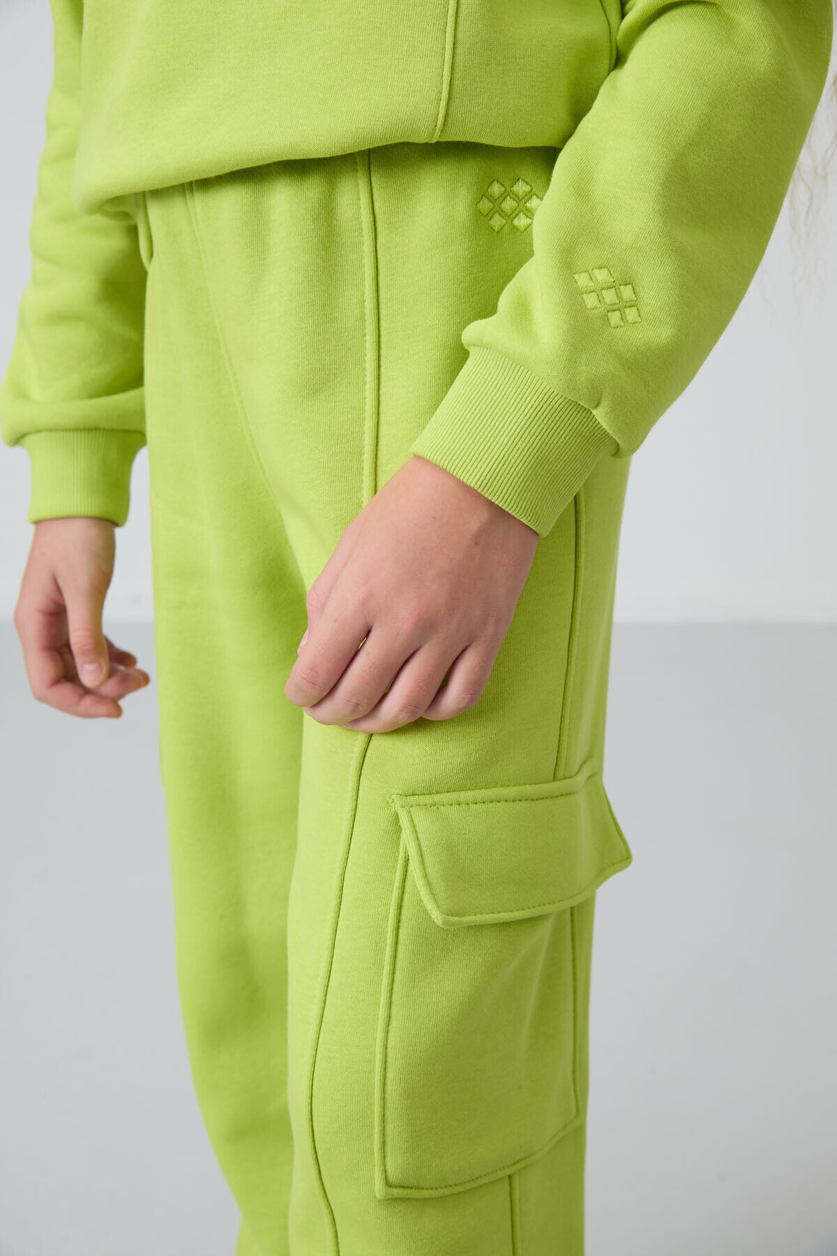 TommyLife Lime Yeşil Pamuklu İçi Tüylü Yumuşak Dokulu Standart Fit Nakışlı Kız Çocuk Eşofman Takım - 75159