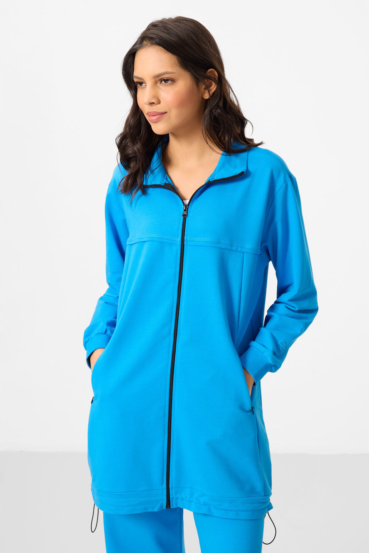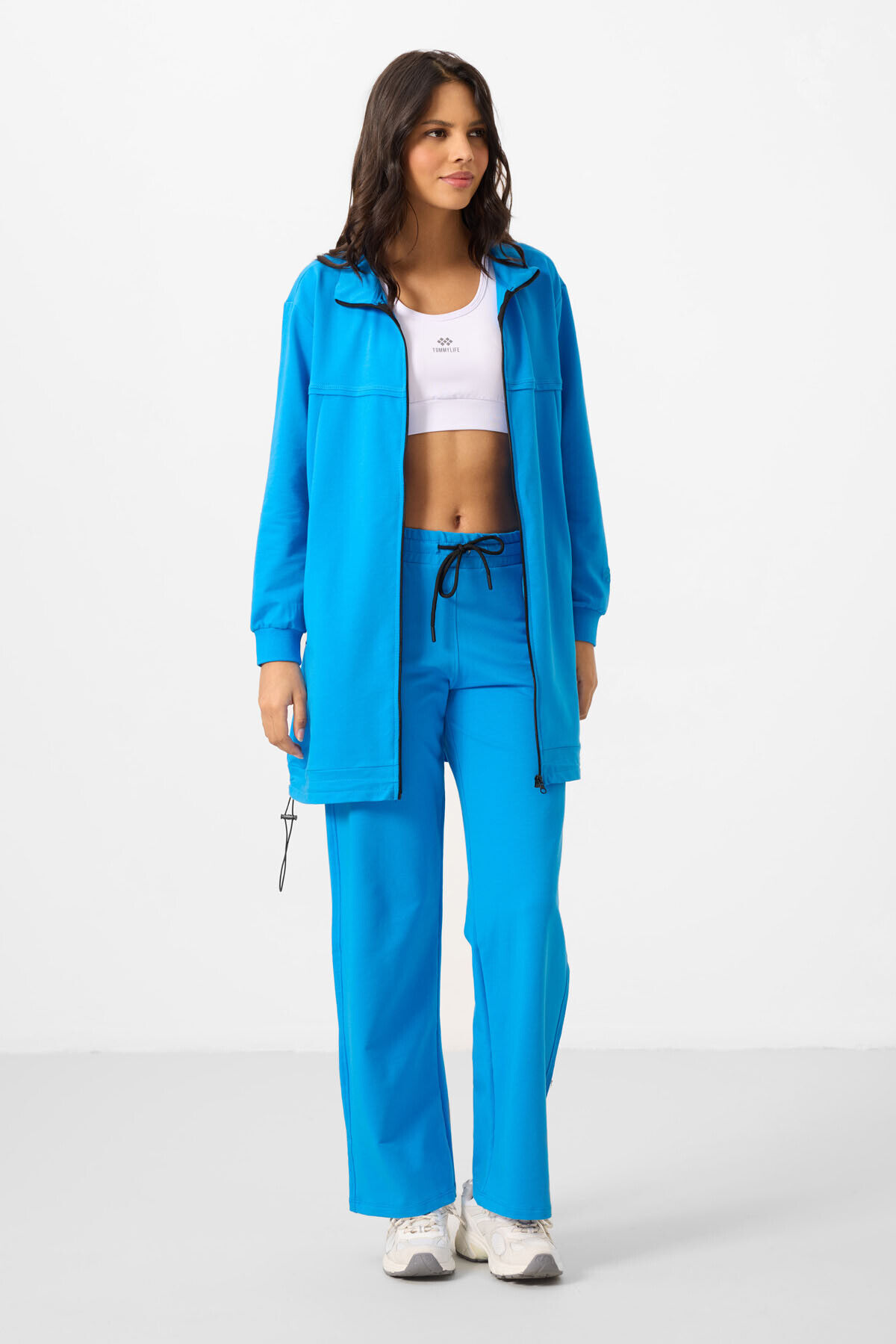 TommyLife Mavi Dik Yaka Fermuarlı Pamuklu Kadın Eşofman Tunik Takım - 95346