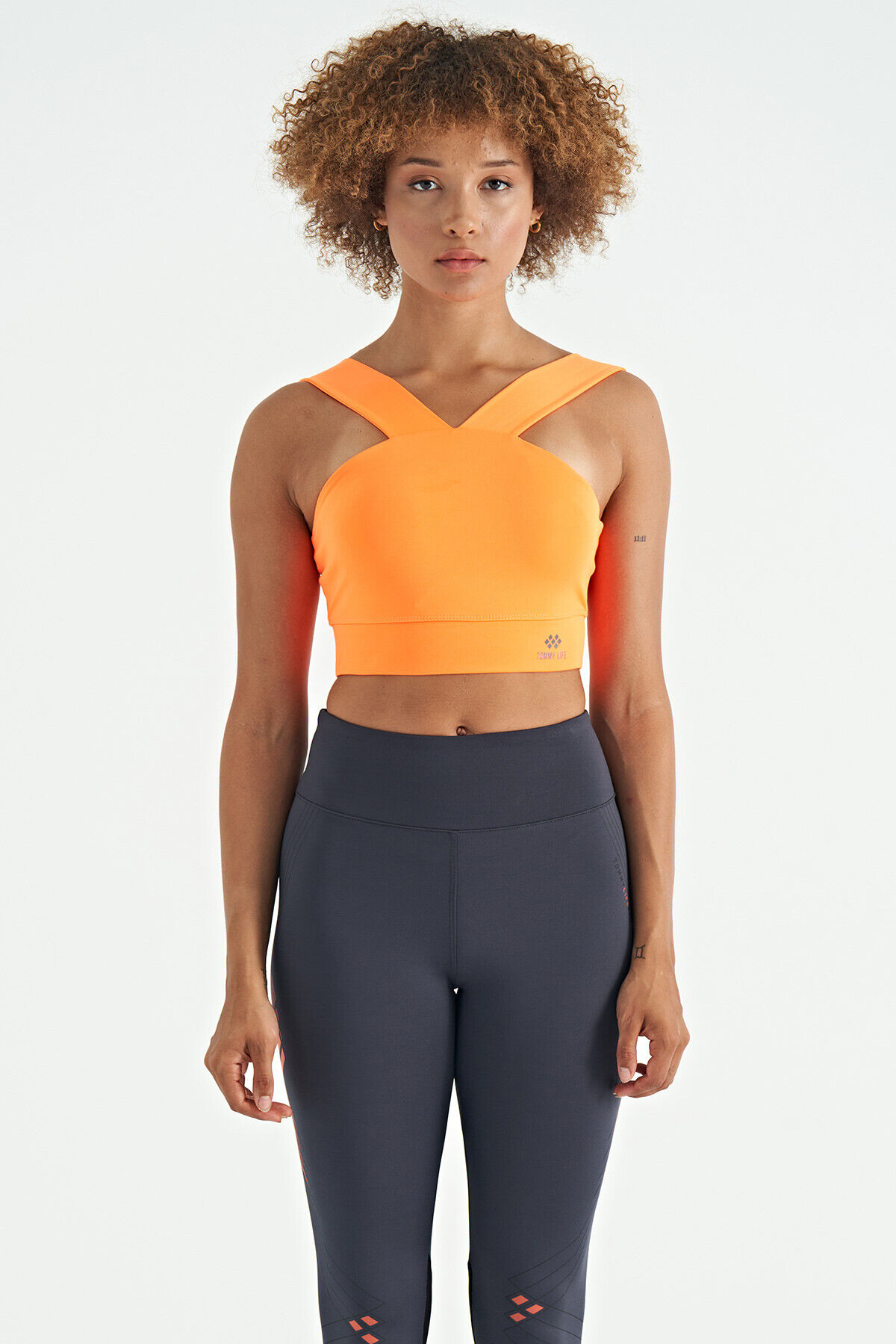 Neon Turuncu Logo Baskılı Dar Kalıp Dalgıç Kumaş Kadın Büstiyer - 97259