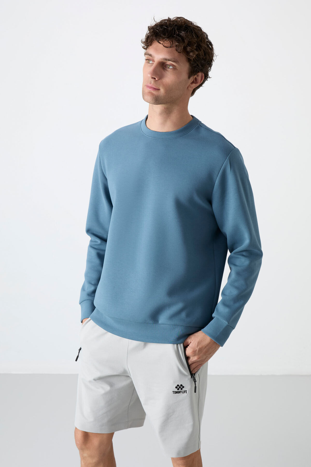 TommyLife Orman Yeşili Basic O Yaka Rahat Form Erkek Sweatshirt - 88053