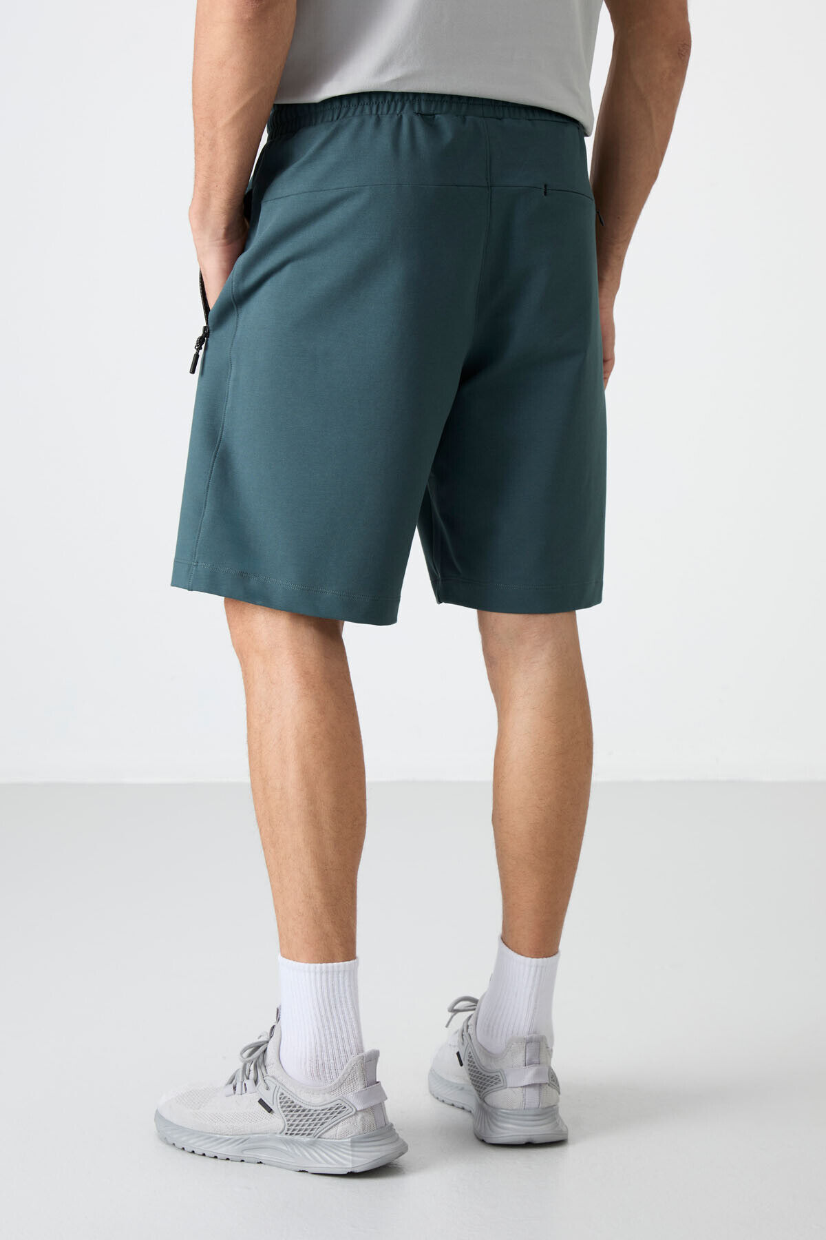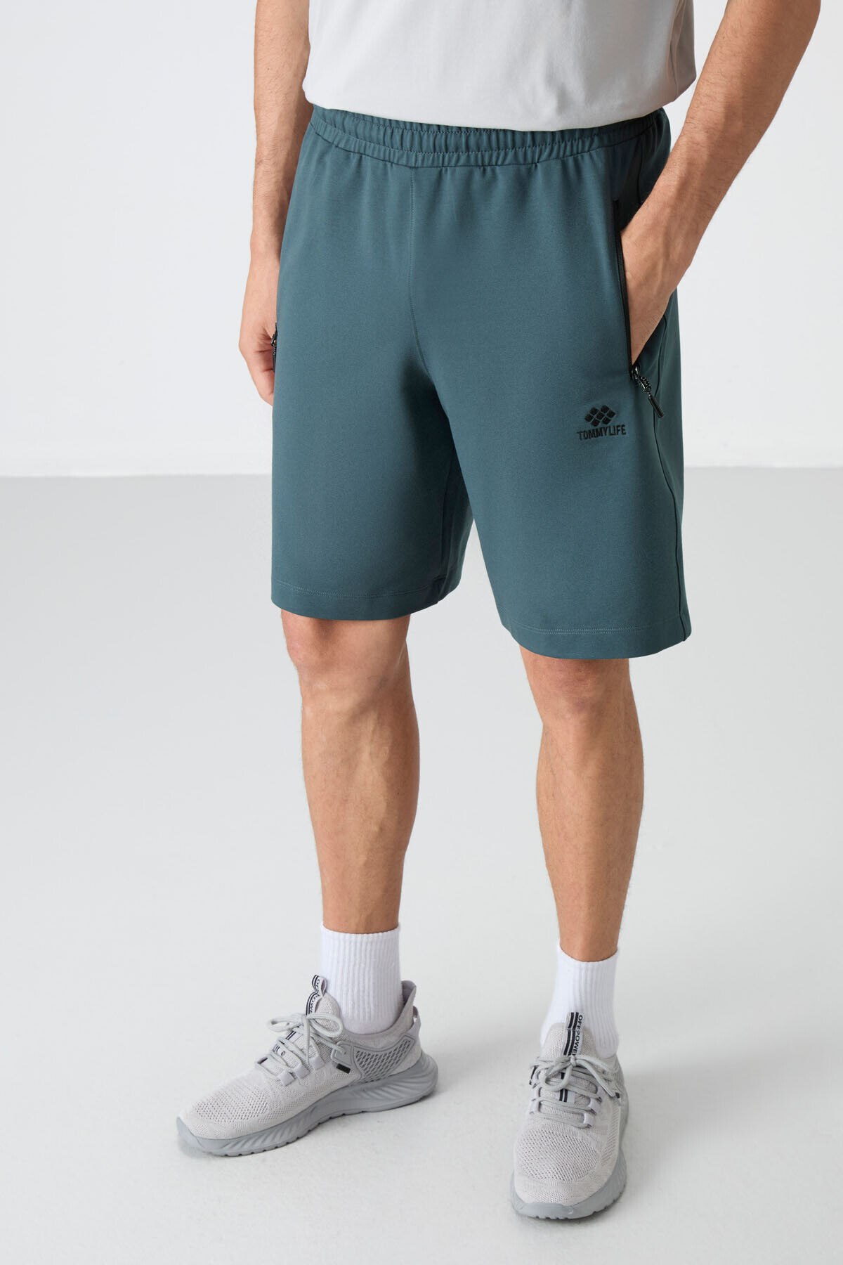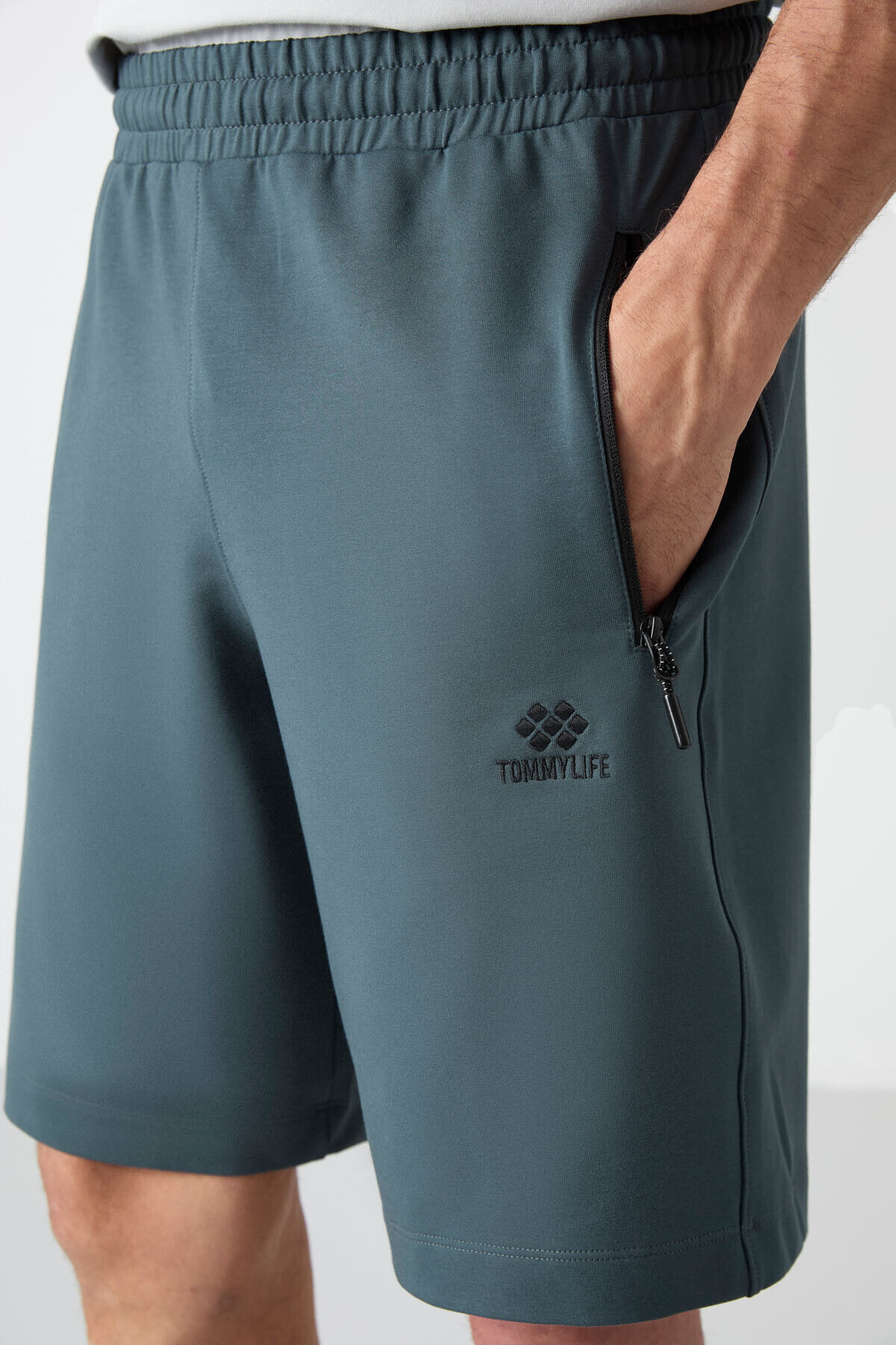 TommyLife Orman Yeşili Gizli Fermuar Arka Cepli Bağcıklı Standart Kalıp Erkek Şort - 81136