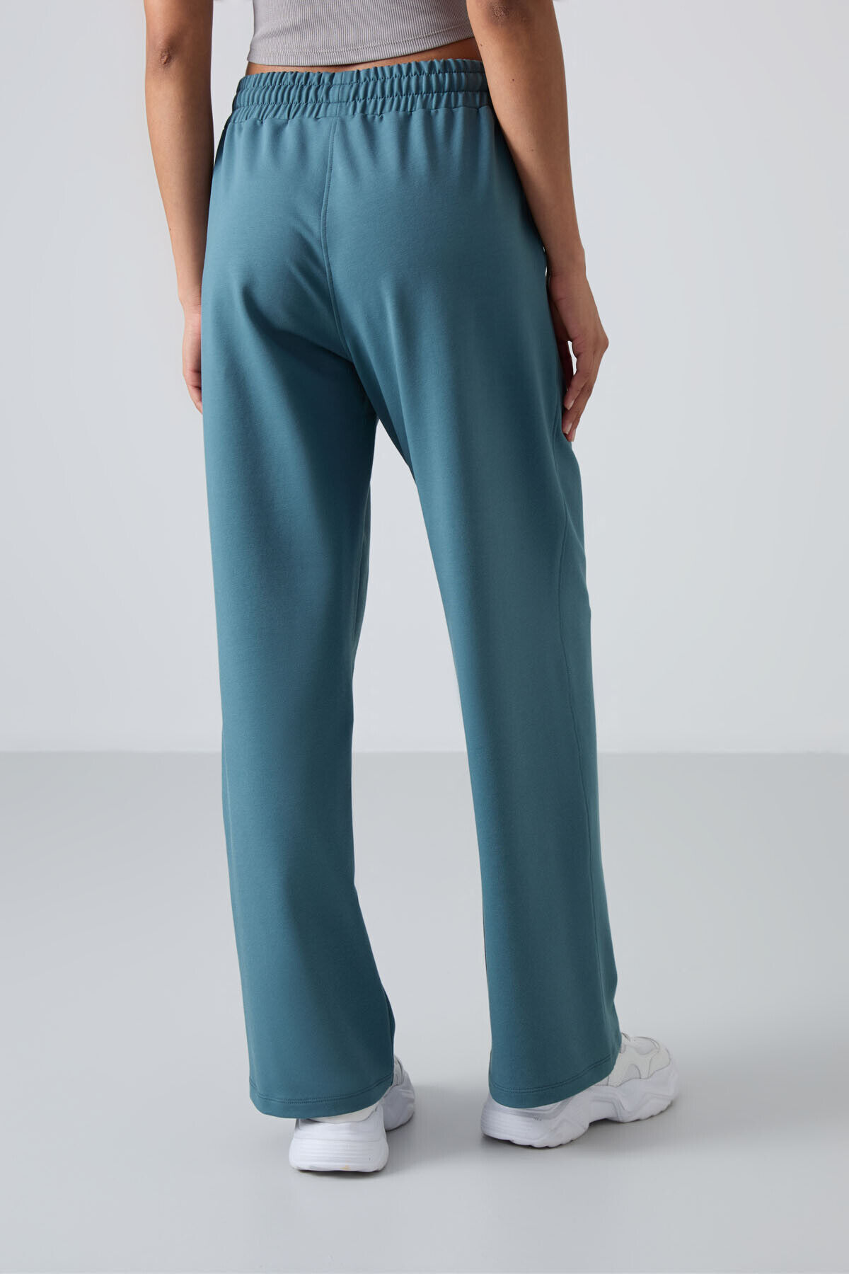 TommyLife Orman Yeşili Yüksek Bel Cepli Rahat Form Geniş Paça Kadın Eşofman Alt - 94567