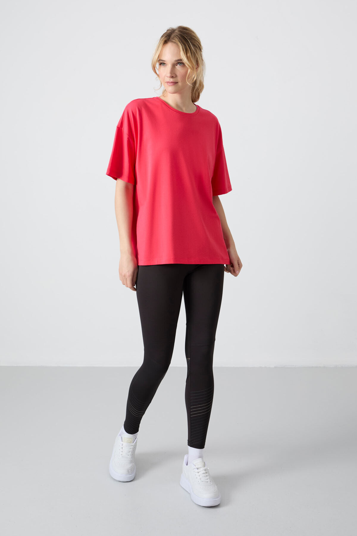 TommyLife Oversize Fit Basic O Yaka 3lü Paket Siyah-Beyaz-Rose Kadın T-Shirt 97285
