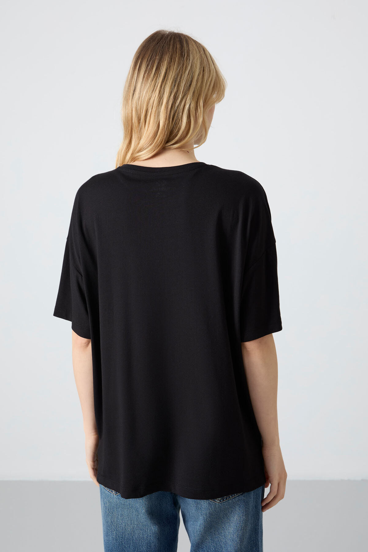 TommyLife Oversize Fit Basic O Yaka 3lü Paket Siyah Kadın T-Shirt 97285