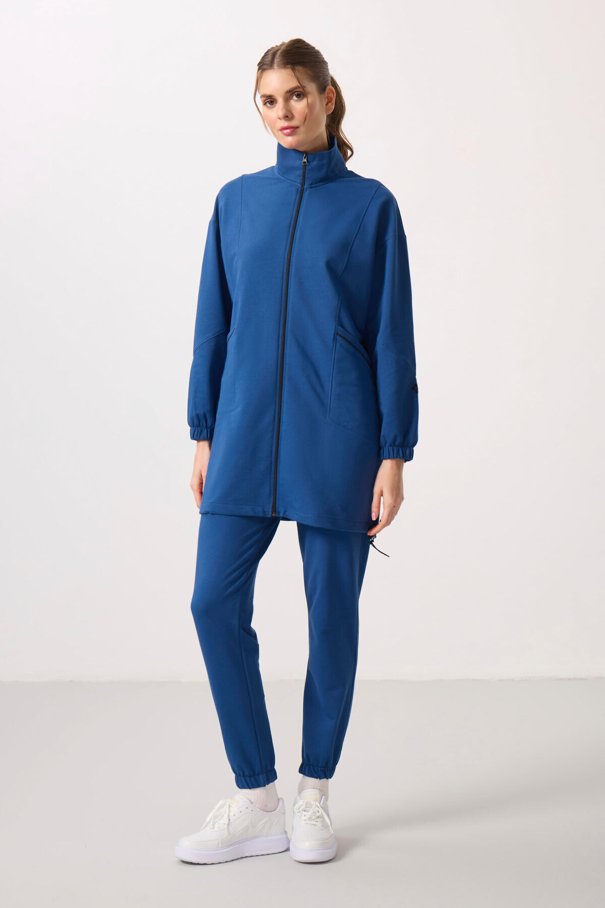 Parlament Dik Yaka Fermuarlı Rahat Form Kadın Eşofman Tunik Takım - 95345