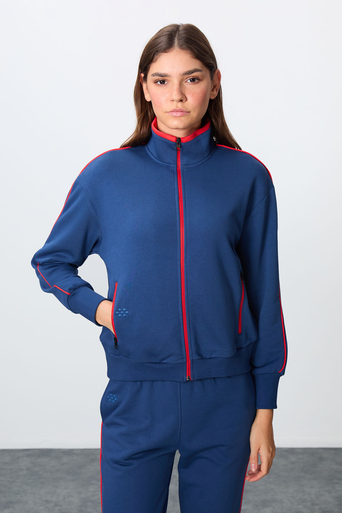TommyLife Parlament Kompakt Pamuklu Kalın Pürüzsüz Dokulu Dik Yaka Oversize Fit Kadın Eşofman Takım - 95340
