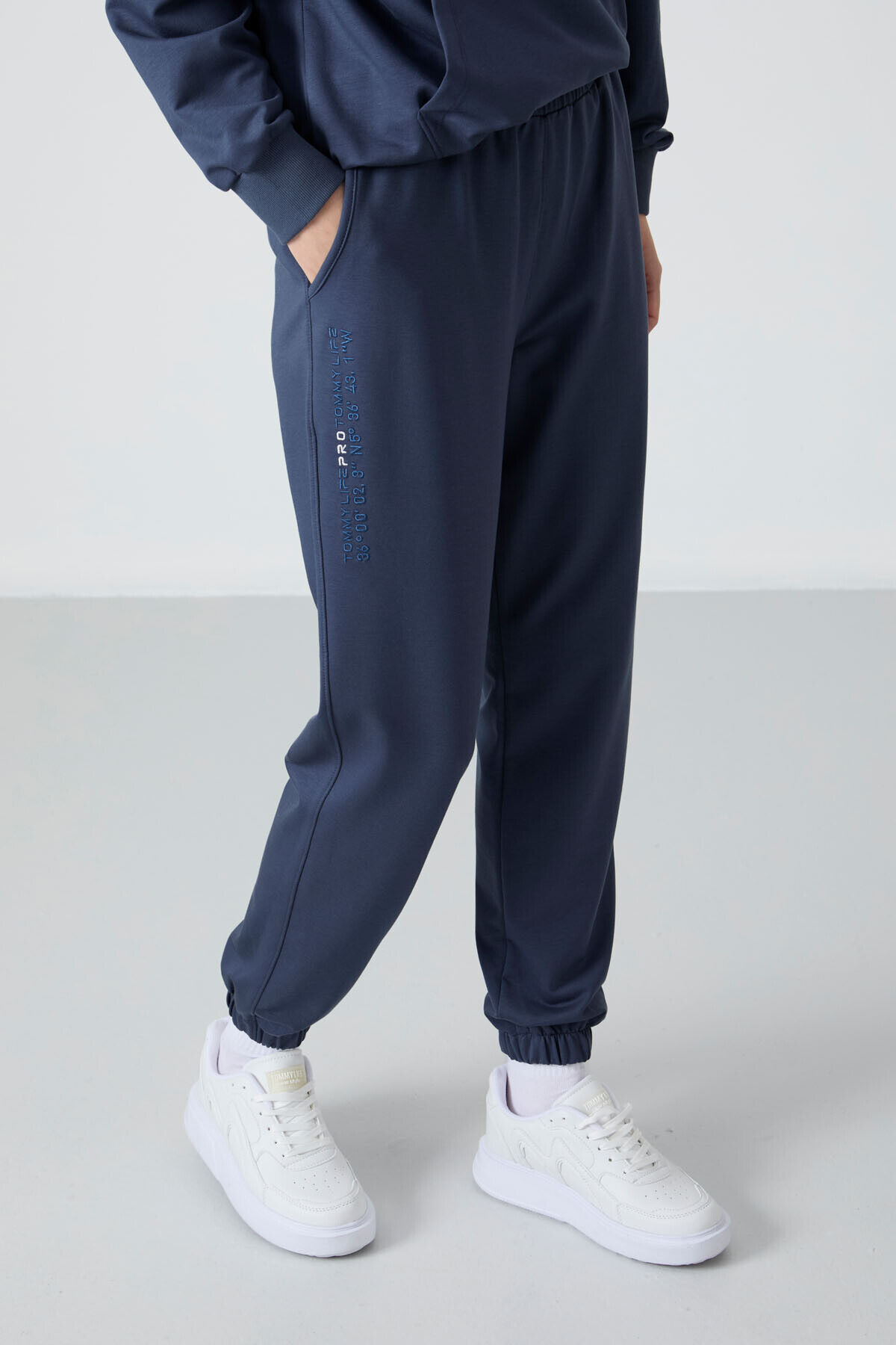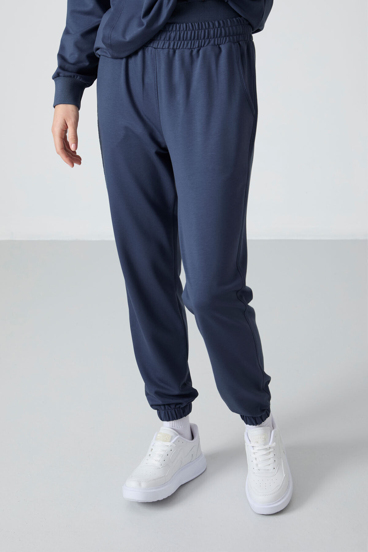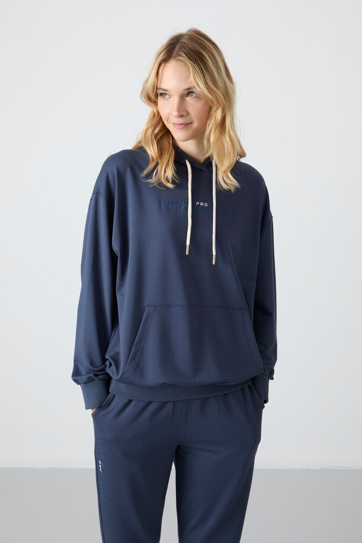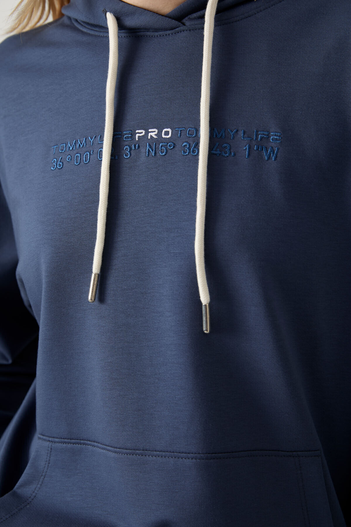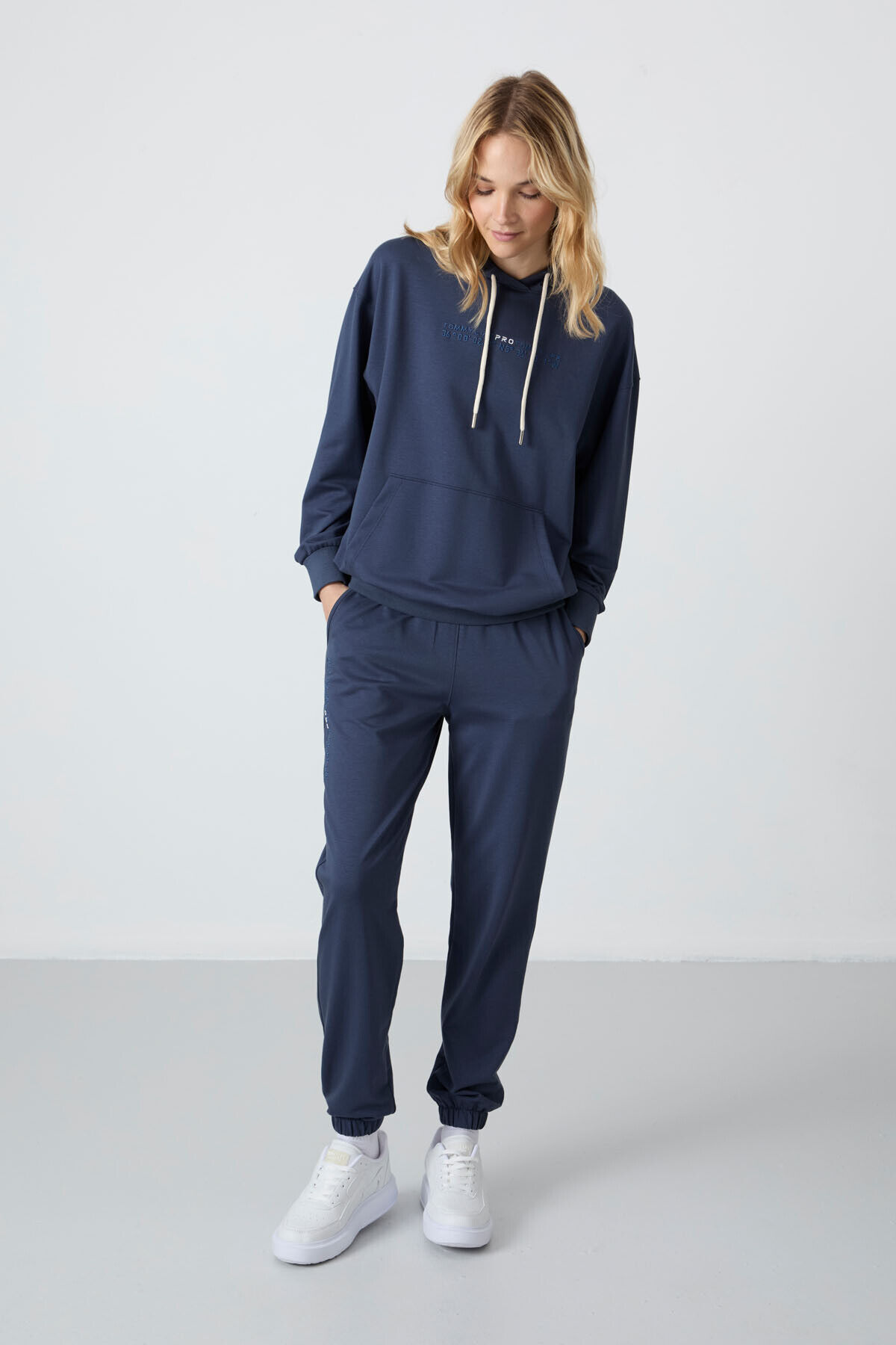 TommyLife Petrol Kapüşonlu Kanguru Cep Oversize Lastik Paça Kadın Eşofman Takımı - 95288