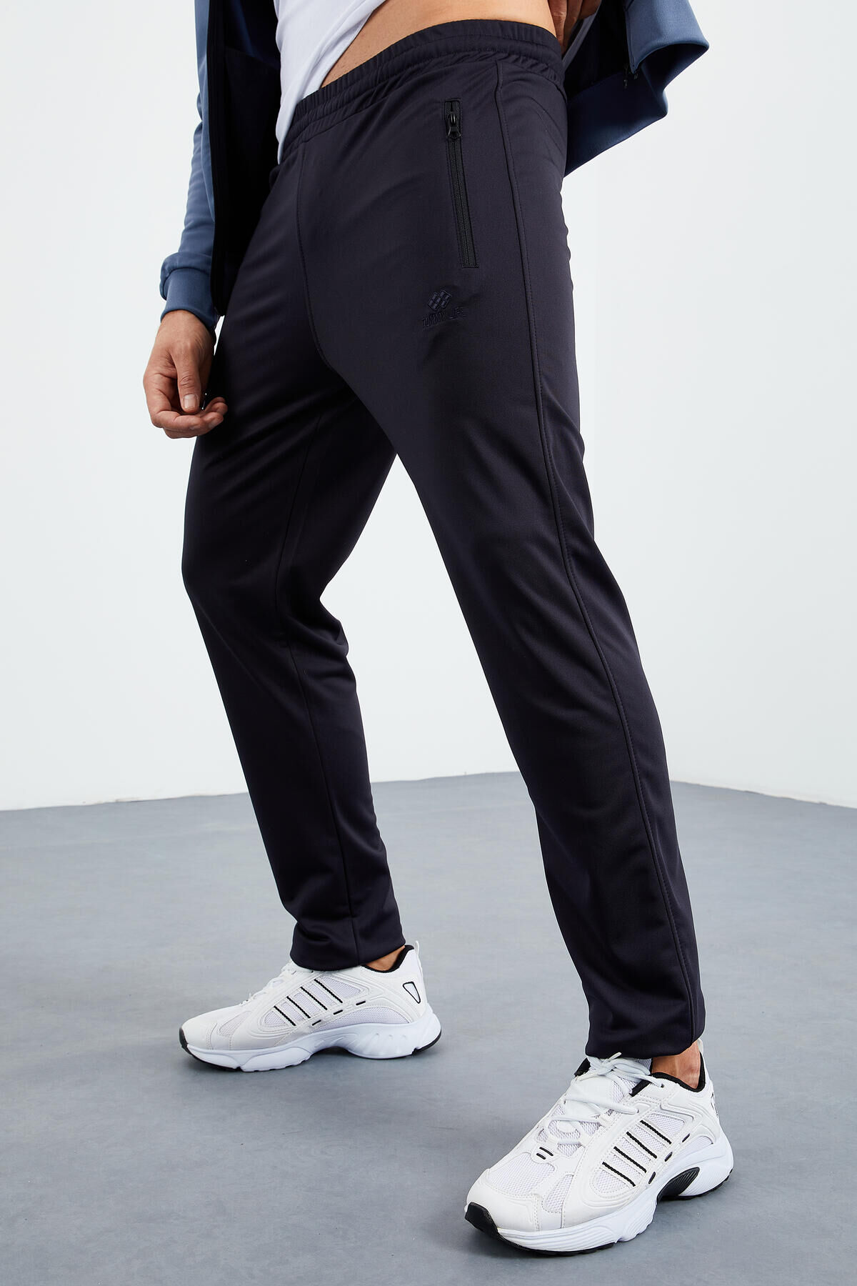 TommyLife Petrol - Lacivert Dik Yaka Fermuarlı Standart Kalıp Klasik Paça Erkek Eşofman Takımı - 85162