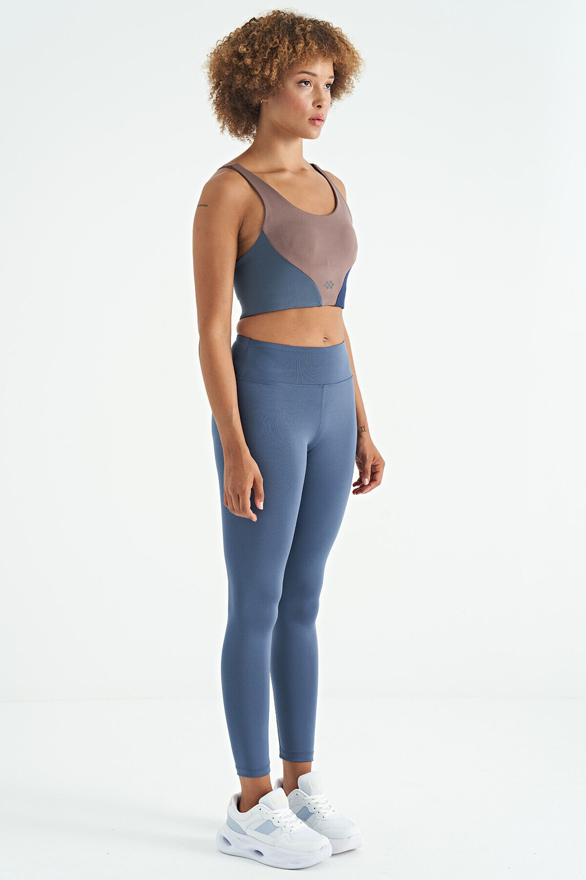 TommyLife Petrol Logo Baskı Detaylı Yüksek Bel Dalgıç Kumaş Slim Fit Kadın Tayt - 94627