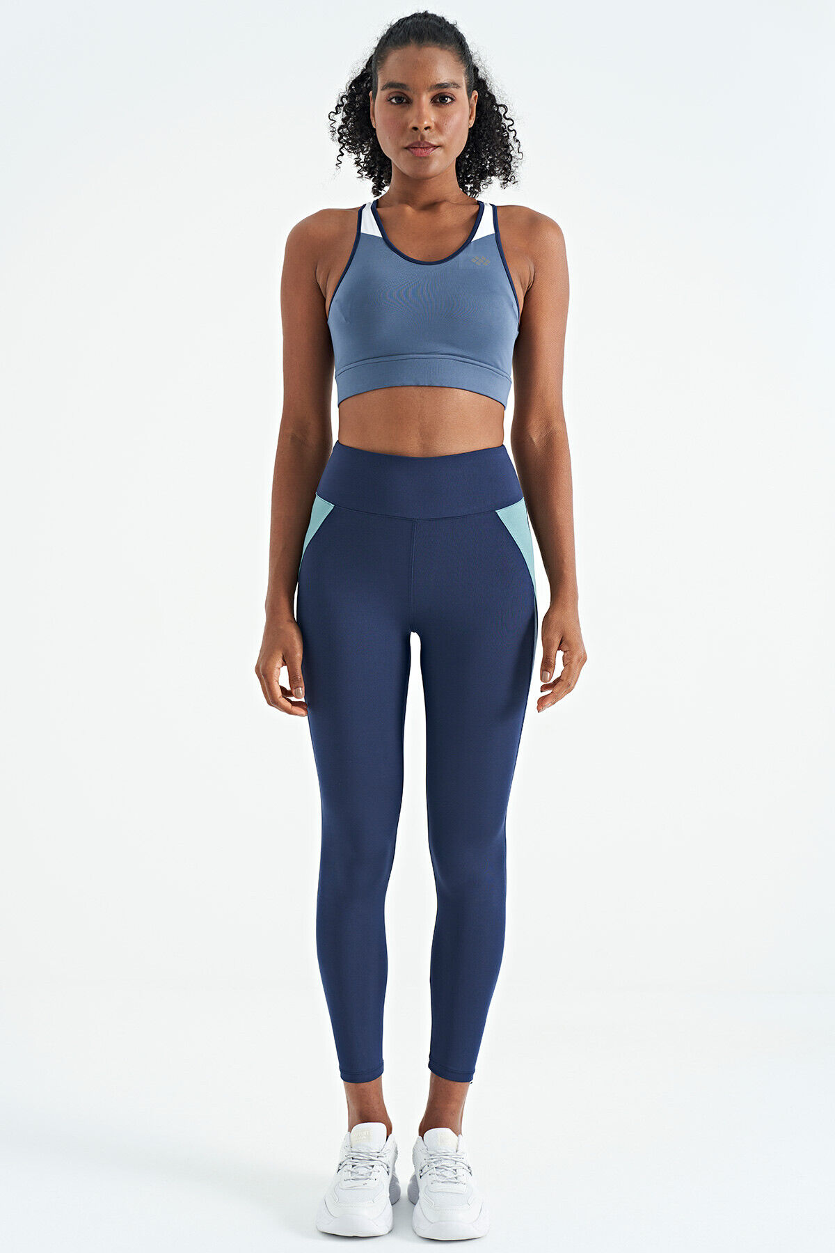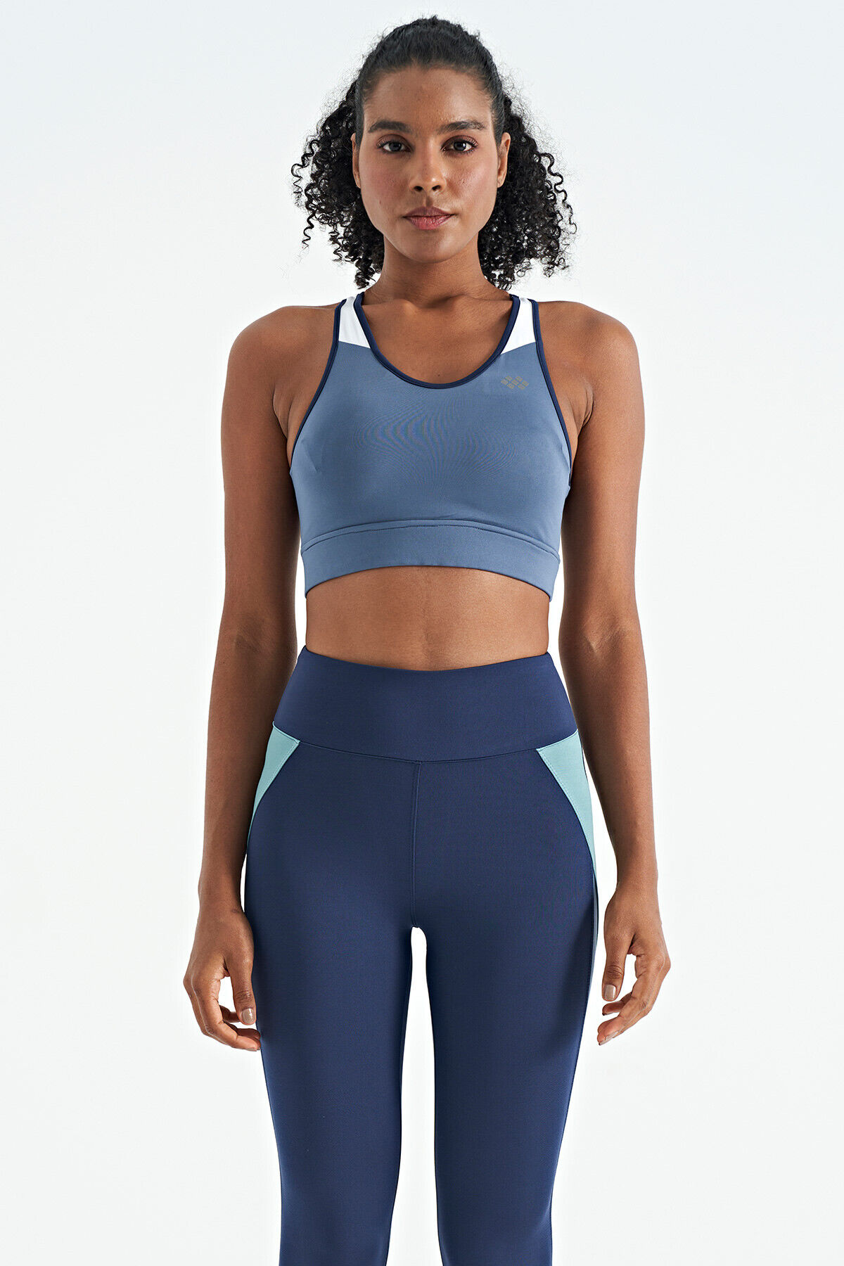 TommyLife Petrol Renk Bloklu Sırt Baskı Detaylı Dar Kalıp Kadın Büstiyer - 97253
