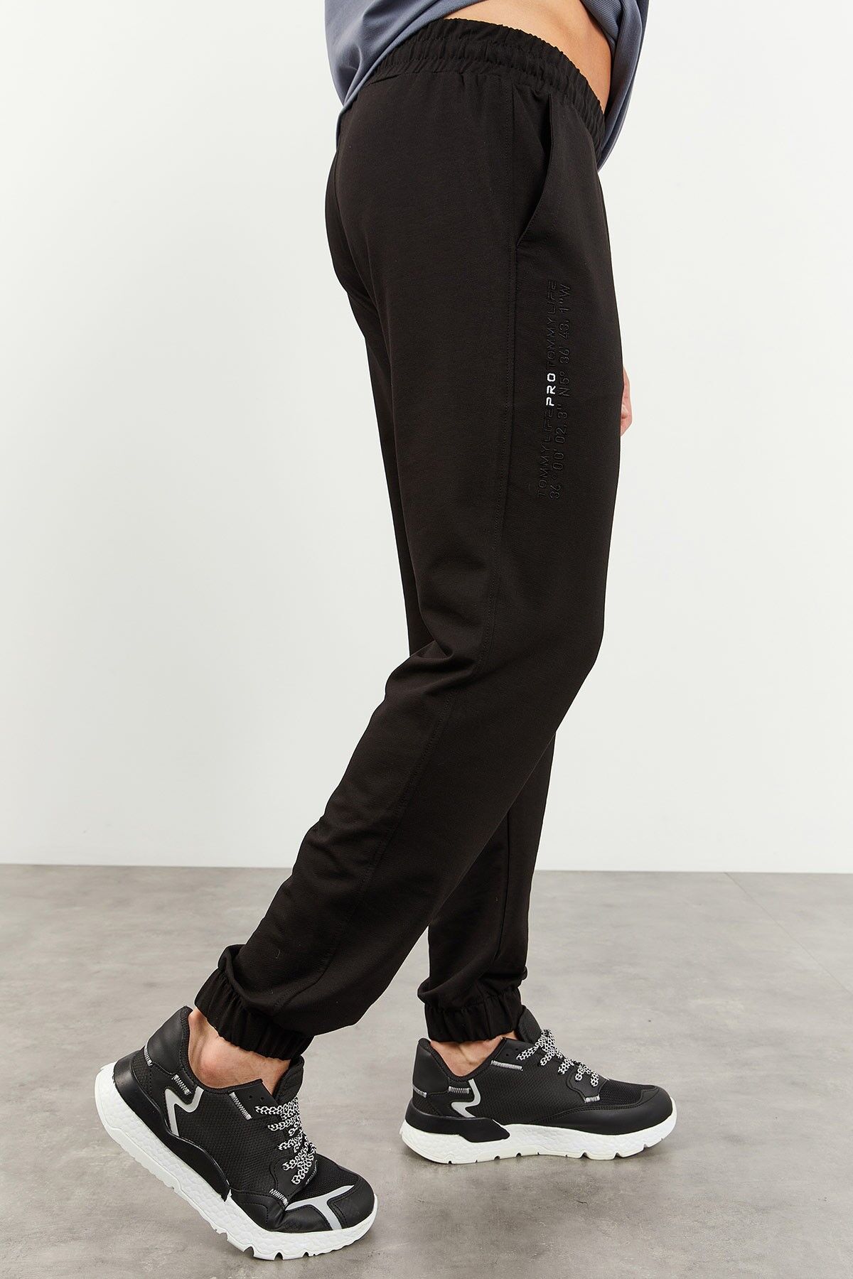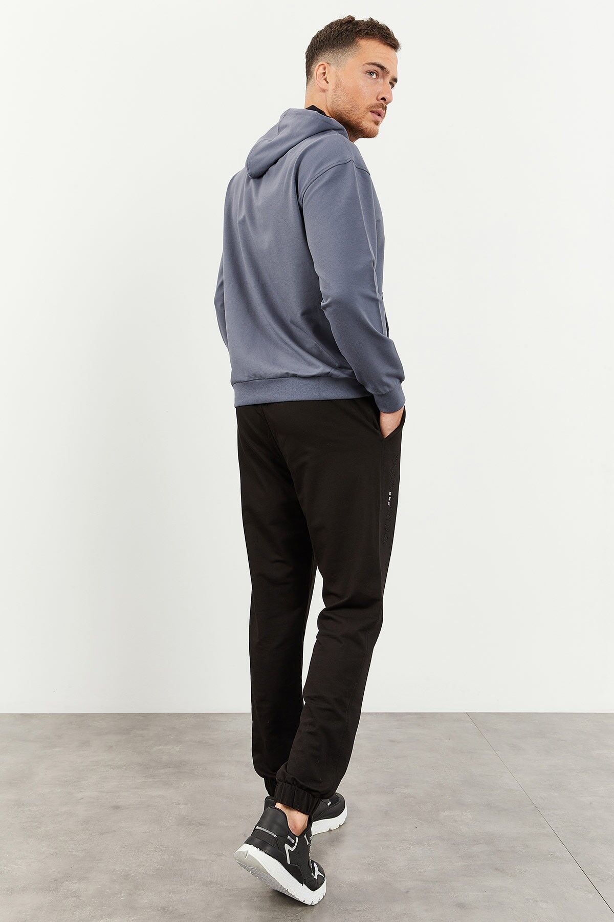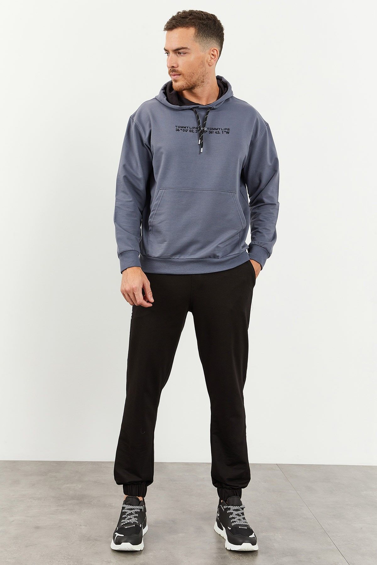 TommyLife Petrol - Siyah Kapüşonlu Kanguru Cep Lastik Paça Erkek Oversize Eşofman Takımı - 85117