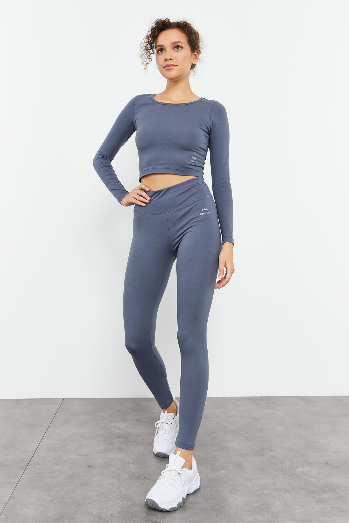 TommyLife Petrol Uzun Kollu Dar Kalıp O Yaka Kadın Crop Top T-Shirt - 97150