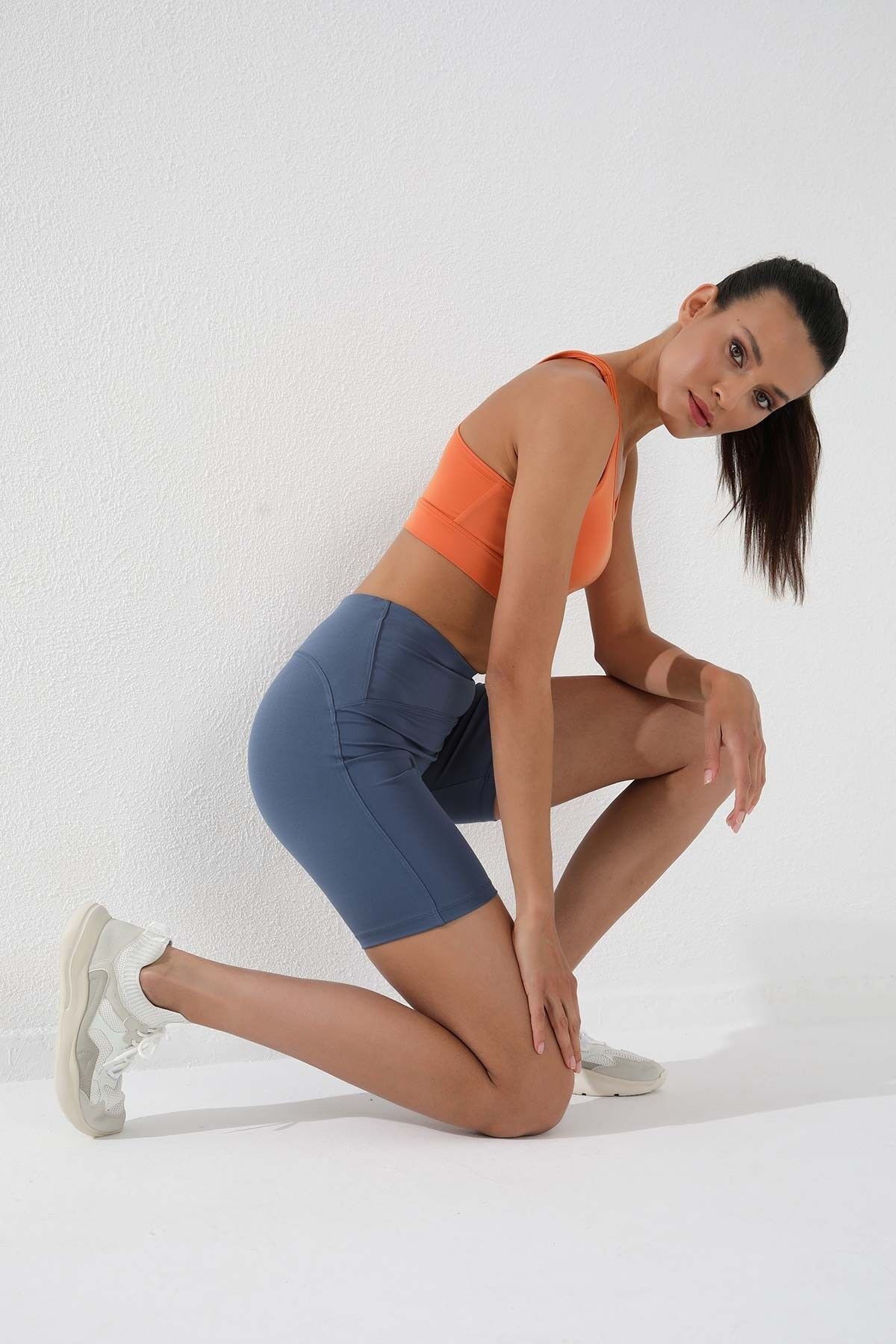TommyLife Petrol Yüksek Bel Toparlayıcı Kısa Biker Kadın Tayt - 91007