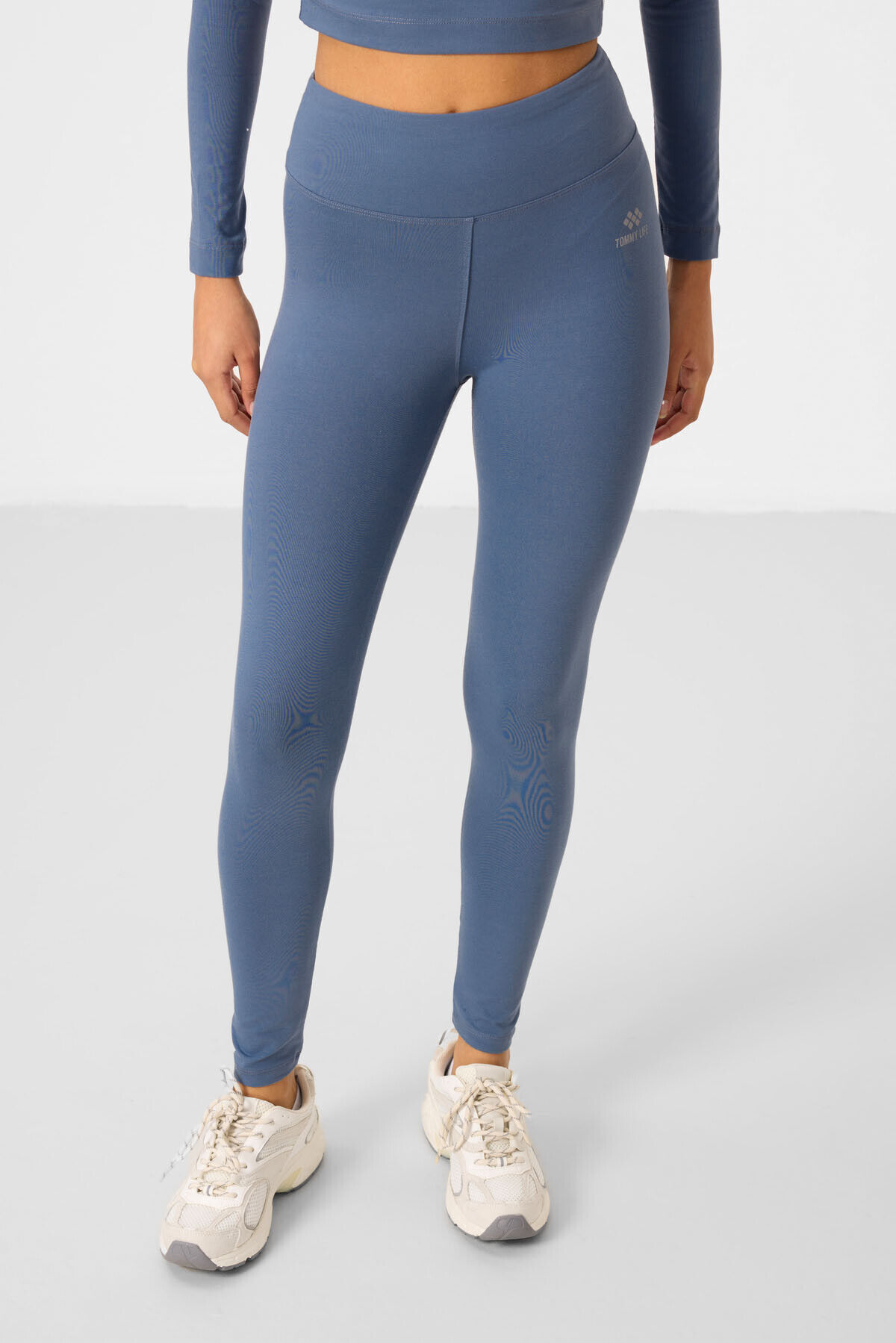 TommyLife Petrol Yüksek Bel Uzun Kollu Slim Fit Crop Top Kadın Tayt Takım - 95286