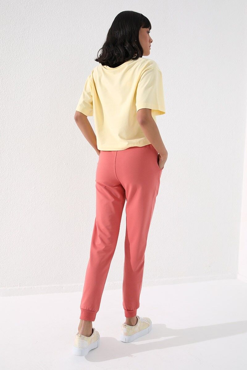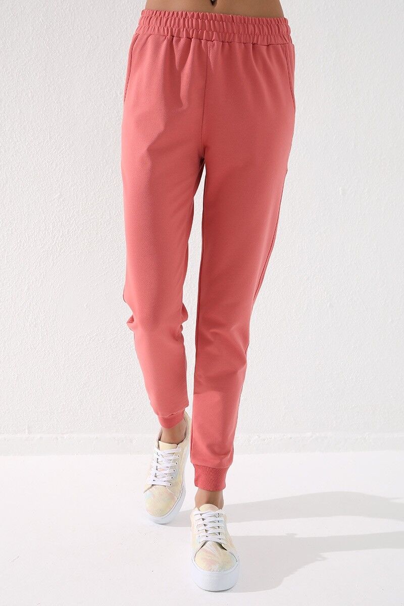 TommyLife Pudra Yüksek Bel Jogger Rahat Form Manşetli Kadın Eşofman Alt - 94561