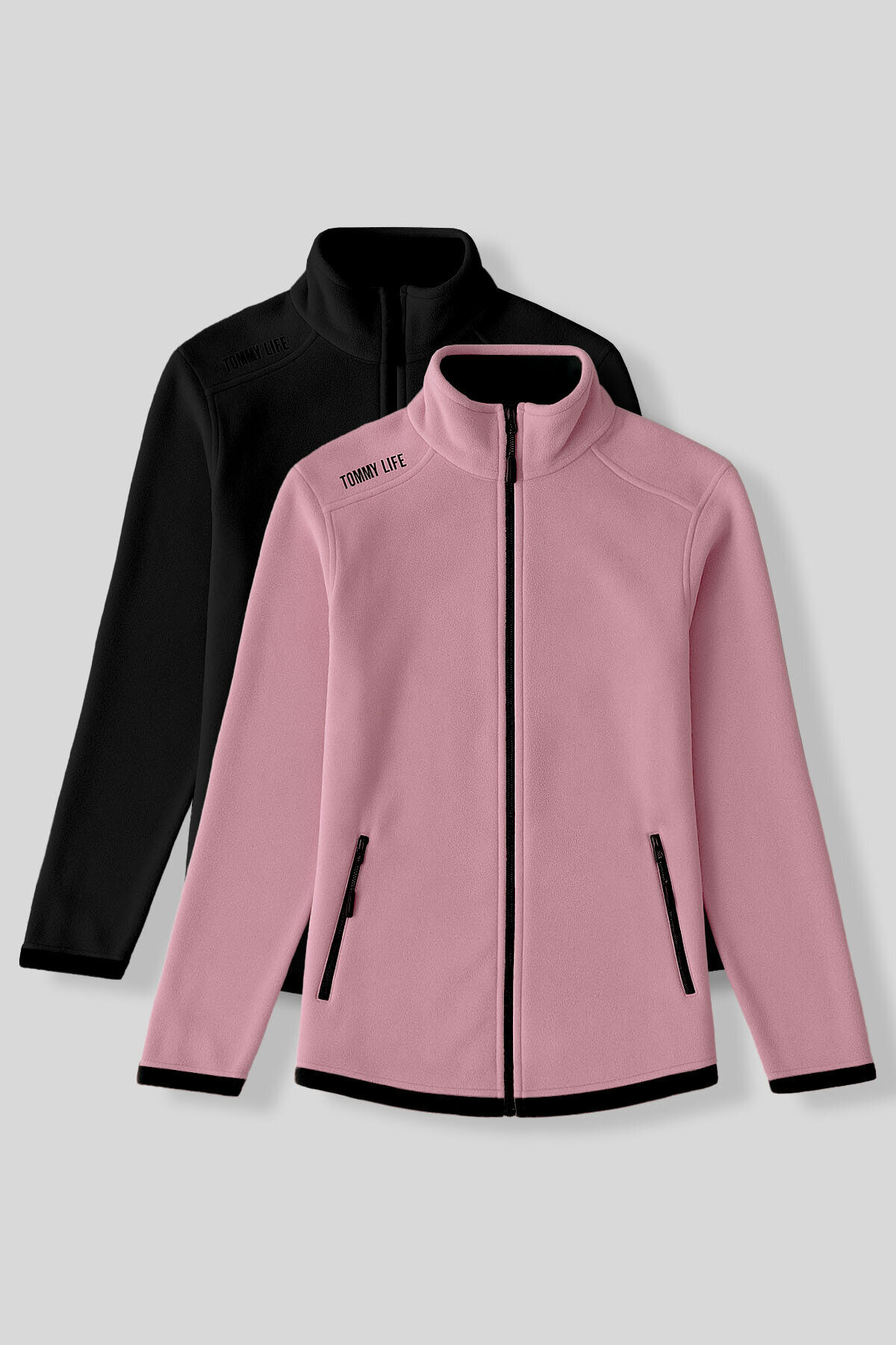 TommyLife Rahat Form Dik Yaka 2li Paket Siyah-Gül Kurusu Kadın Polar Sweatshirt - 97173