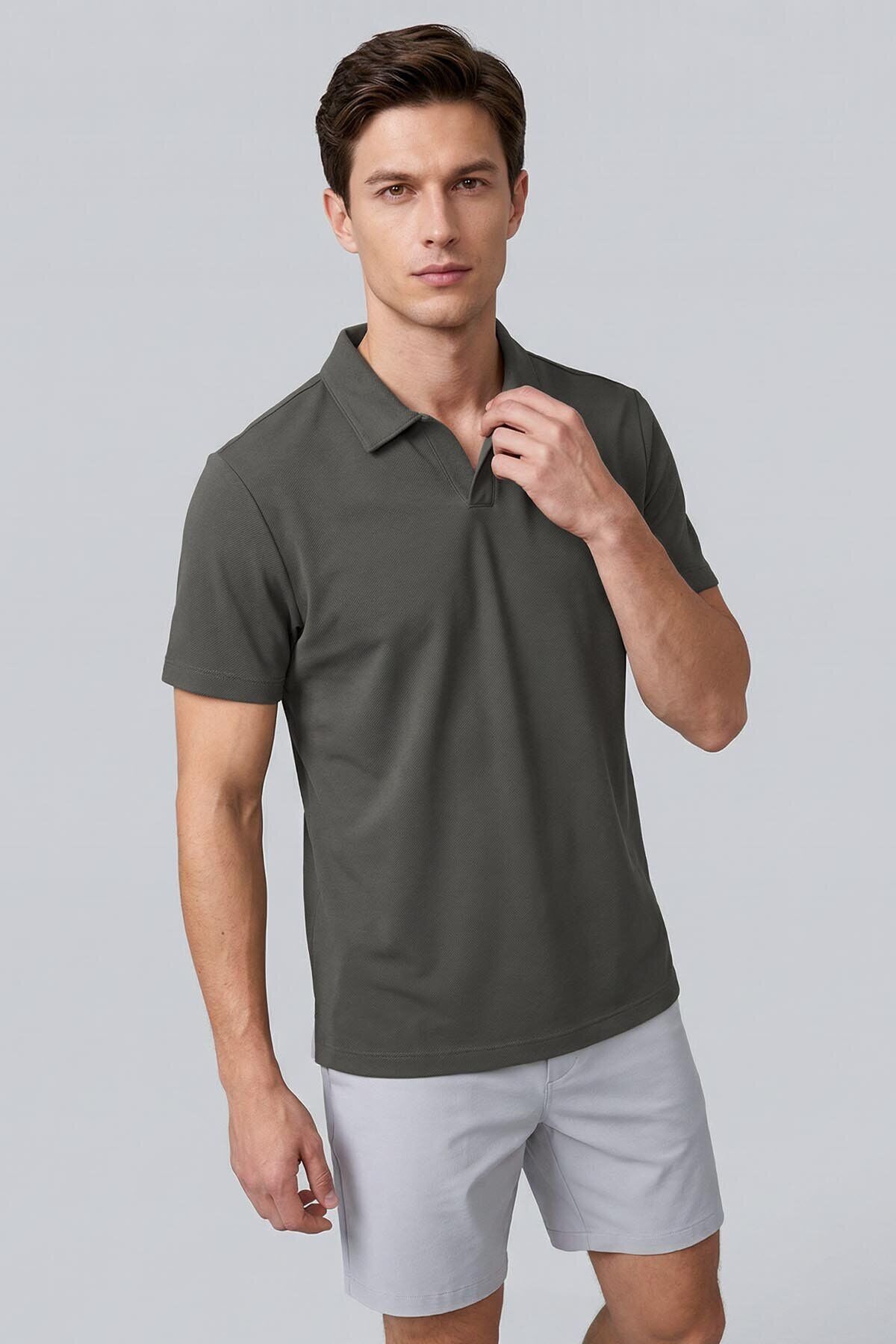 Rahat Form Polo Yaka 3lü Paket Siyah-Haki-Ekru Erkek T-Shirt - 88496