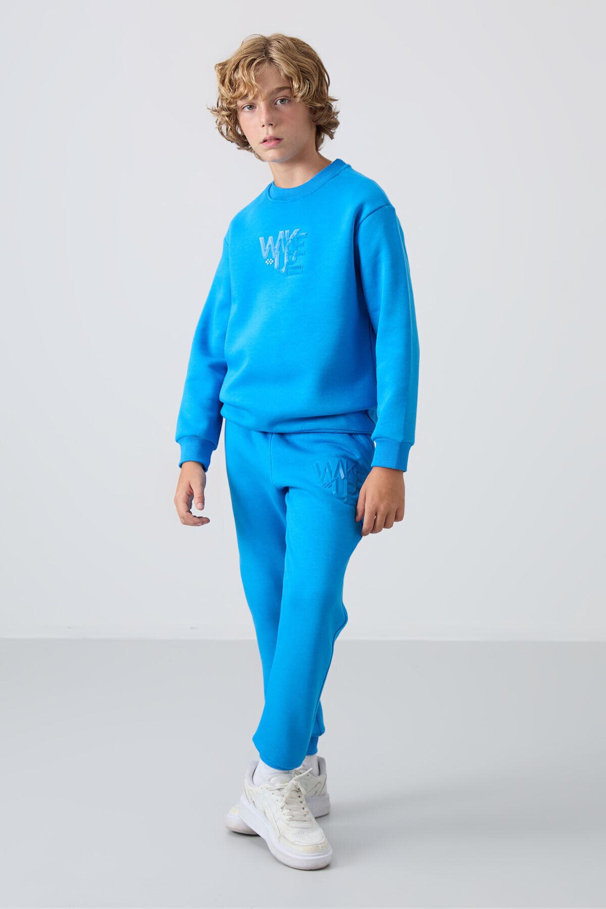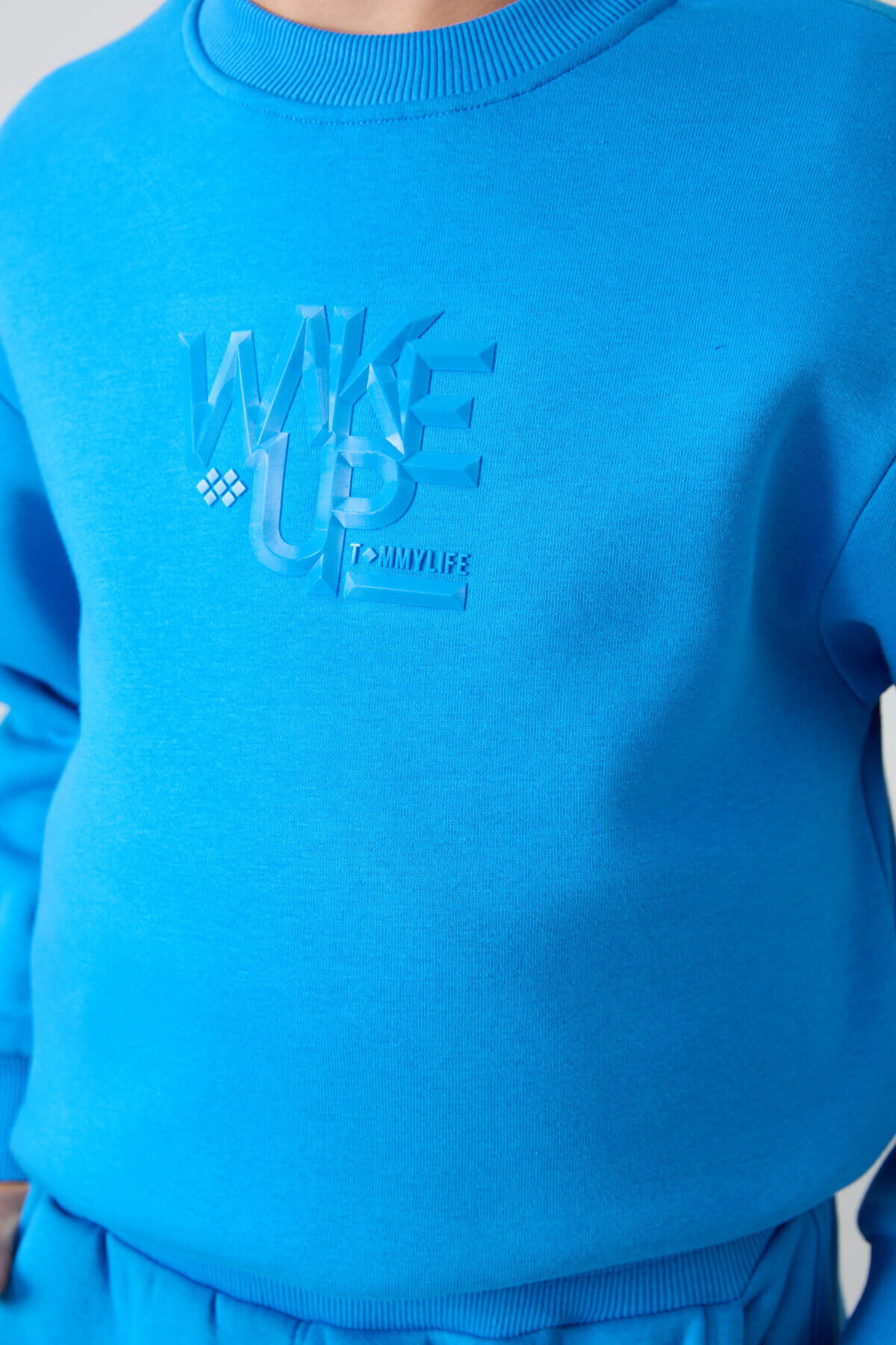 TommyLife Saks Pamuklu Kalın İçi Tüylü Yumuşak Dokulu Standart Fit Baskılı Erkek Çocuk Eşofman Takım - 11253
