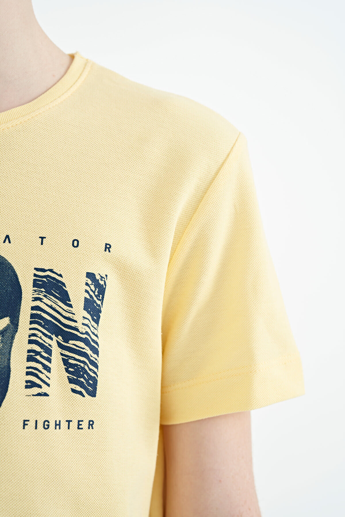 TommyLife Sarı Ön Yazı Nakışlı O Yaka Standart Kalıp Erkek Çocuk T-Shirt - 11118