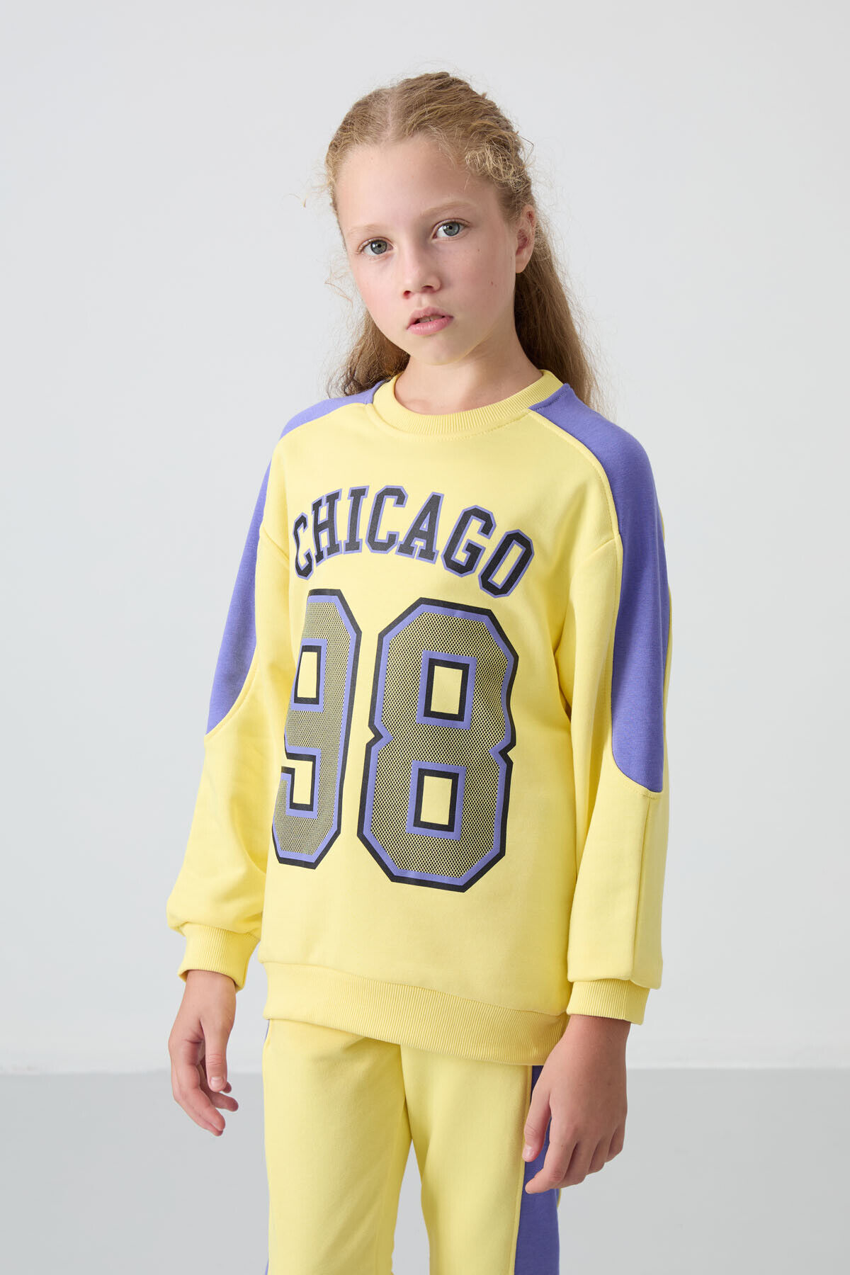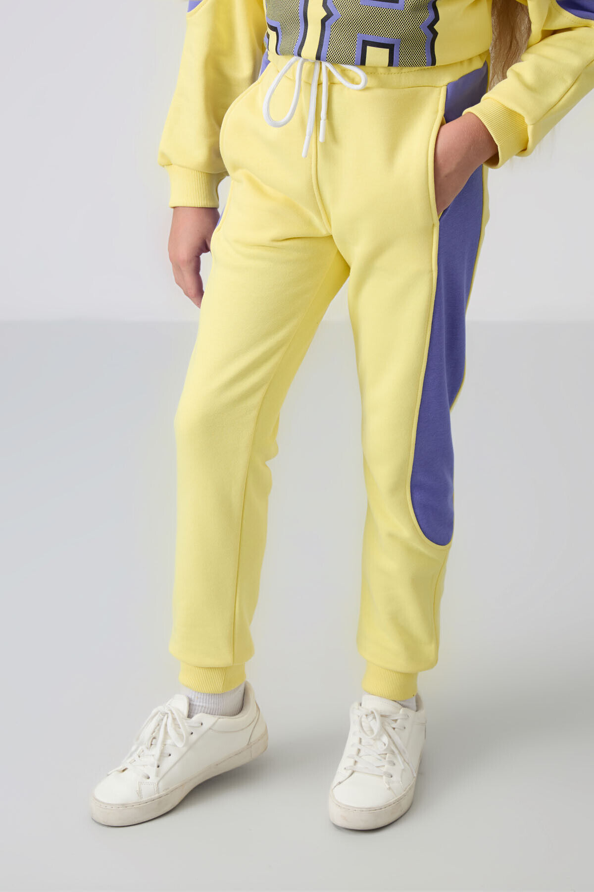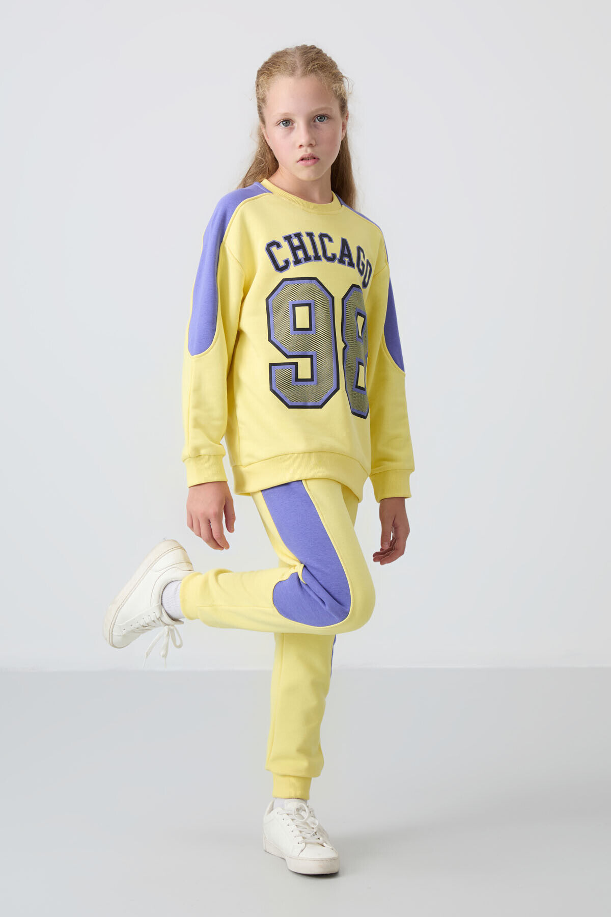 TommyLife Sarı Pamuklu İçi Tüylü Yumuşak Dokulu Standart Fit Baskılı Kız Çocuk Eşofman Takım - 75170