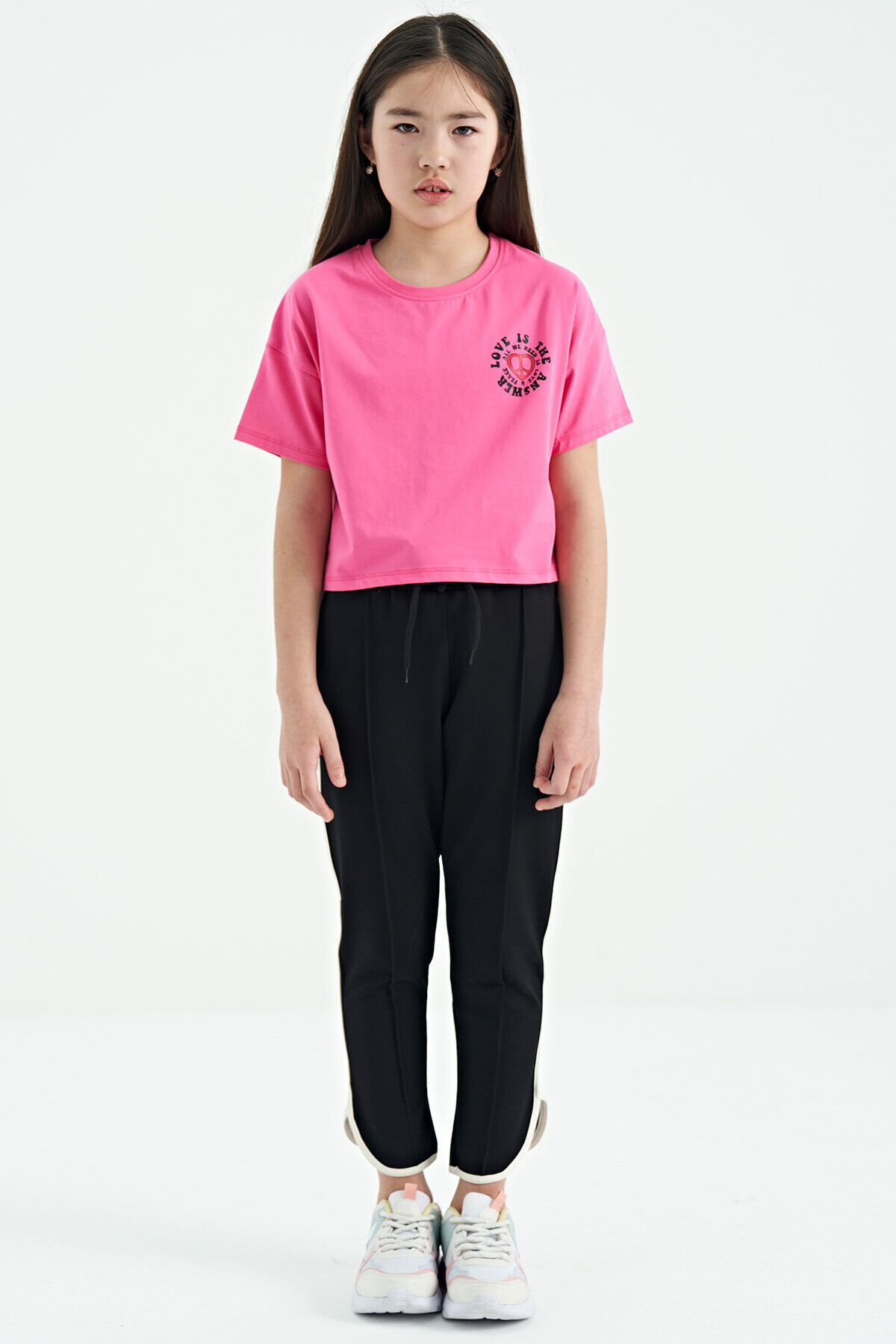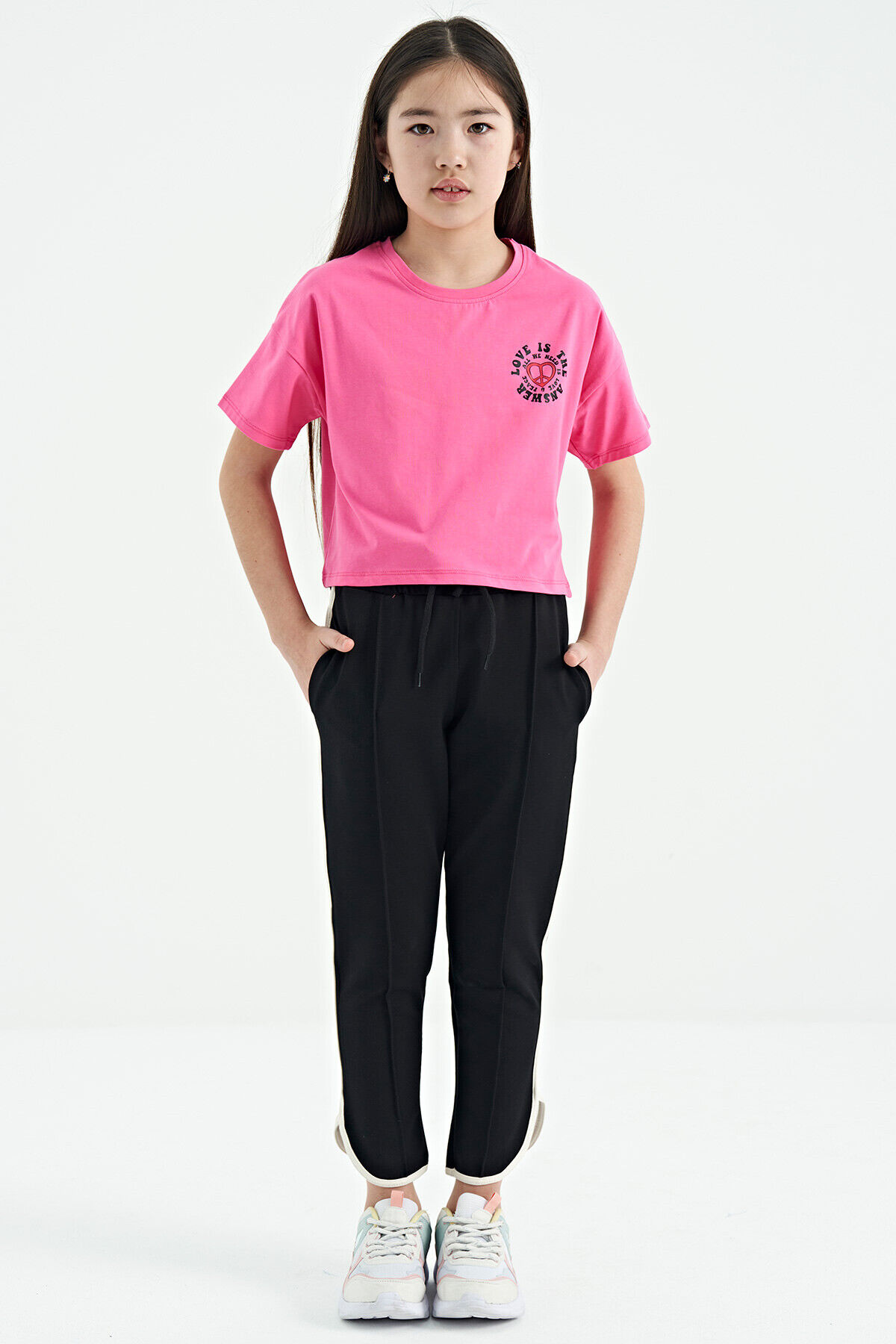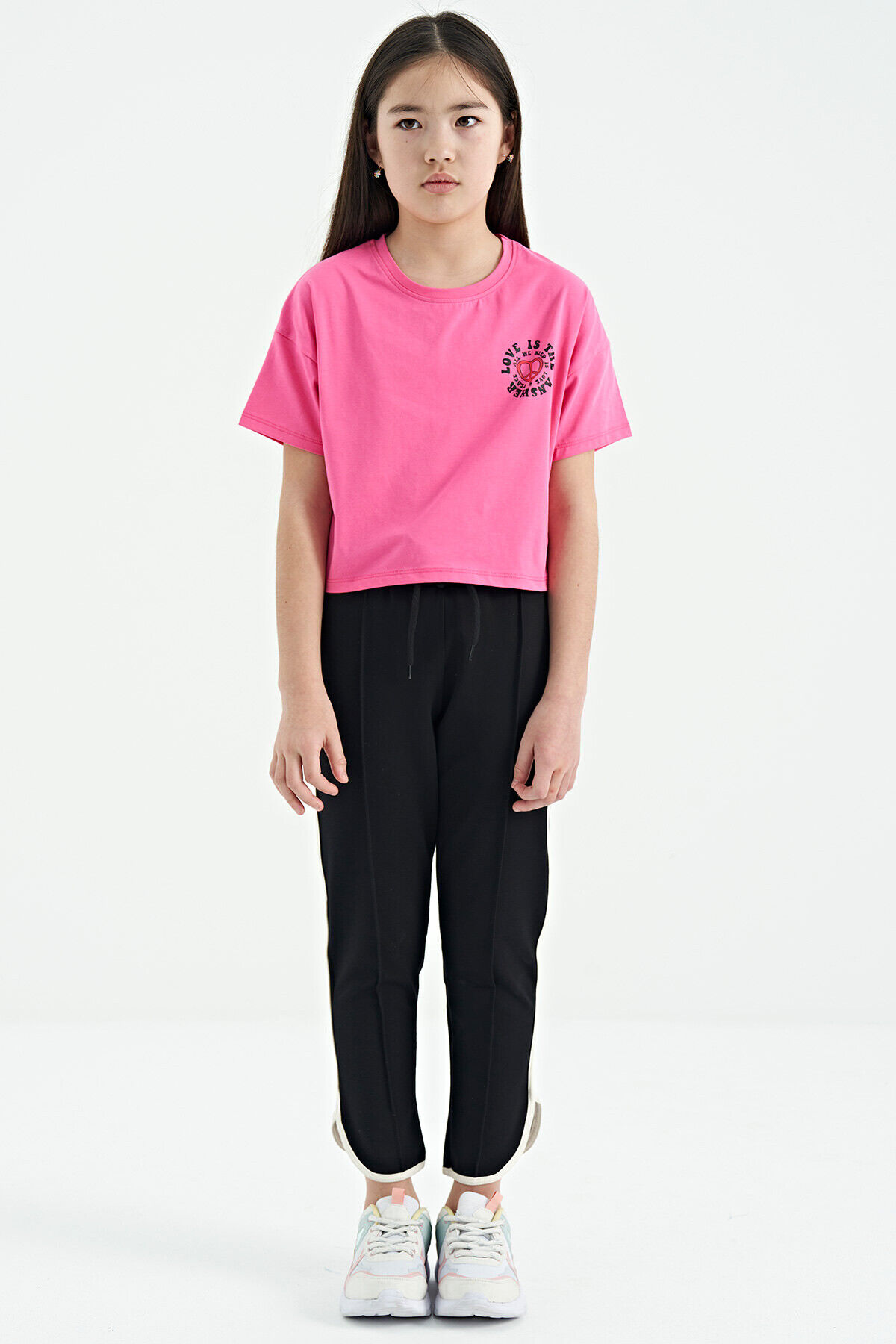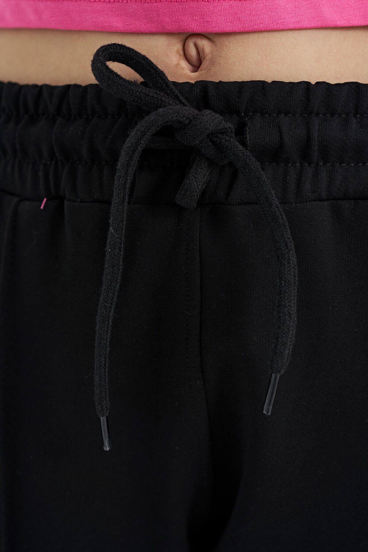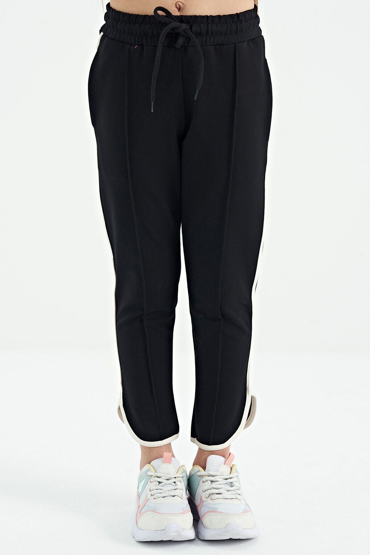 TommyLife Siyah Biye Detaylı Bağcıklı Ön Nevürlü Geniş Paçalı Kız Çocuk Eşofman Altı - 75124