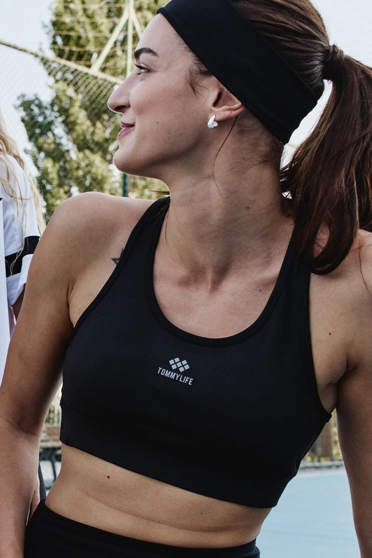 TommyLife Siyah Çapraz Sırt Detaylı Slim Fit U Yaka Pedli Kadın Spor Büstiyer - 97121