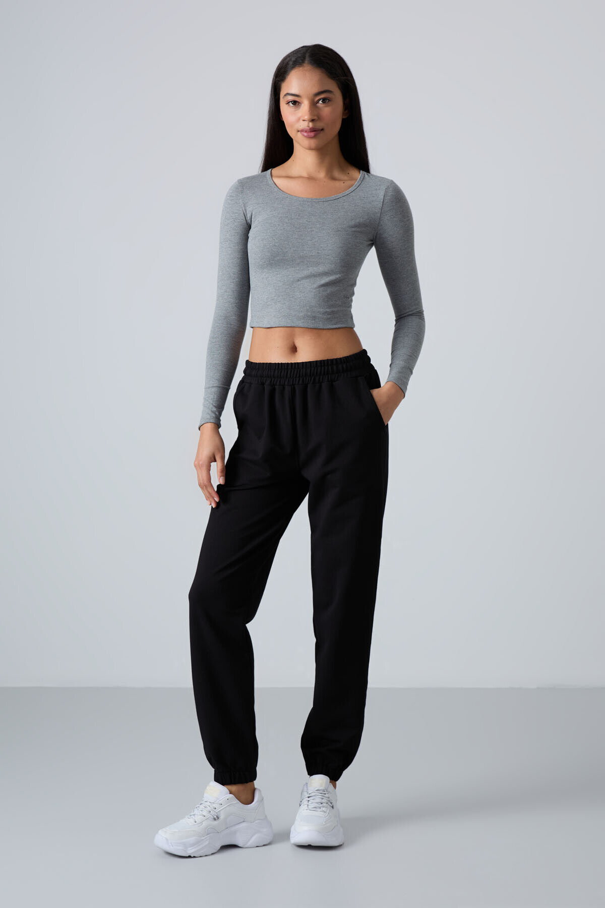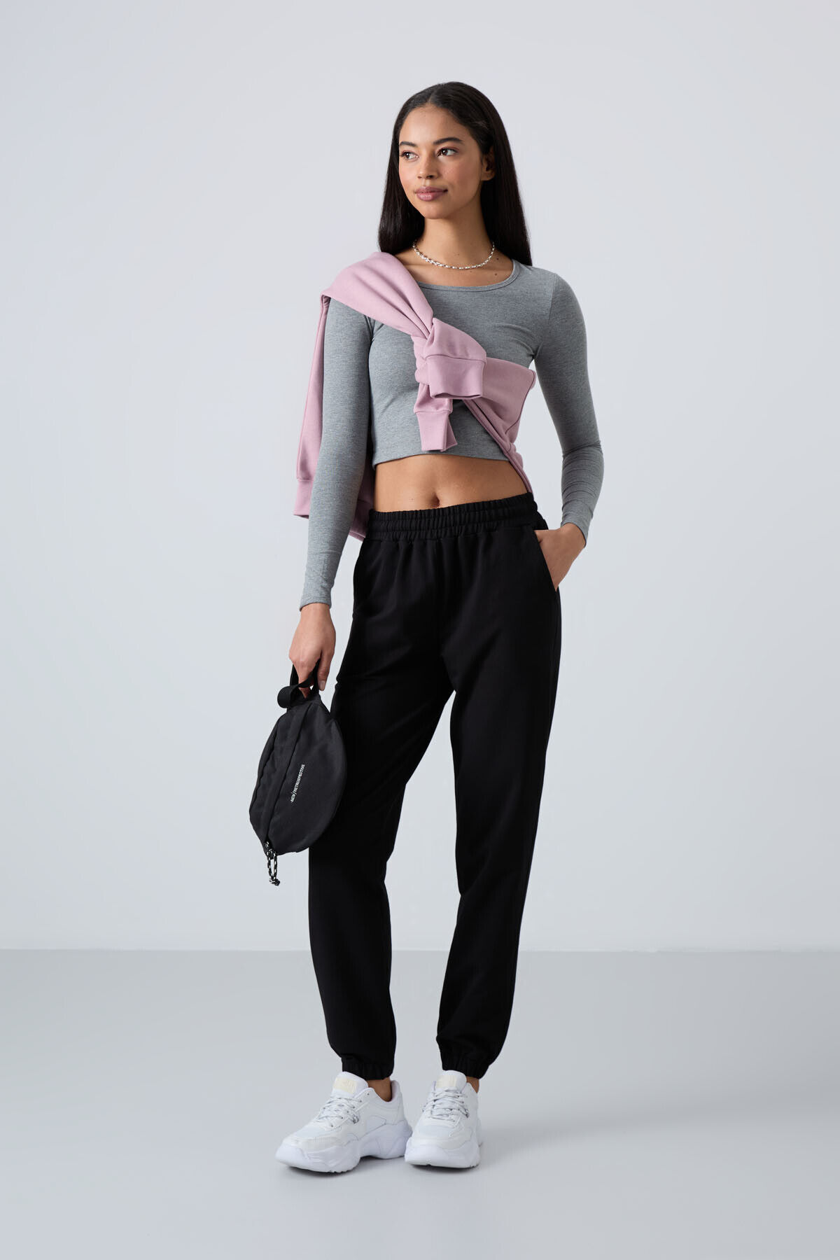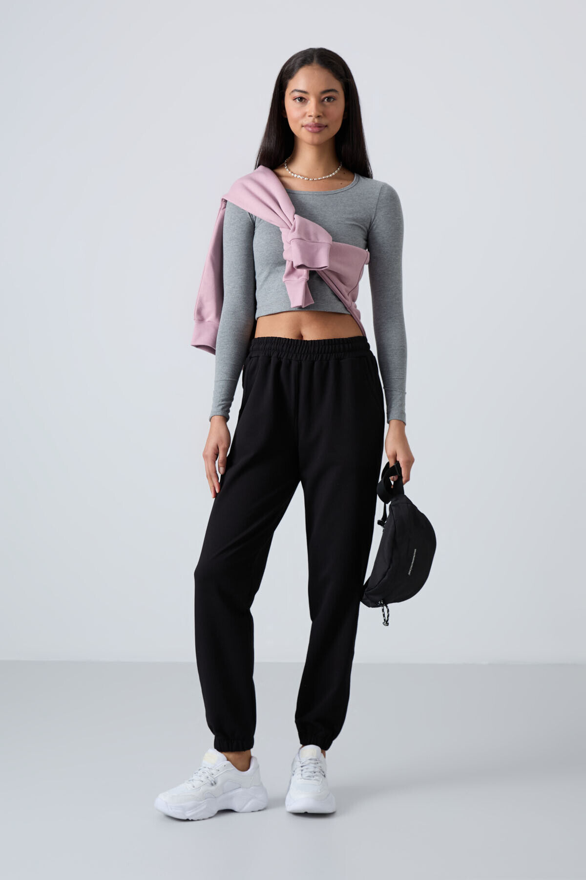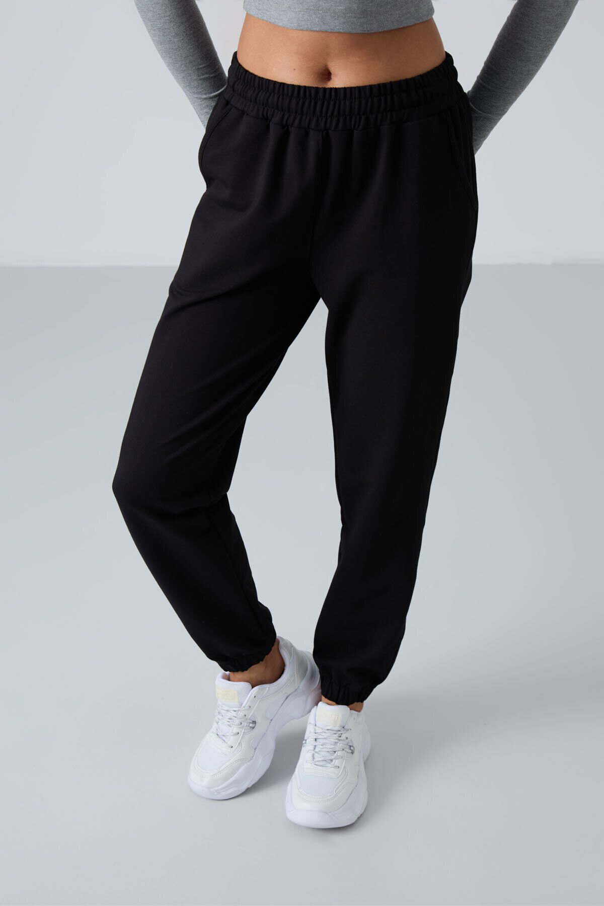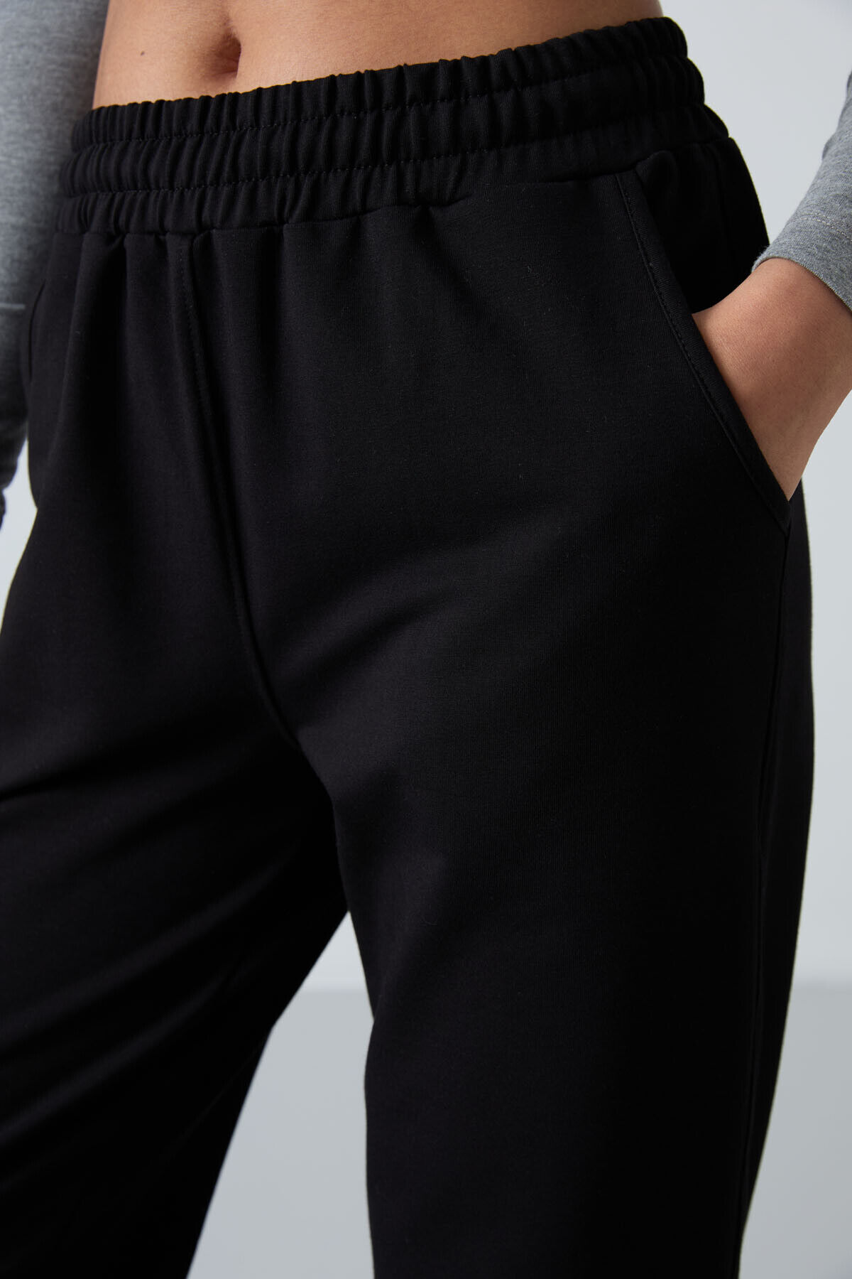 TommyLife Siyah Cepli Yüksek Bel Rahat Form Lastik Paça Kadın Eşofman Alt - 94583