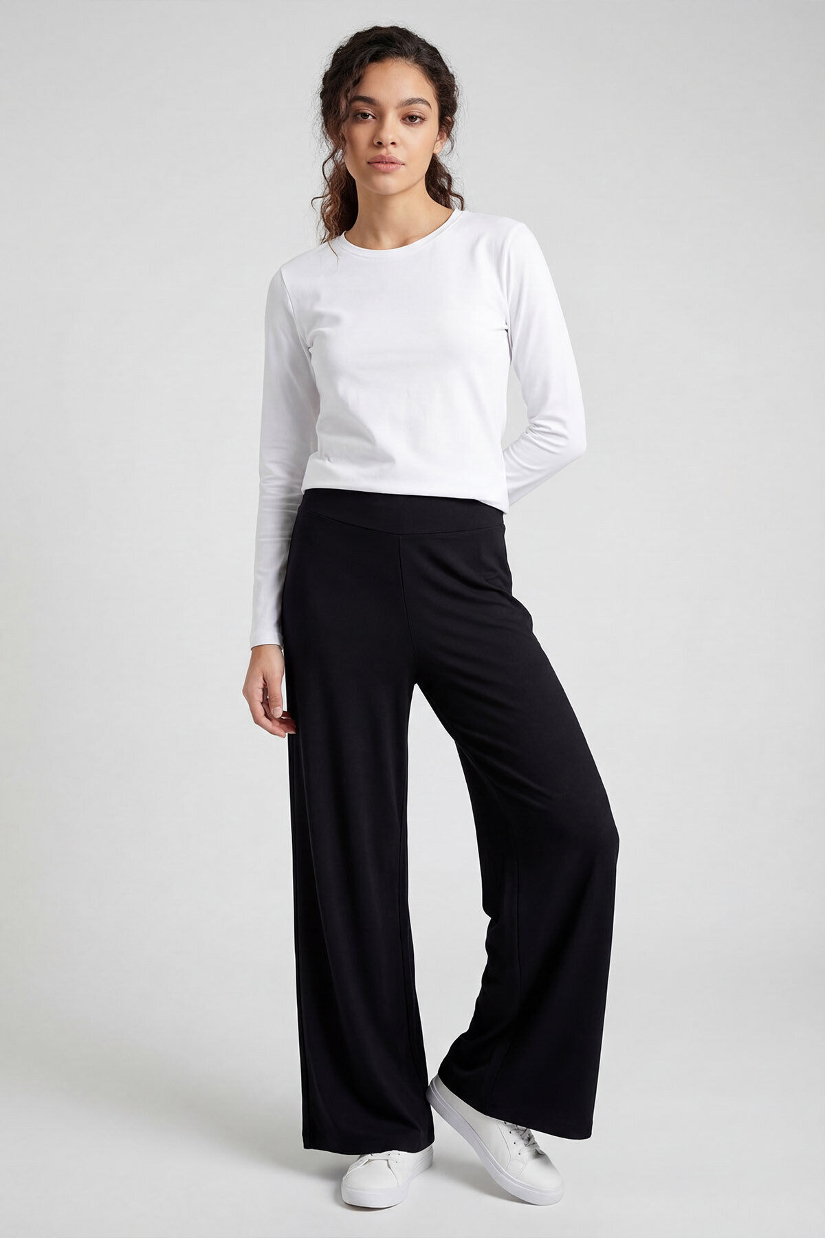 Siyah Comfort Fit Geniş Paça Korsajlı Palazzo Kadın Pantolon - 94681