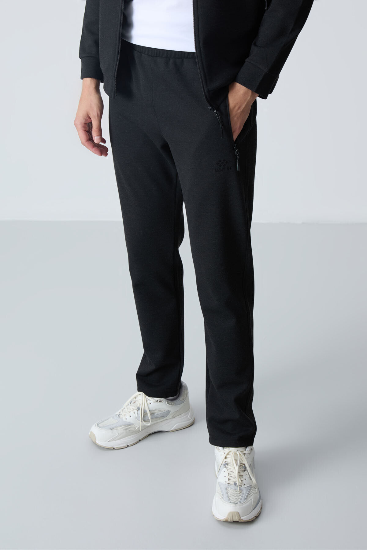 Siyah Dik Yaka Çift Renk Rahat Form Klasik Paça Erkek Eşofman Takımı - 85113